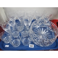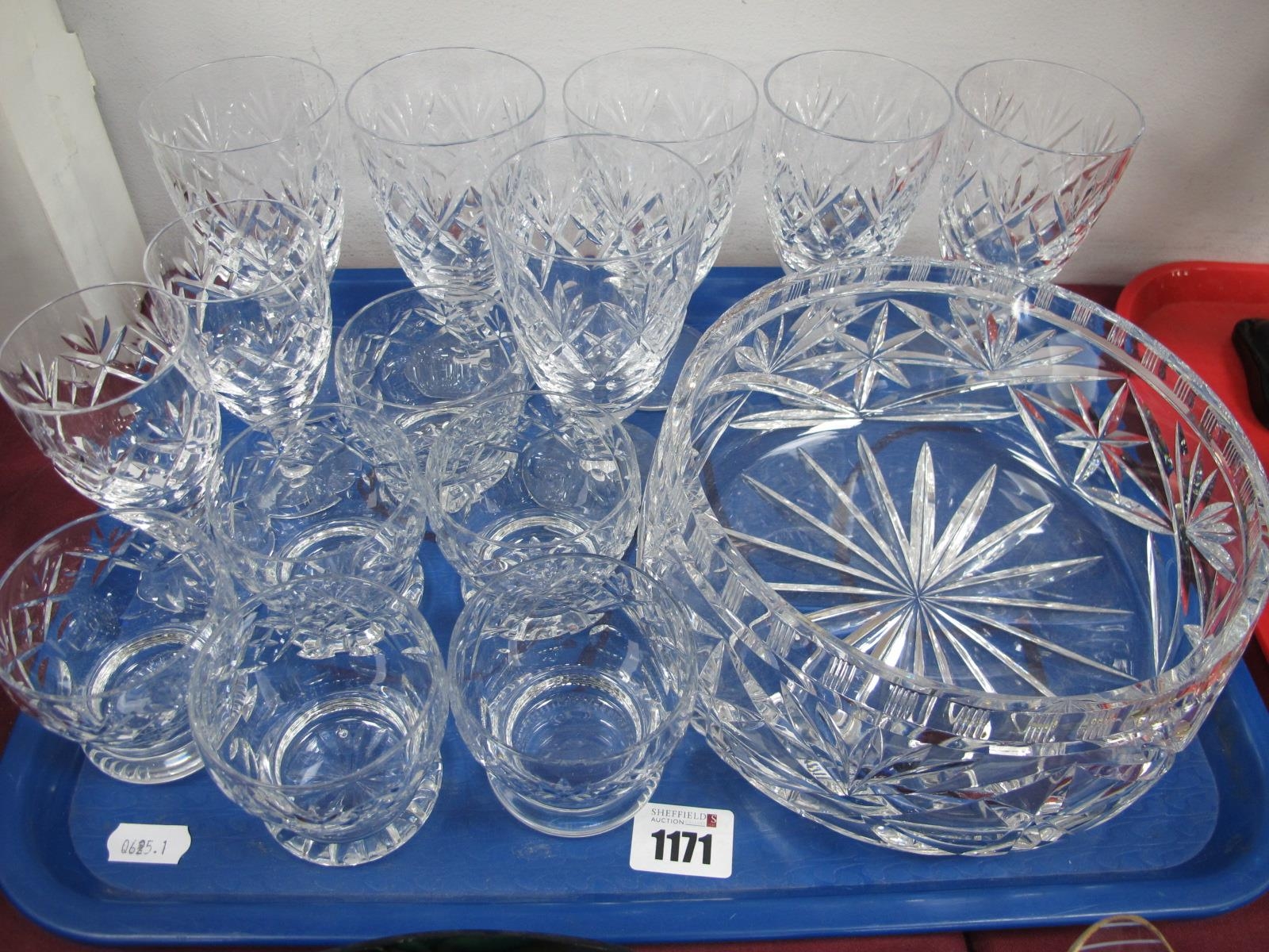 A Set of Six Webb Wine Glasses, two Sherry glasses, a set of six Whisky tumblers inscribed on base Liversage Lodge, Ladies Night 1953 W.M.J.R Marriott, cut glass bowl:- One Tray.