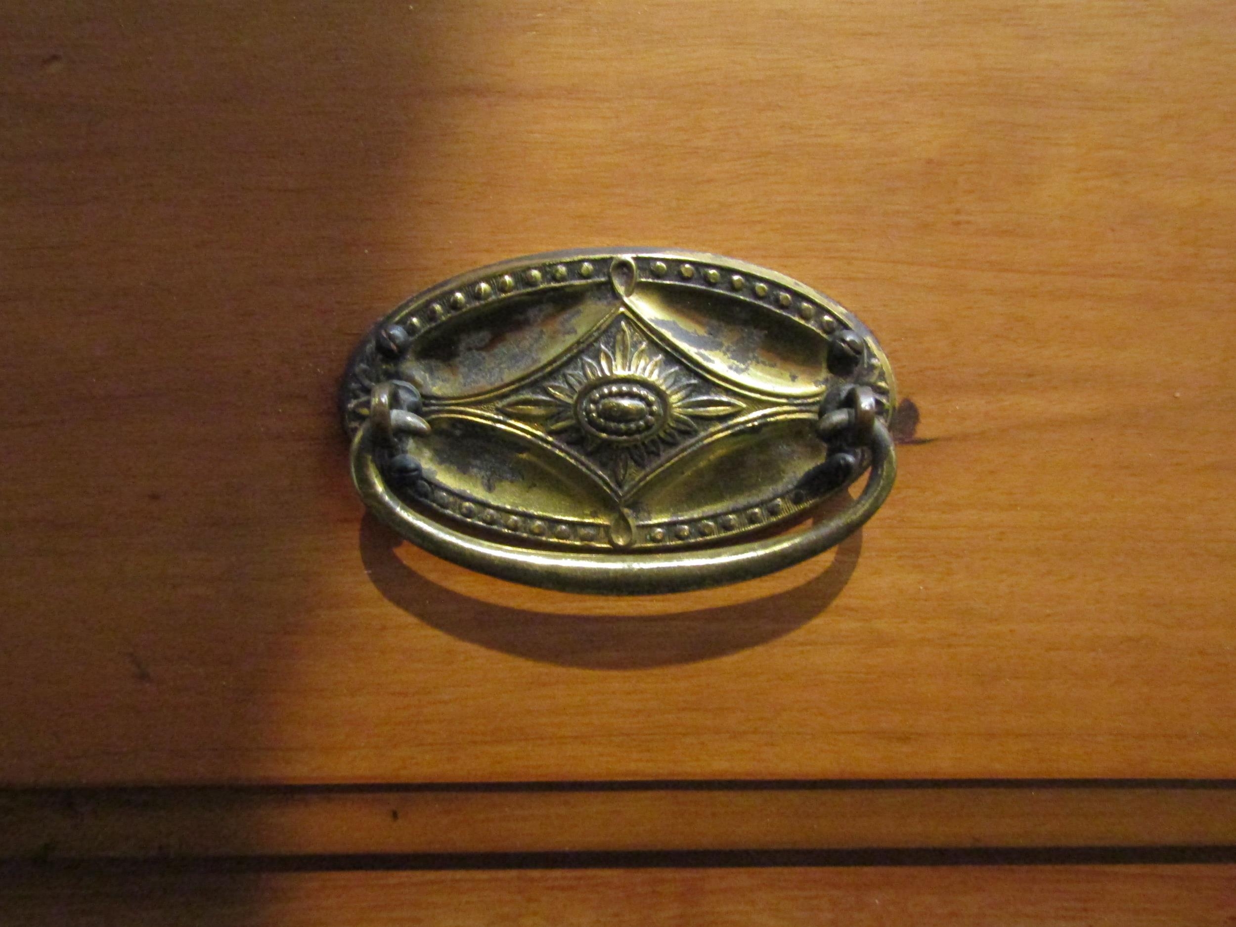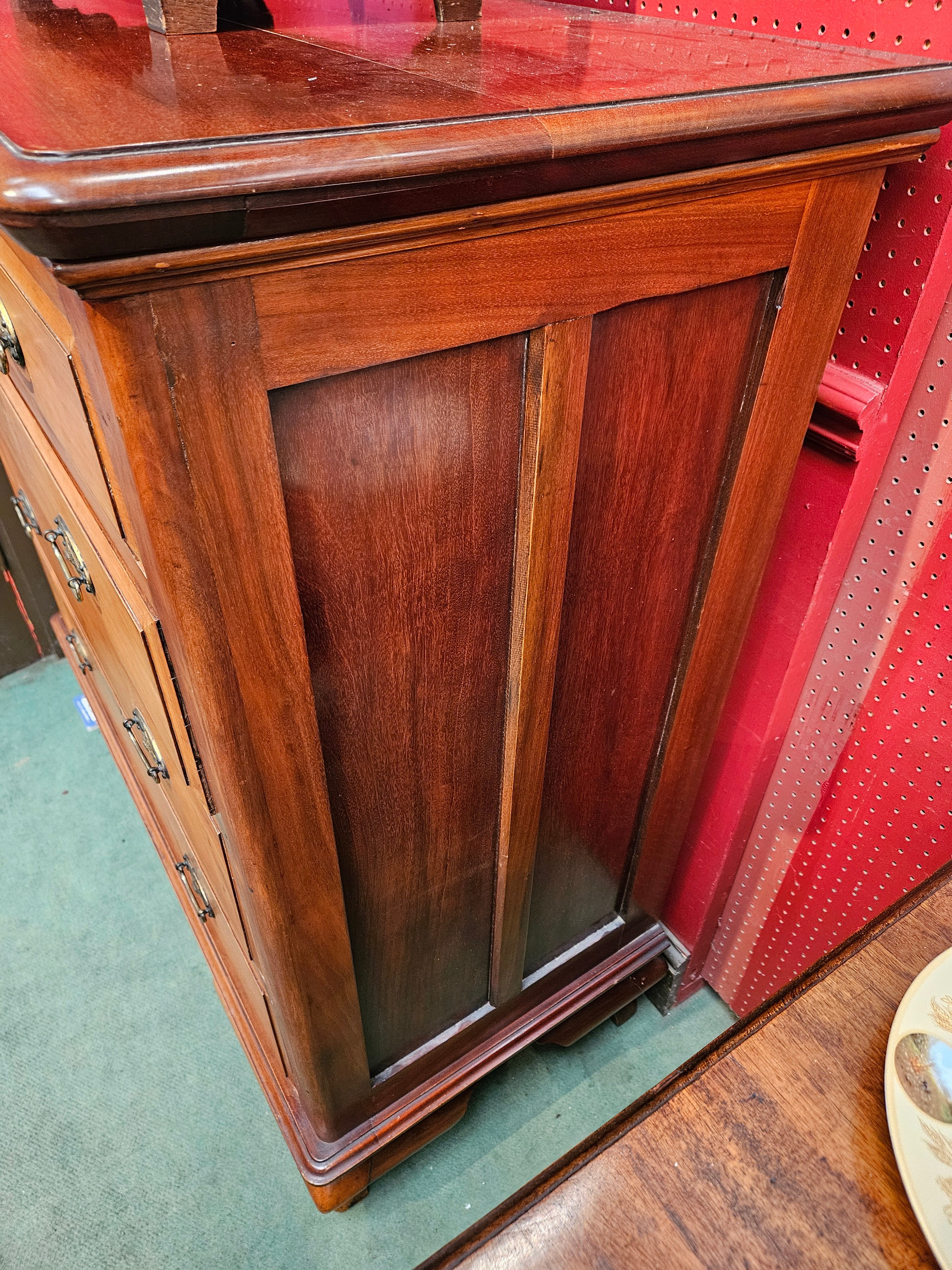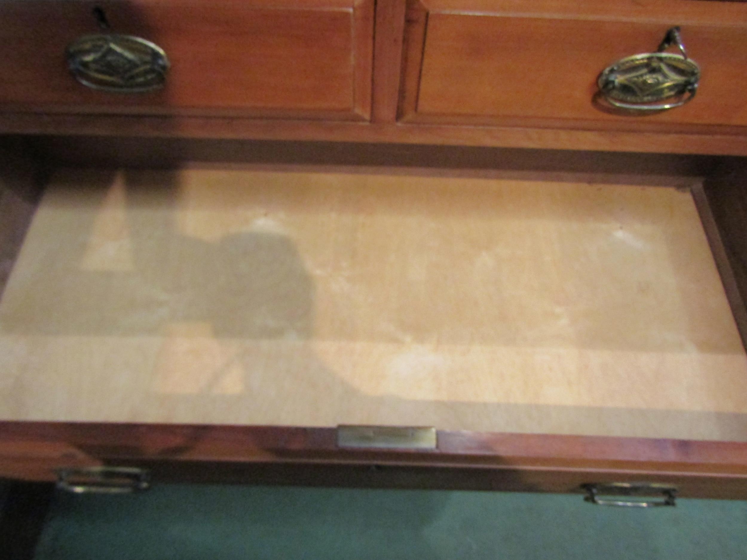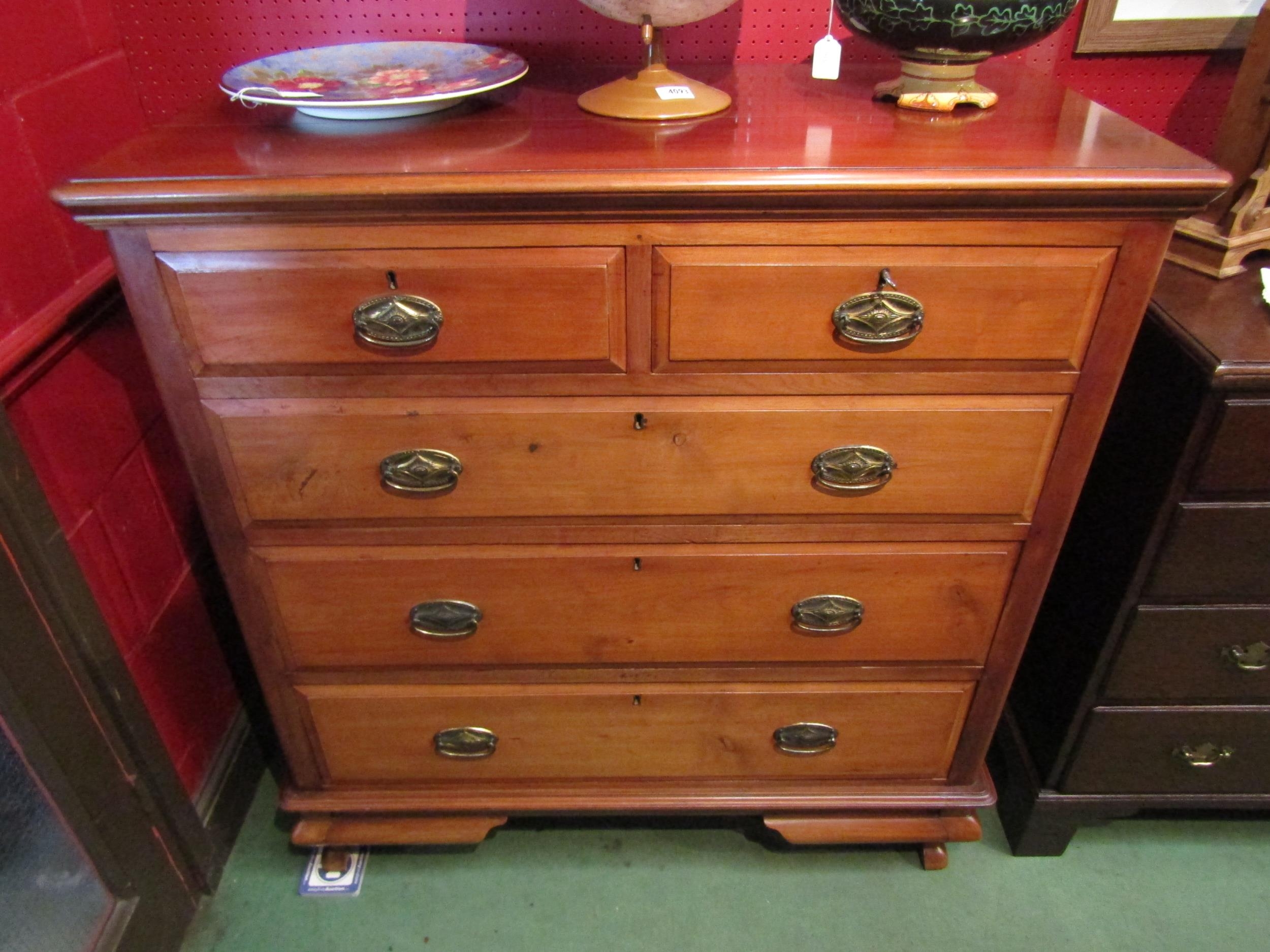A satinwood two over three panel sided chest of drawers with outswept feet, 110cm tall x 107cm wide x 48cm deep (R) £40