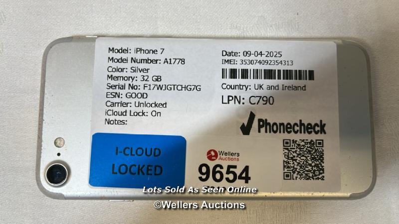 IPHONE 7/ A1778/ SILVER/32GB/ IMEI-353074092354313 (I-CLOUD ...