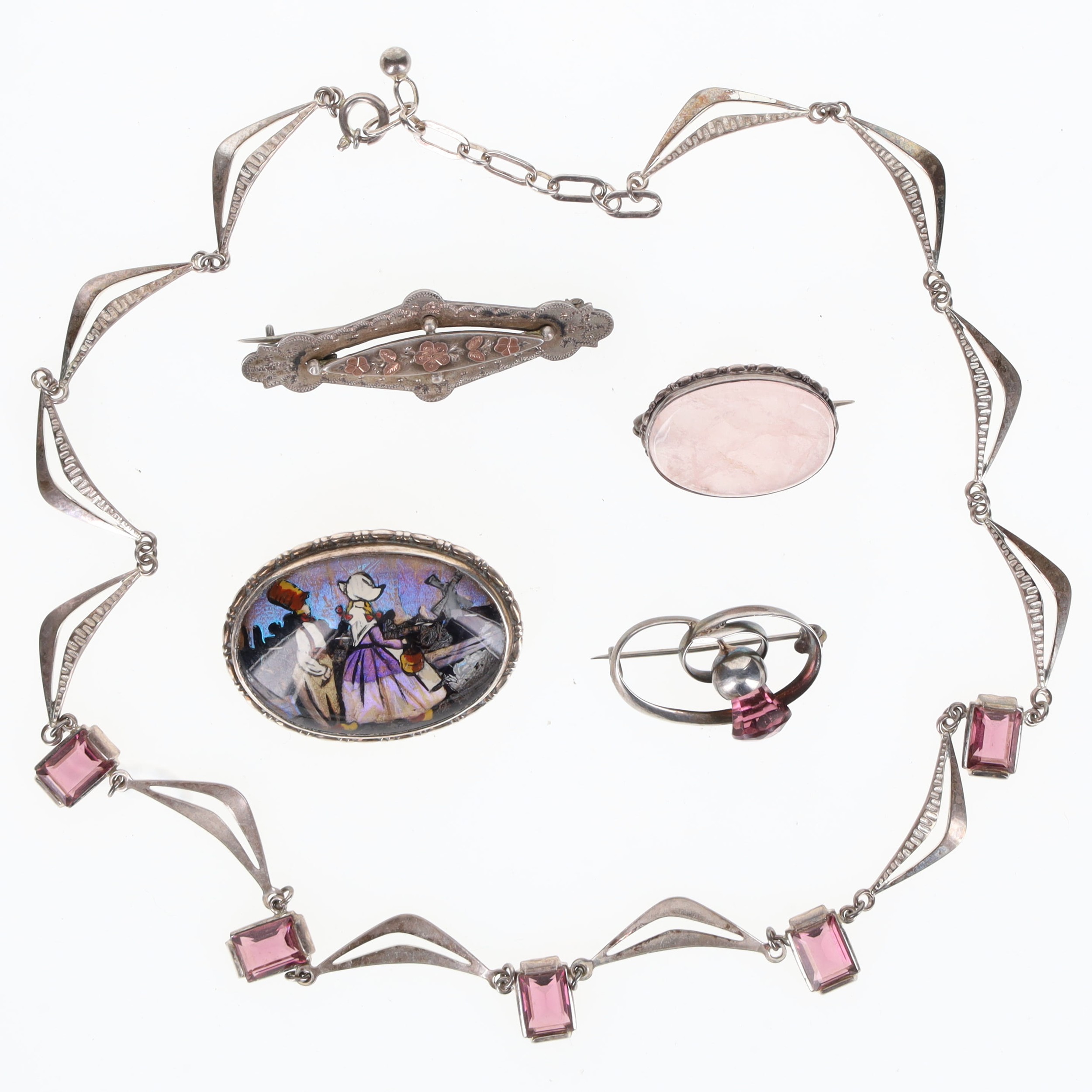 Antique and Vintage Silver Jewellery Collection incl. Rose Quartz, Butterfly Wing, Victorian, Art Deco, 35g