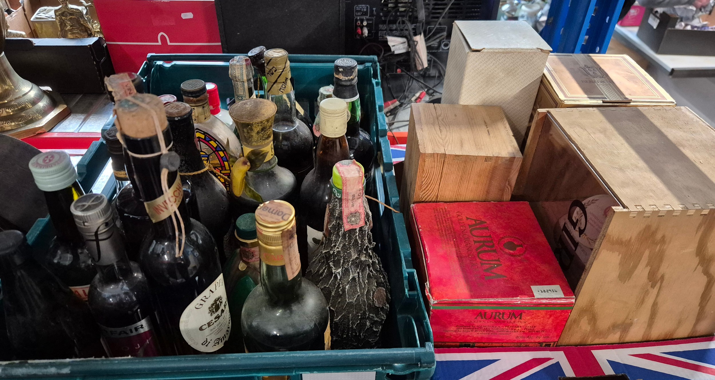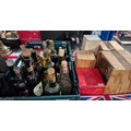Two boxes of alcoholic beverages including Grappa, Benedictine ,Champagne, Vintage port (1963), etc