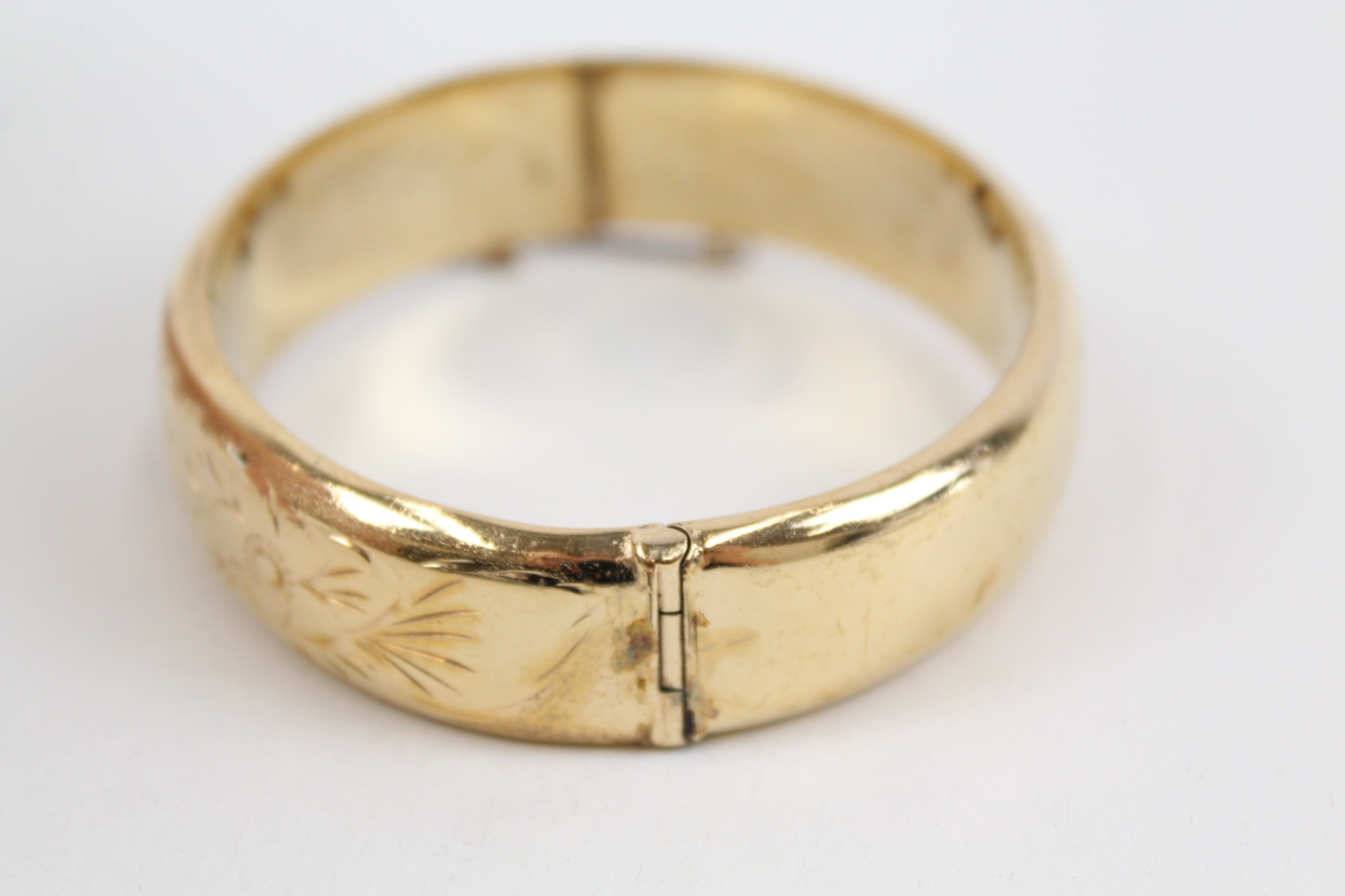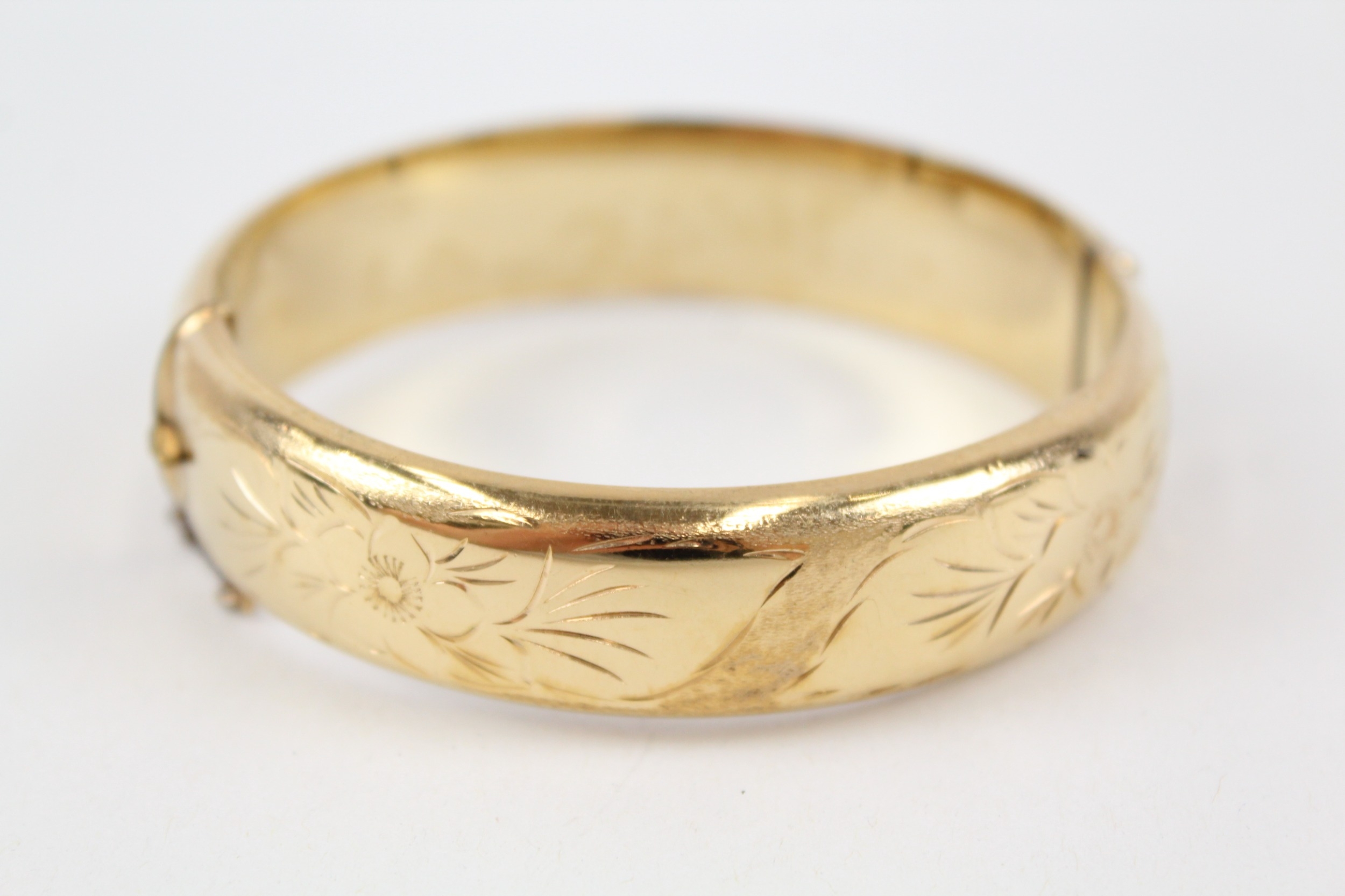 Excalibur Rolled Gold Bangle inc. Safety Chain, Floral Design 21g