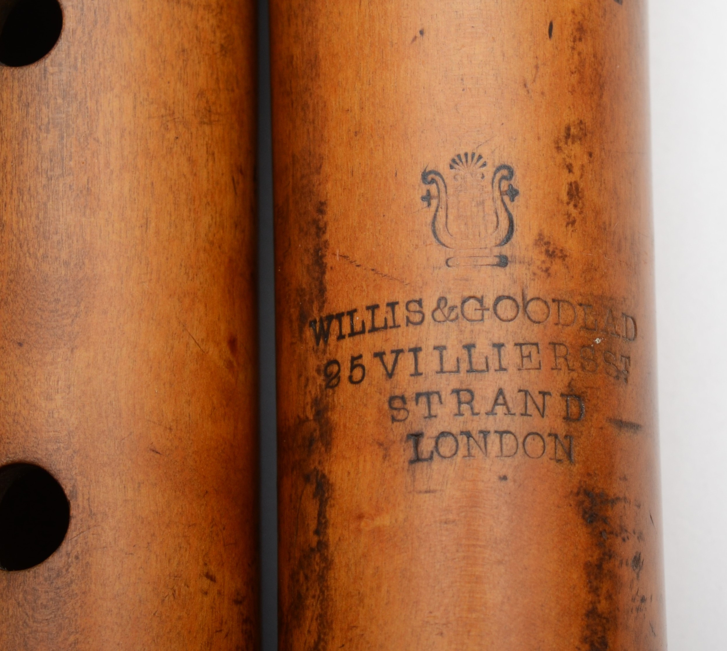 Mary Ann Willis and John Dunkin Goodlad operated from 25 Villiers Street, Strand, London, an area well known for flute makers. Excerpt from the London Gazette: "Notice is hereby given that the partnership heretofore carried on by us the undersigned, Mary Ann Willis and John Dunkin Goodlad, as Flute-Manufacturers, at 25 Villiers-Street, in the Strand, is hereby dissolved on the 30th of June 1836, by mutual consent; and all persons indebted to the said concern are to pay the amount of their debts to the said John Dunkin Goodlad, who will discharge all claims on the same".