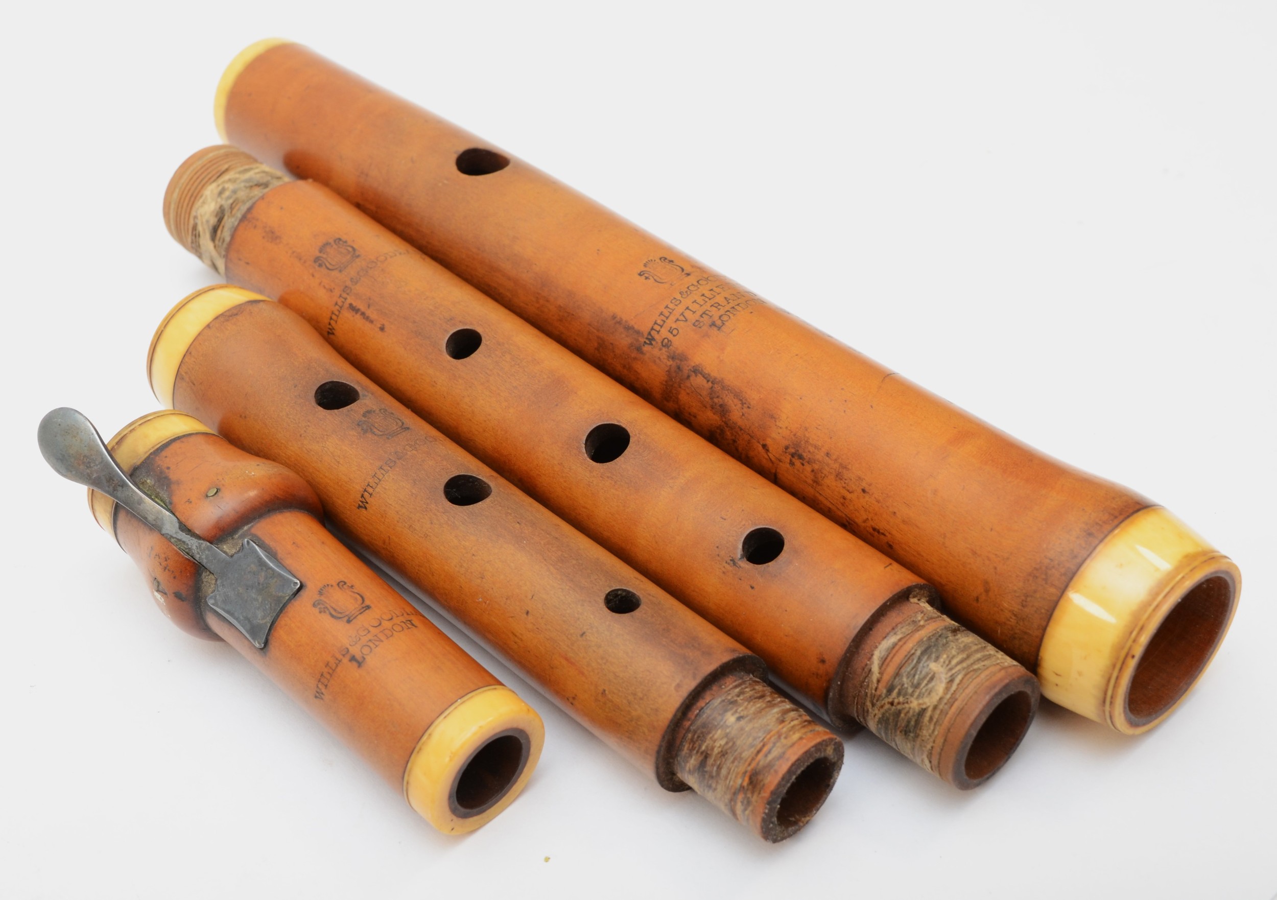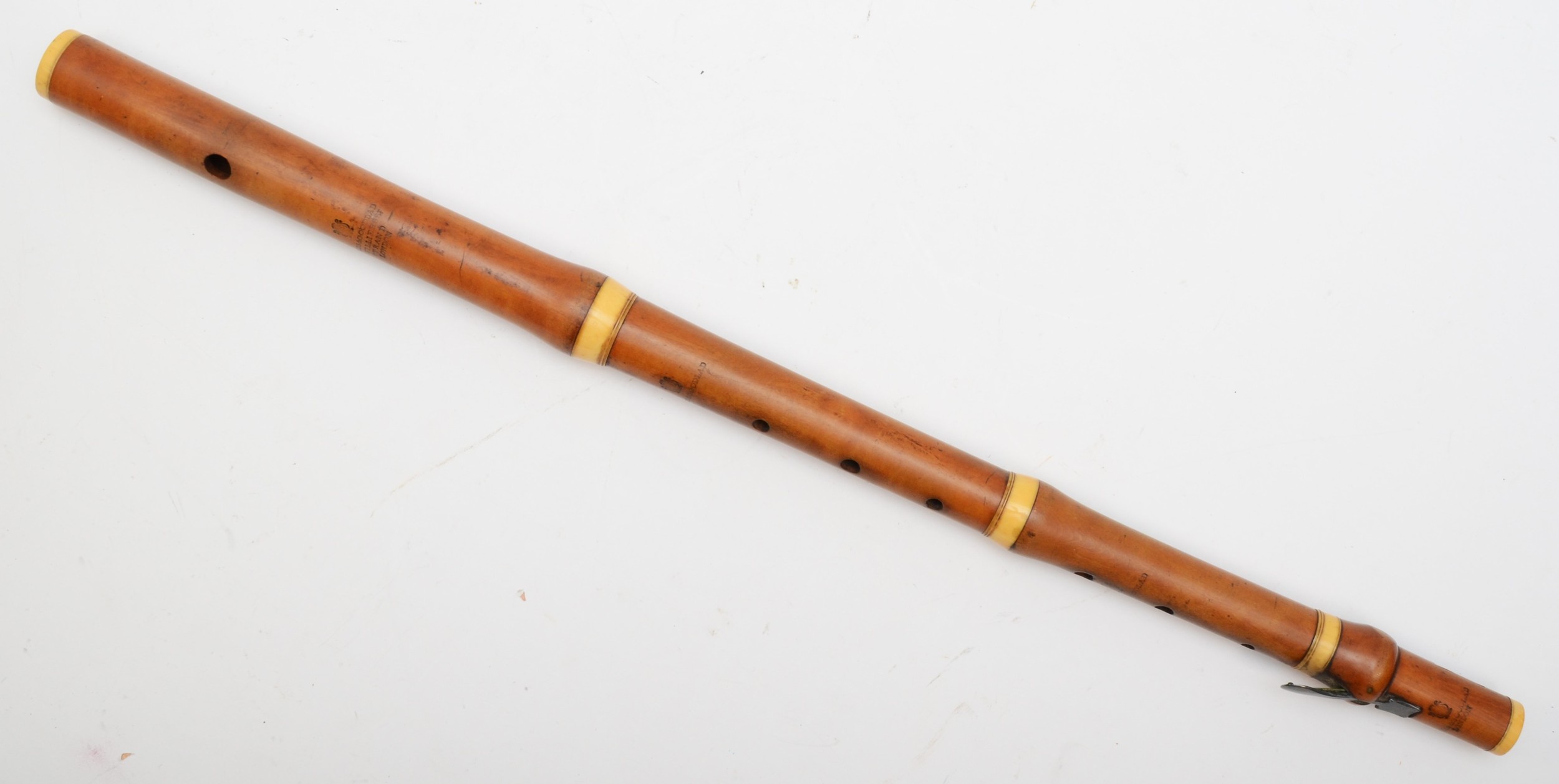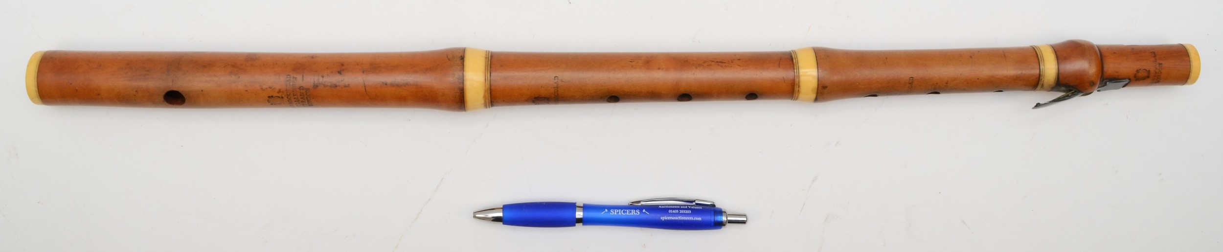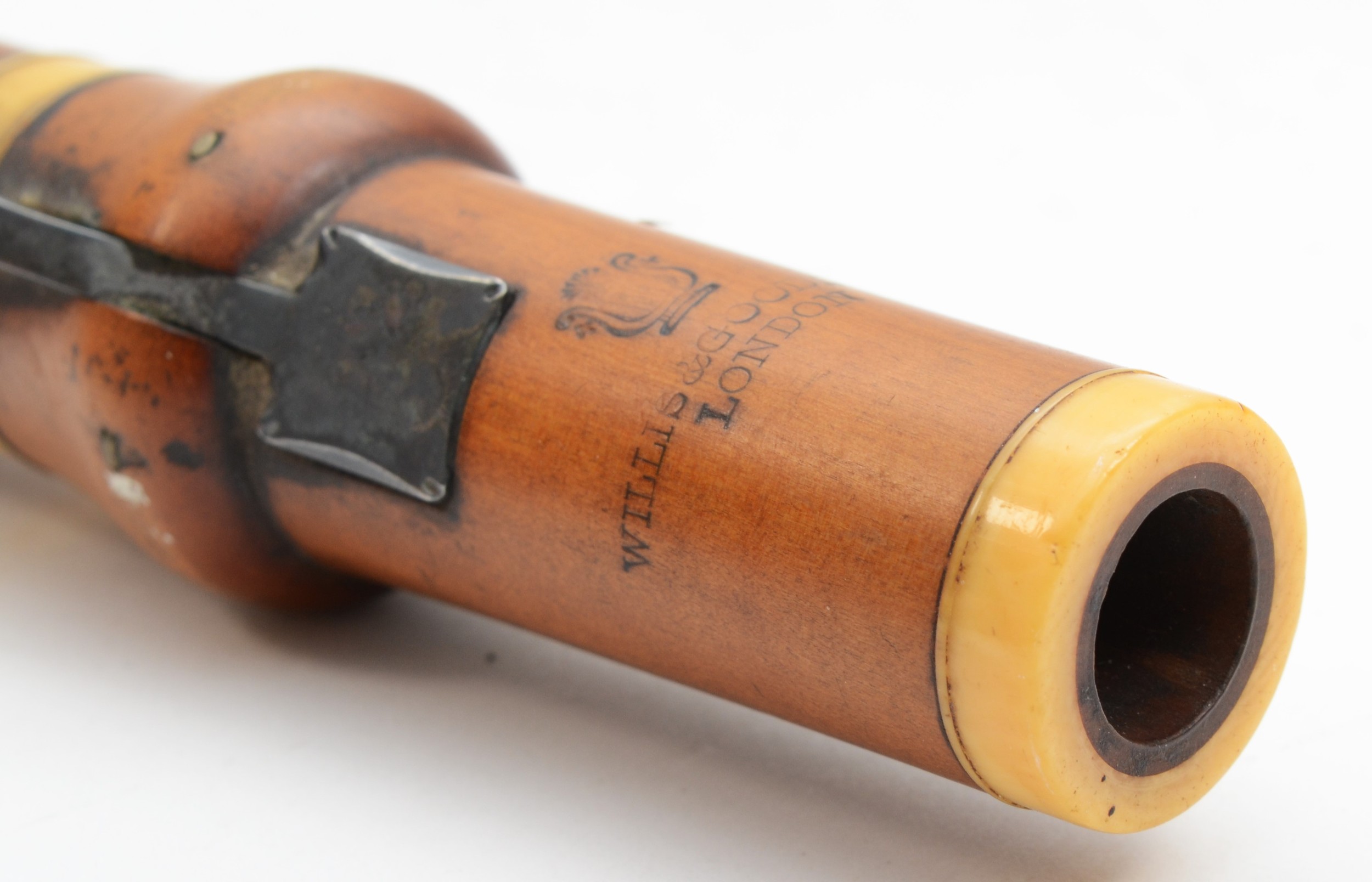 Willis & Goodlad, an early 19th century boxwood and ivory four section eight key or "Irish" flute, c.1820/36, each section signed, 60cm or 24".