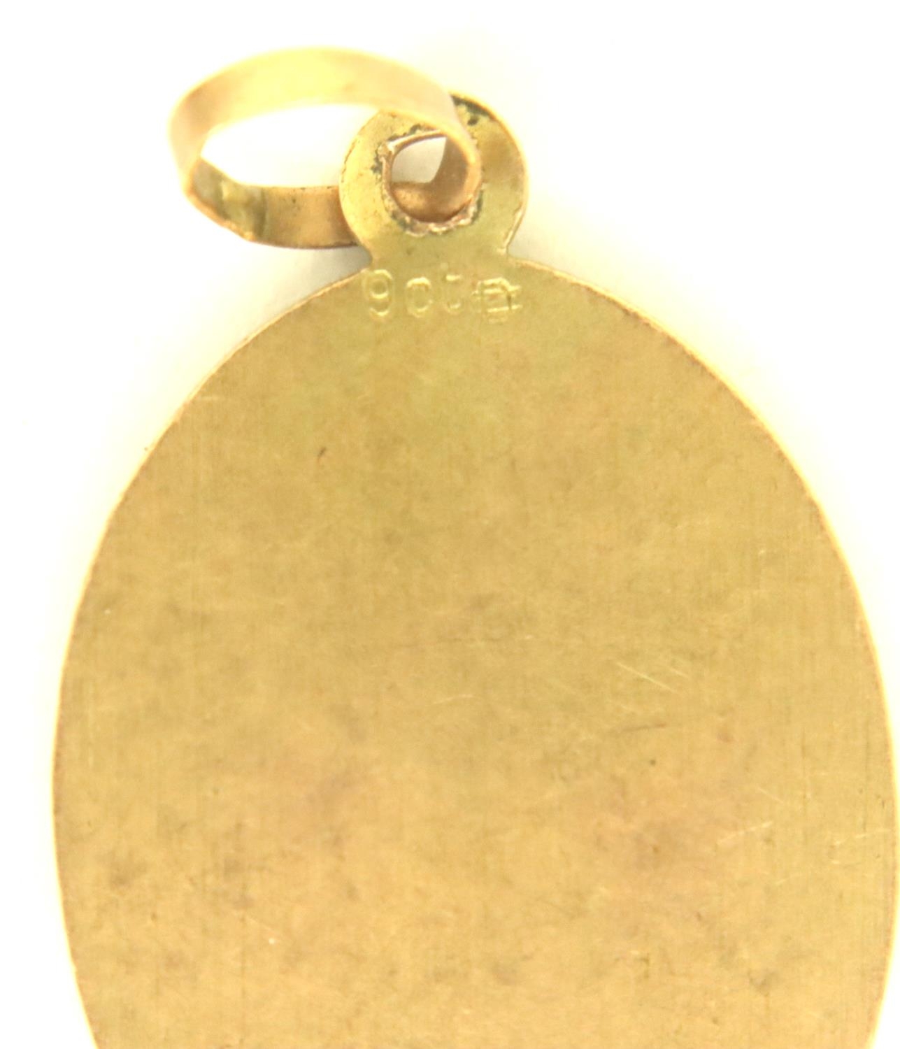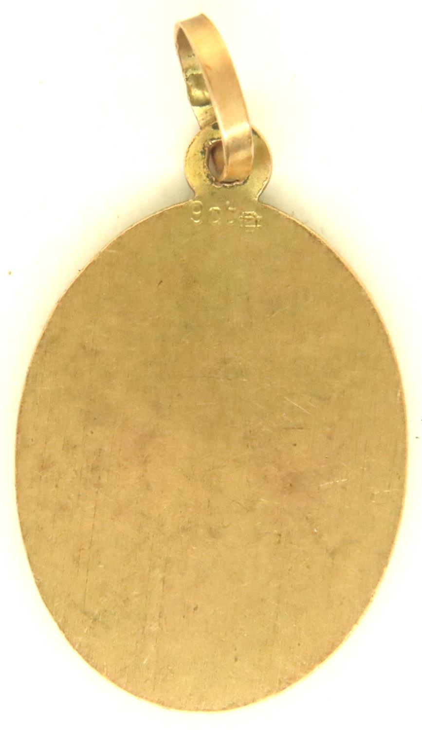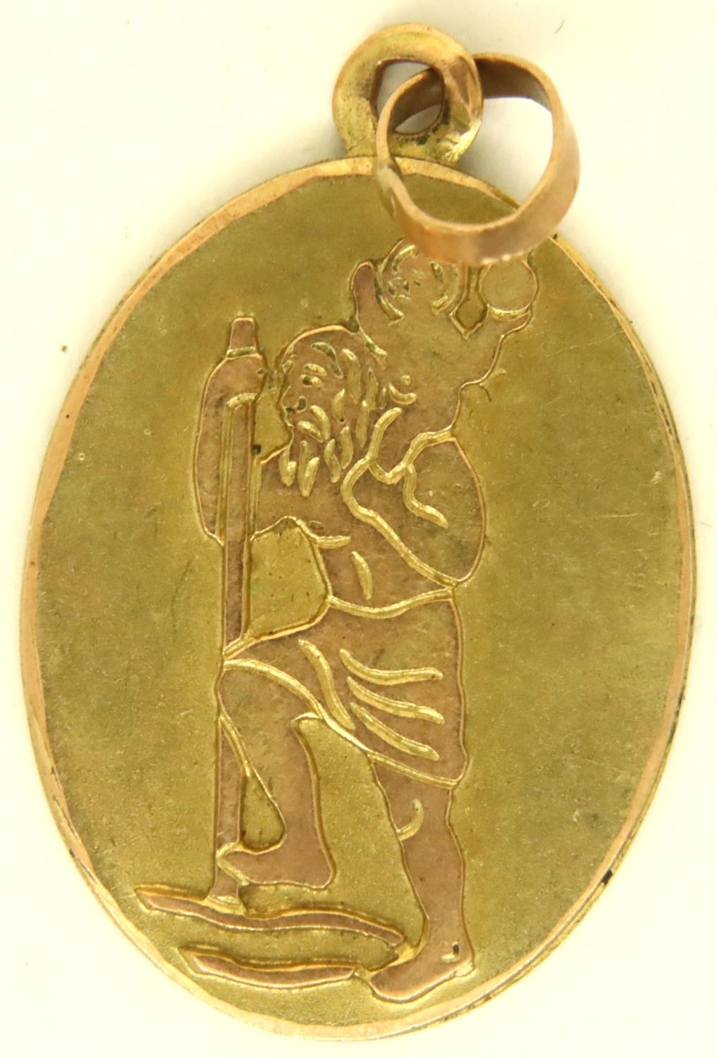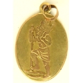 9ct yellow gold oval St Christopher pendant, 2.0g. P&P Group 1 (£14+VAT for the first lot and £1+VAT for subsequent lots)