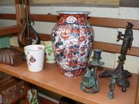 A 19th century cut glass pedestal bowl, 18cm high; together with a twin branch table lustre, 46cm high.