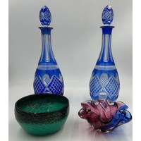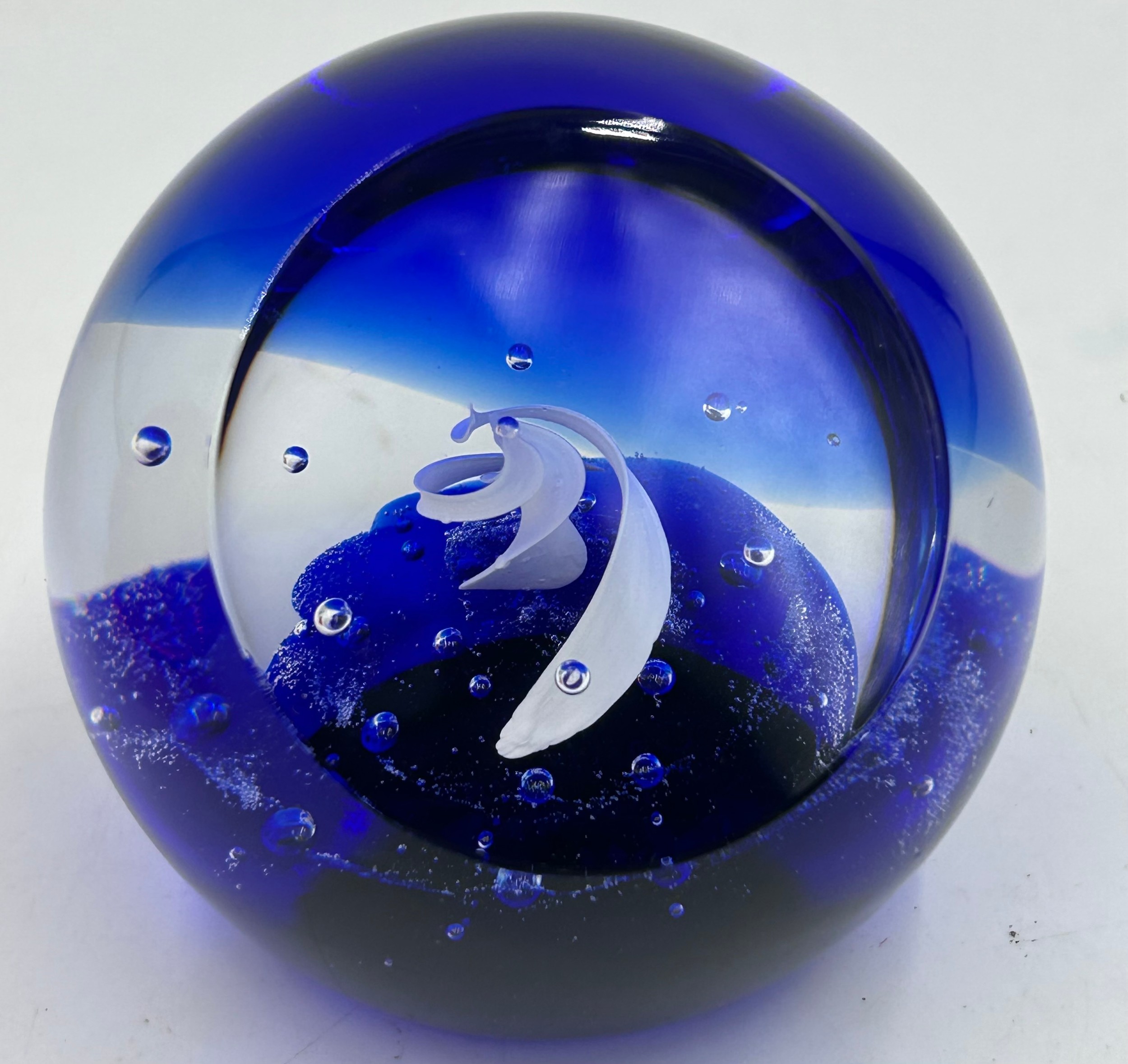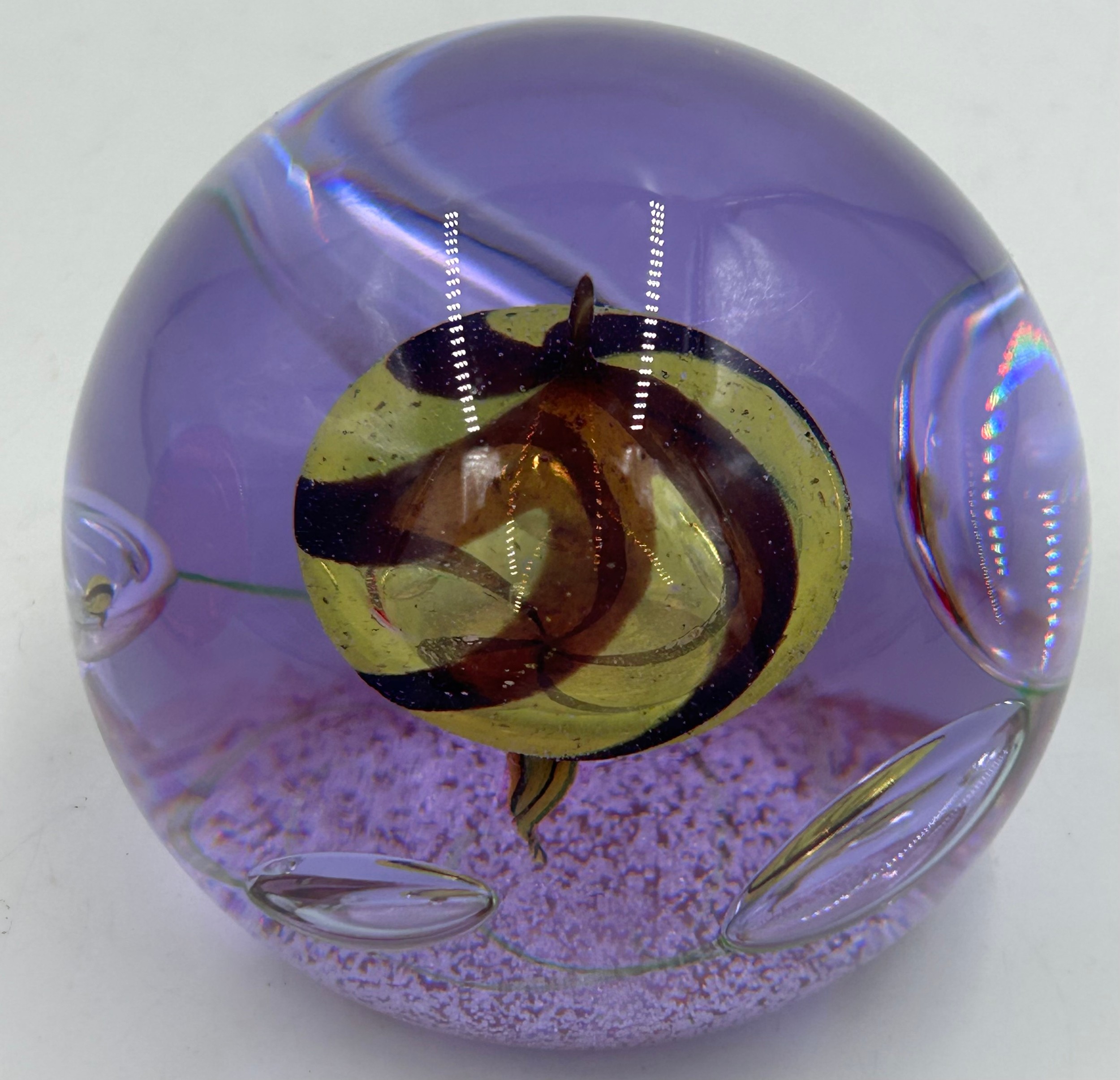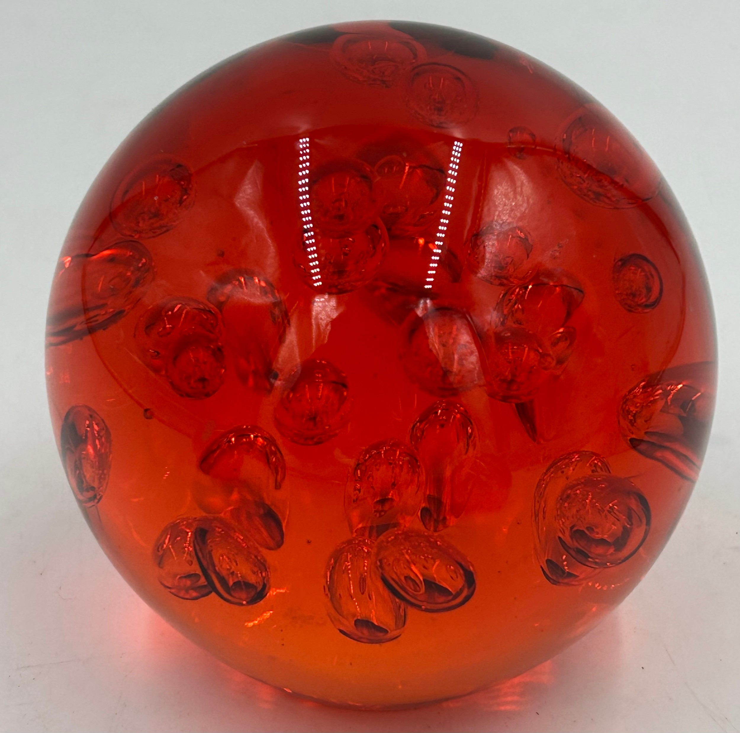 Three Caithness paperweights to include: Myriad, Merry Go Round (boxed) and Summit together with a vintage red controlled bubble paperweight and a contemporary Wedgwood Vera Wang bowl Made in Germany. (5)