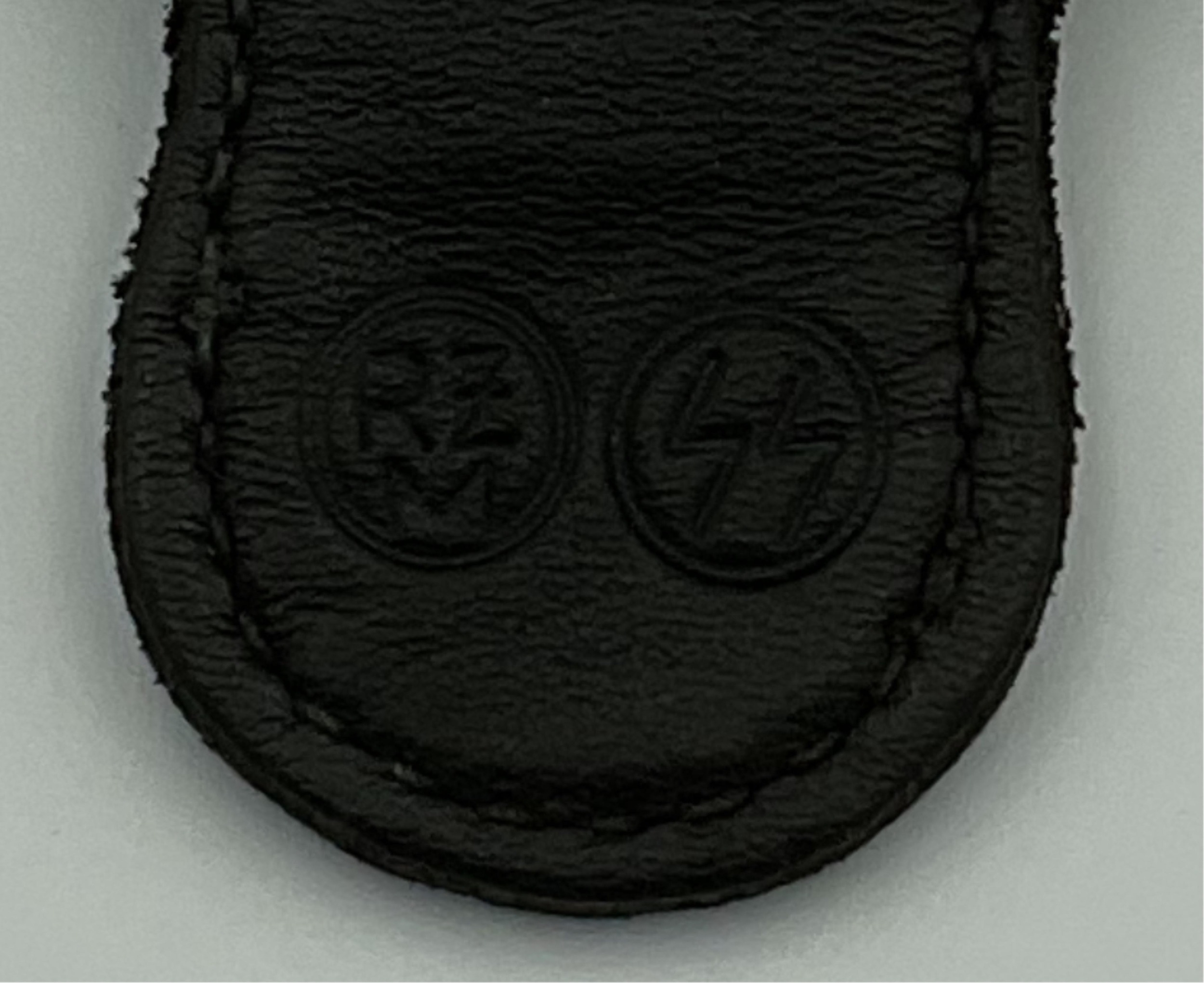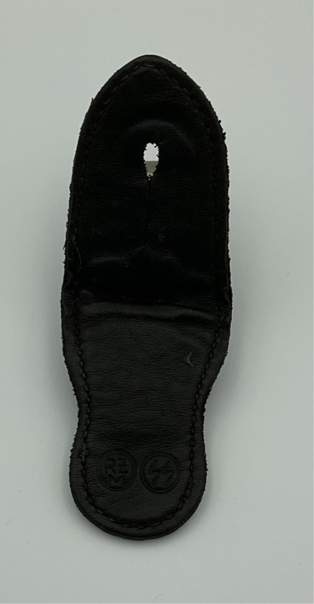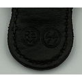 German Third Reich SS dagger vertical hanger clip, good scarce black leather example impressed with SS runes, RZM logo.,