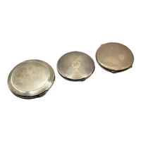 WALKER & HALL, AN ART DECO MIRRORED SILVER COMPACT, HALLMARKED CHESTER, 1938, TOGETHER WITH TWO OTHER MIRRORED SILVER COMPACTS