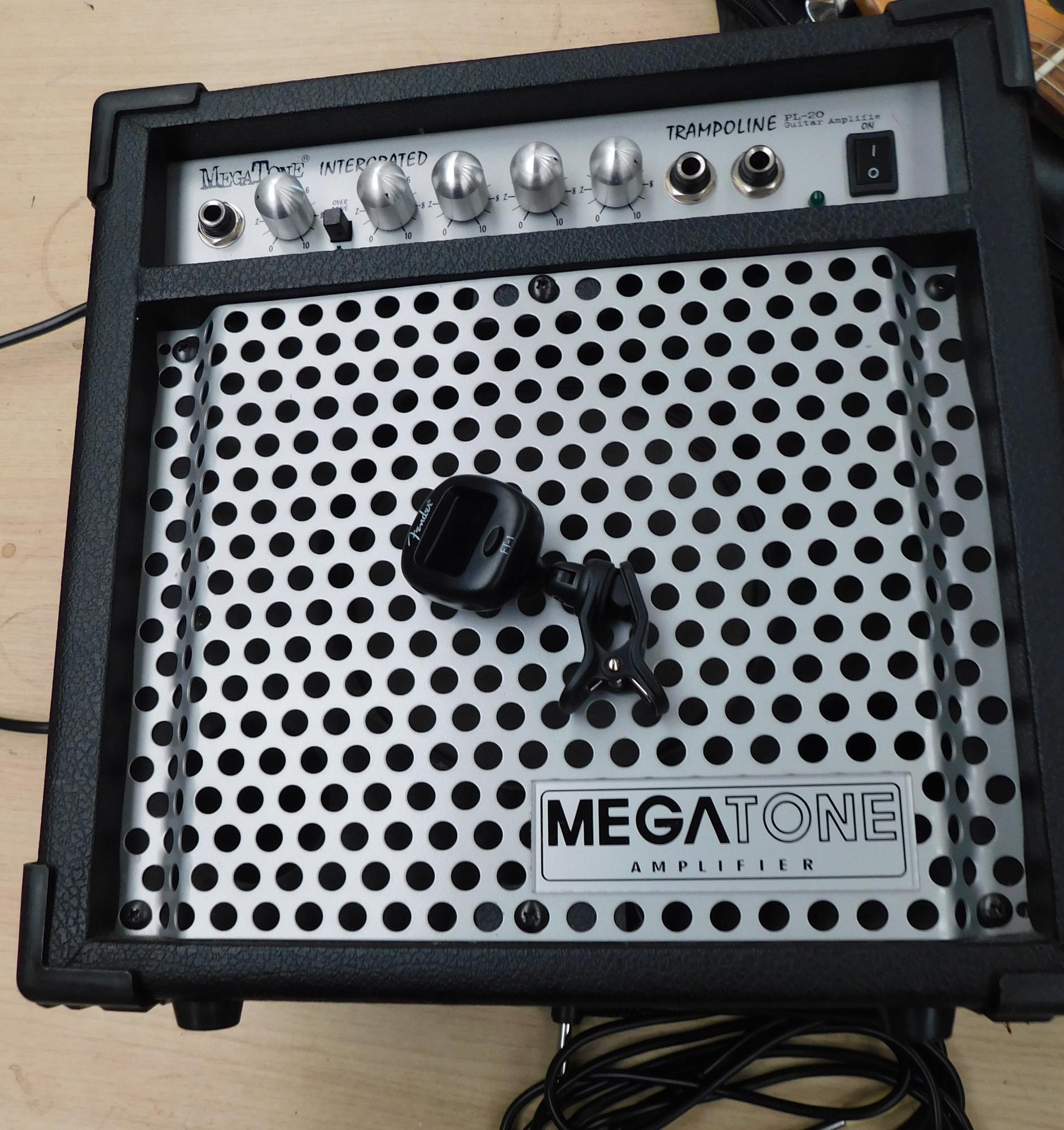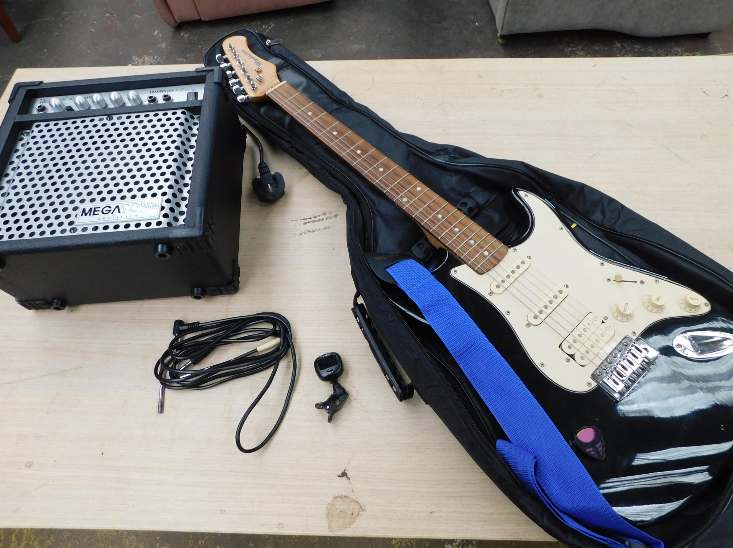 Manhattan electric guitar in case - with fender tuner and Megatone amp W/O