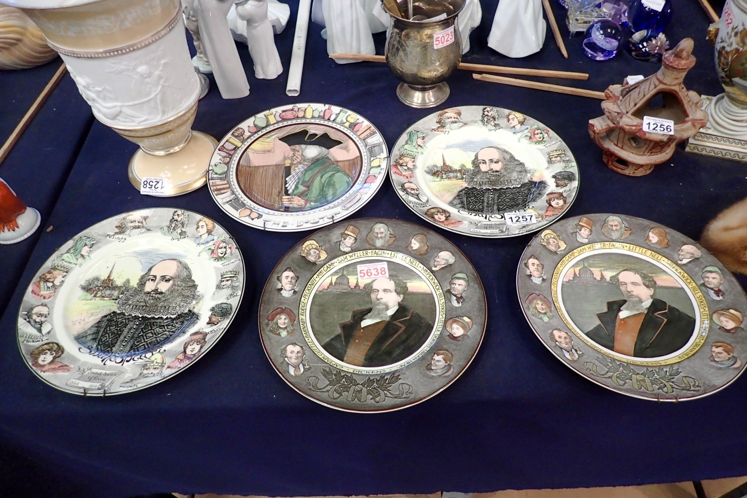 Five Royal Doulton wall plates including Shakespeare. Not available for in-house P&P