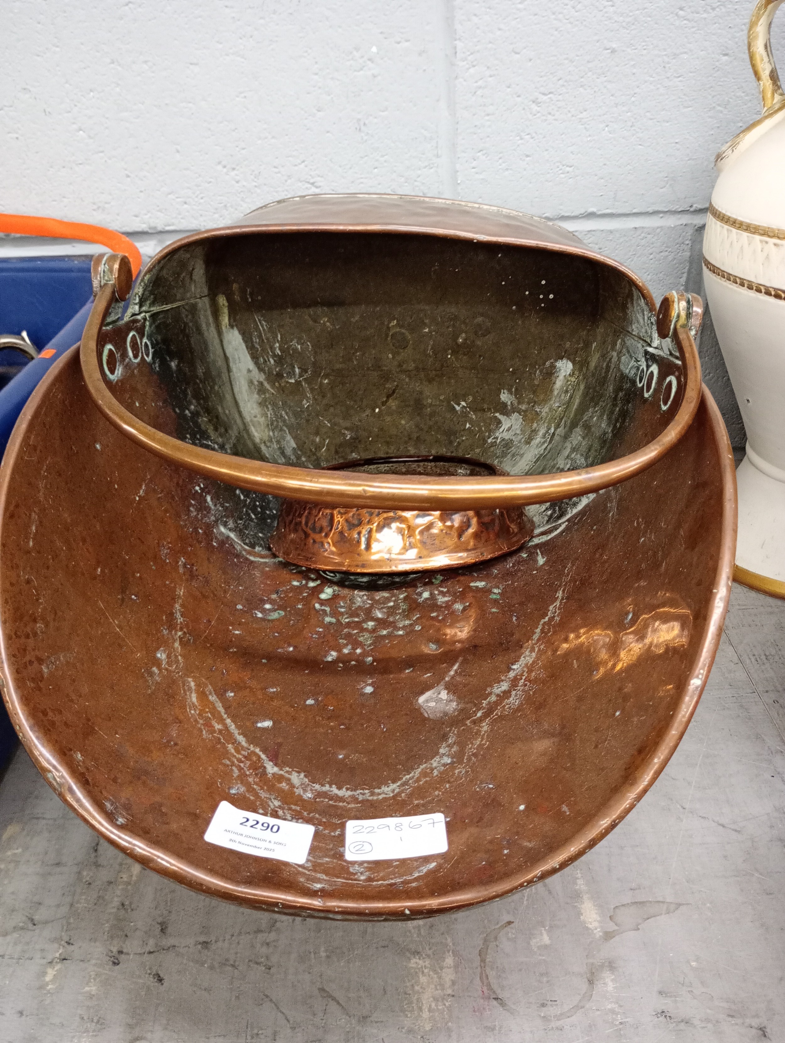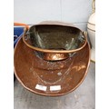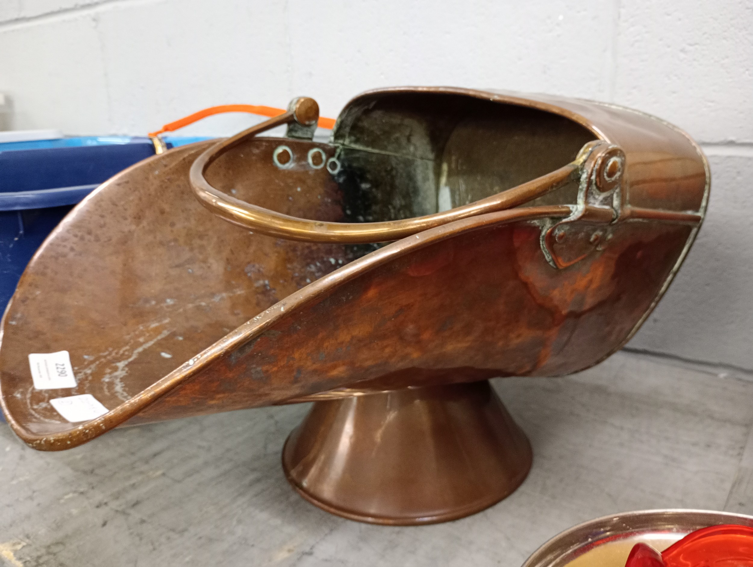 A large copper coal scuttle and a copper ashtray/dog bowl *Not available for packing and posting*