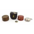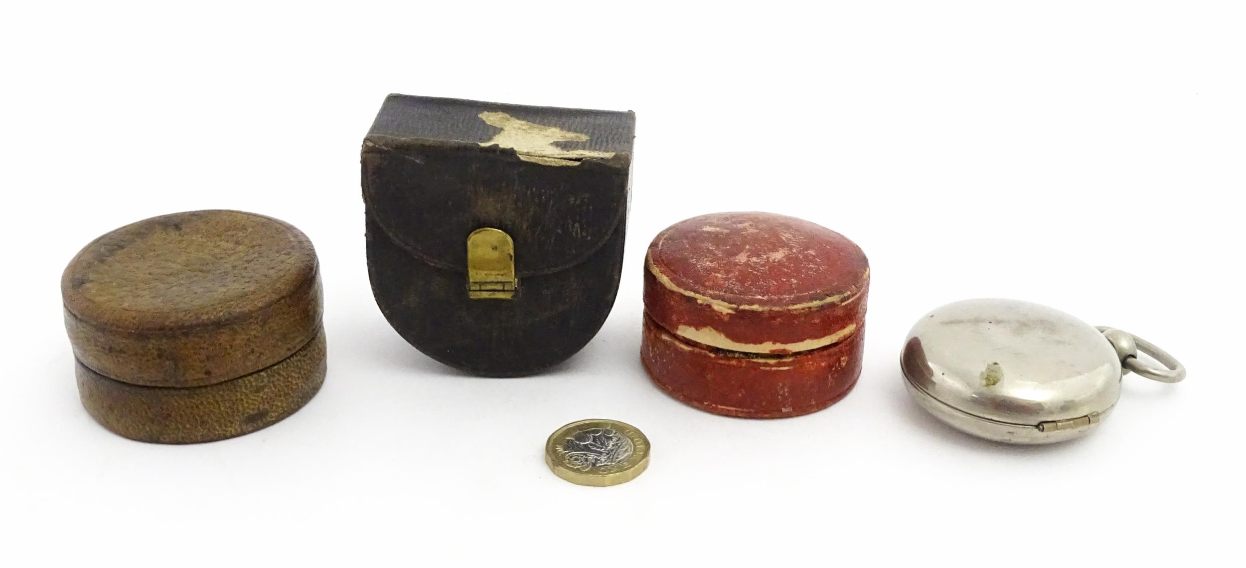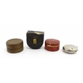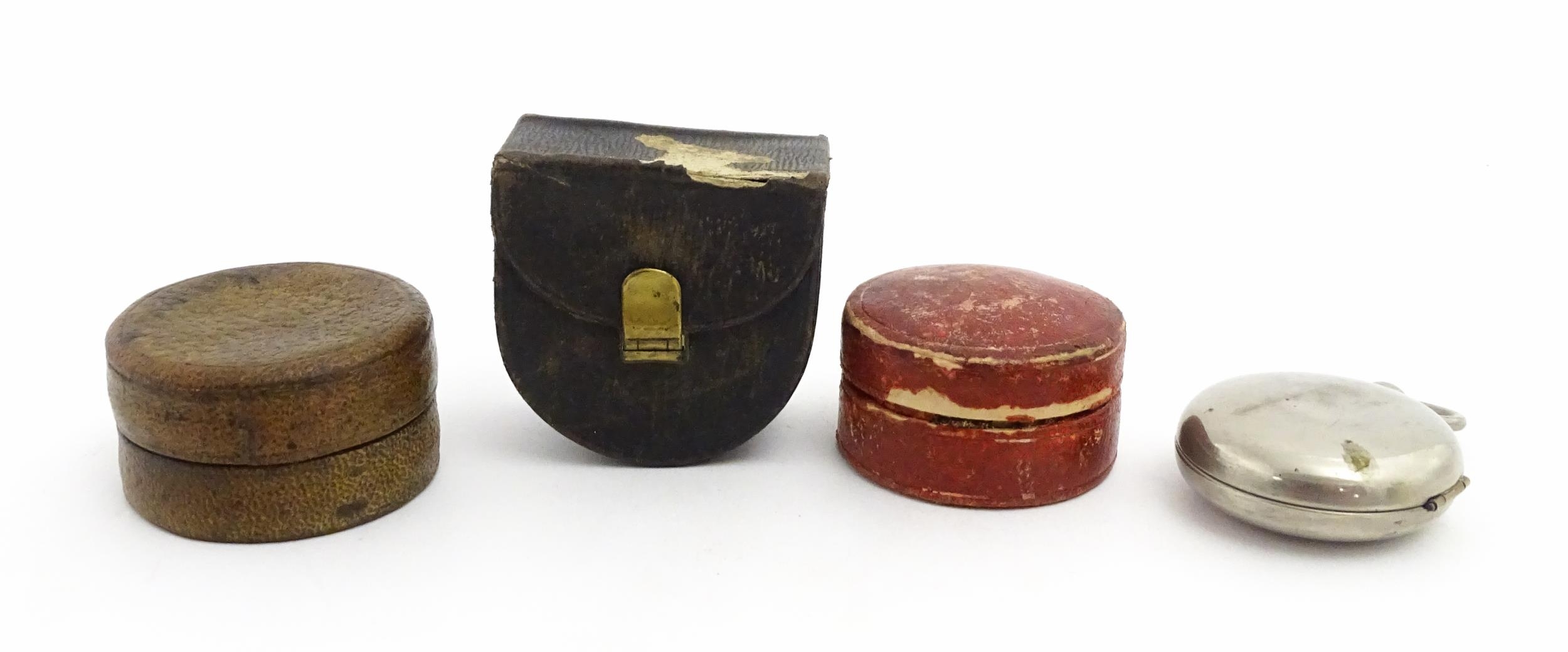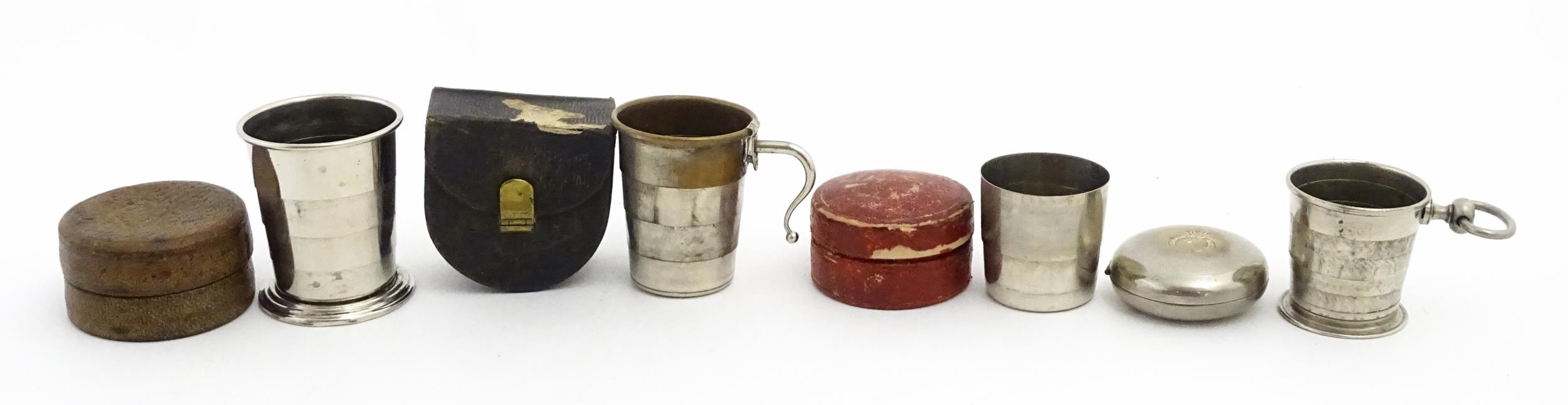 Four early 20thC silver plate collapsible stirrup cups, to include one of novelty pocket watch form. Largest approx. 2" wide (4)