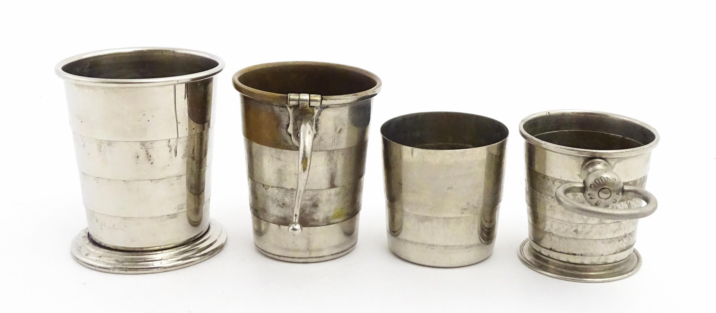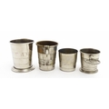 Four early 20thC silver plate collapsible stirrup cups, to i...