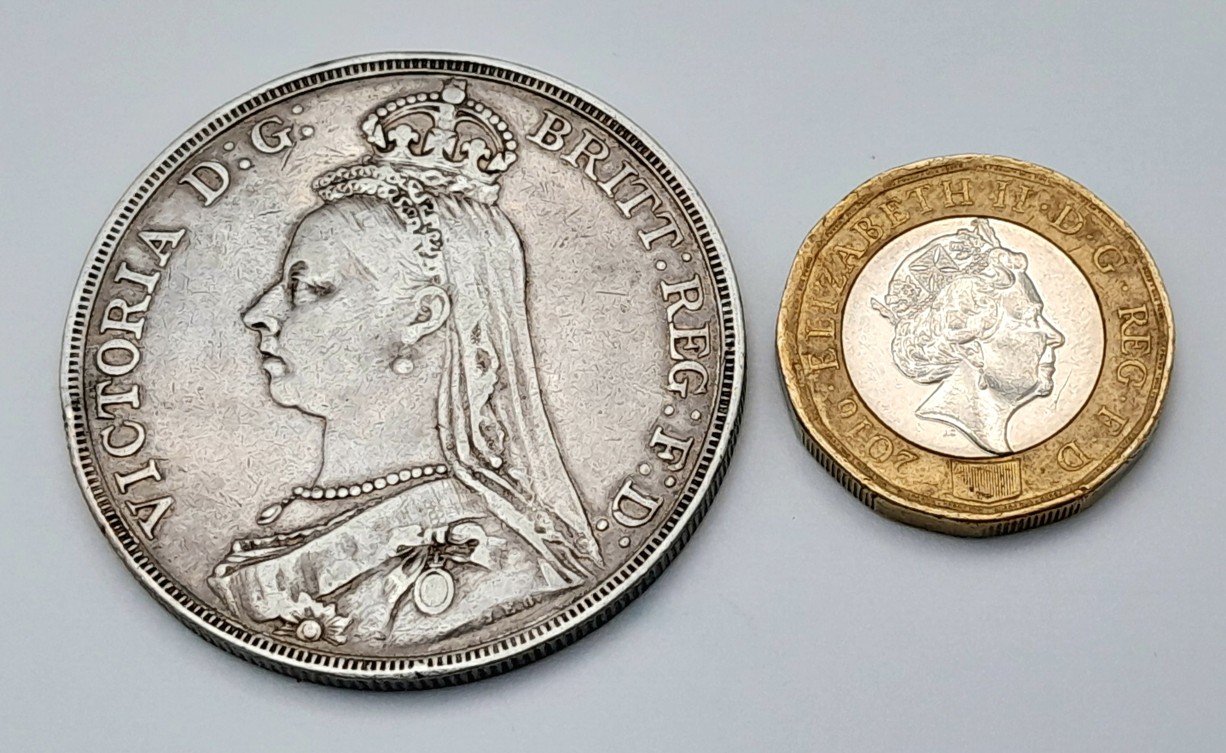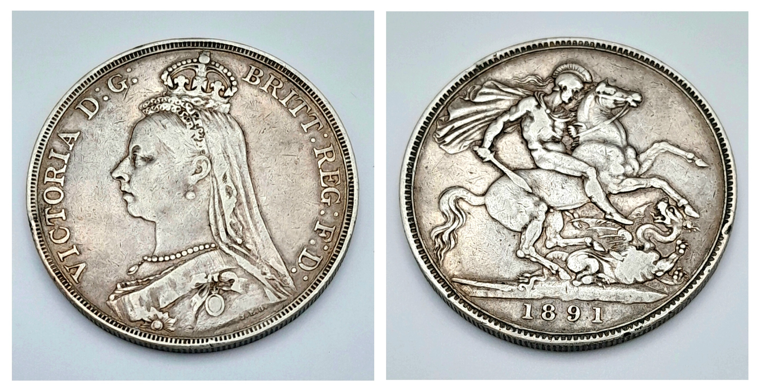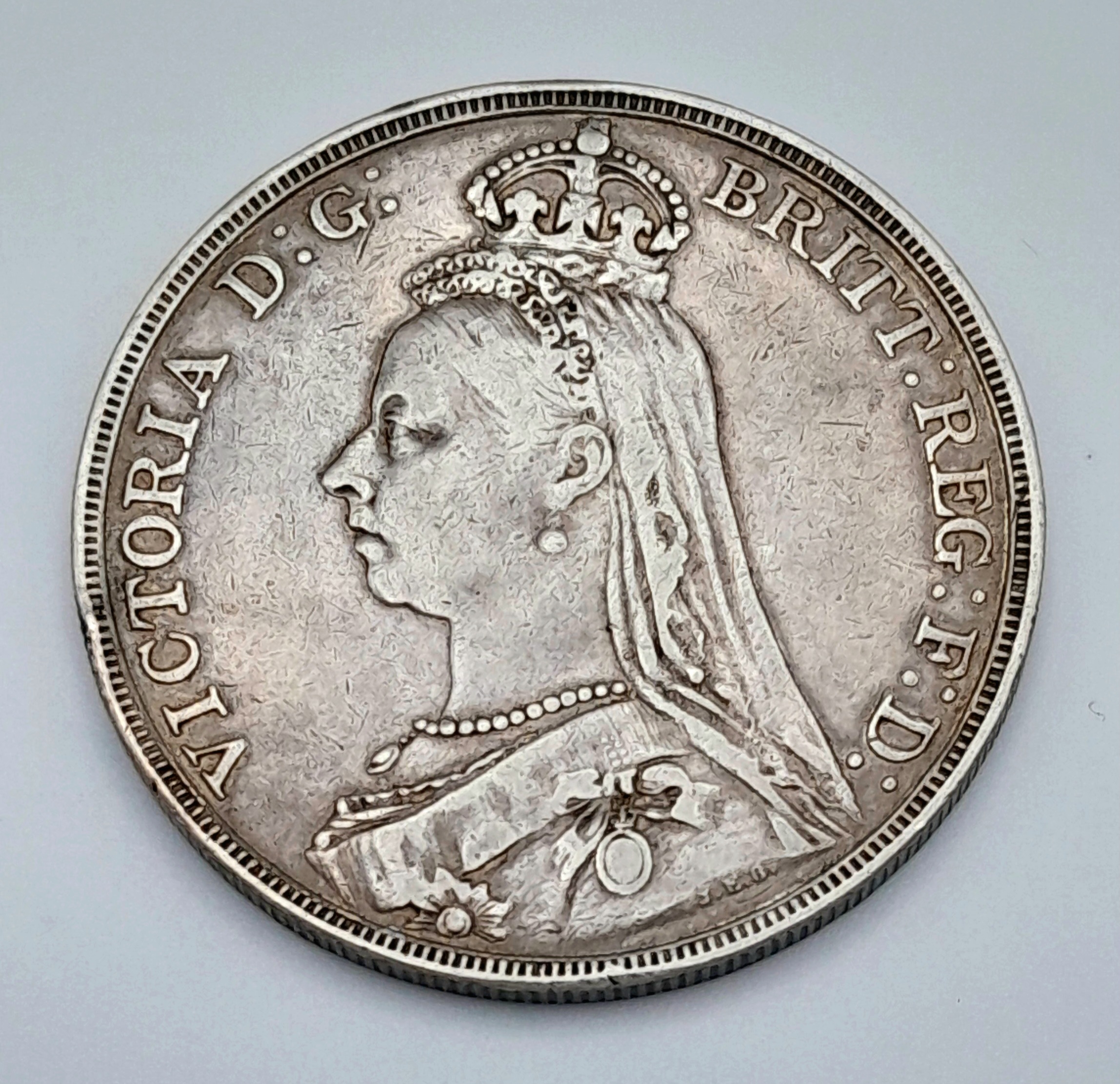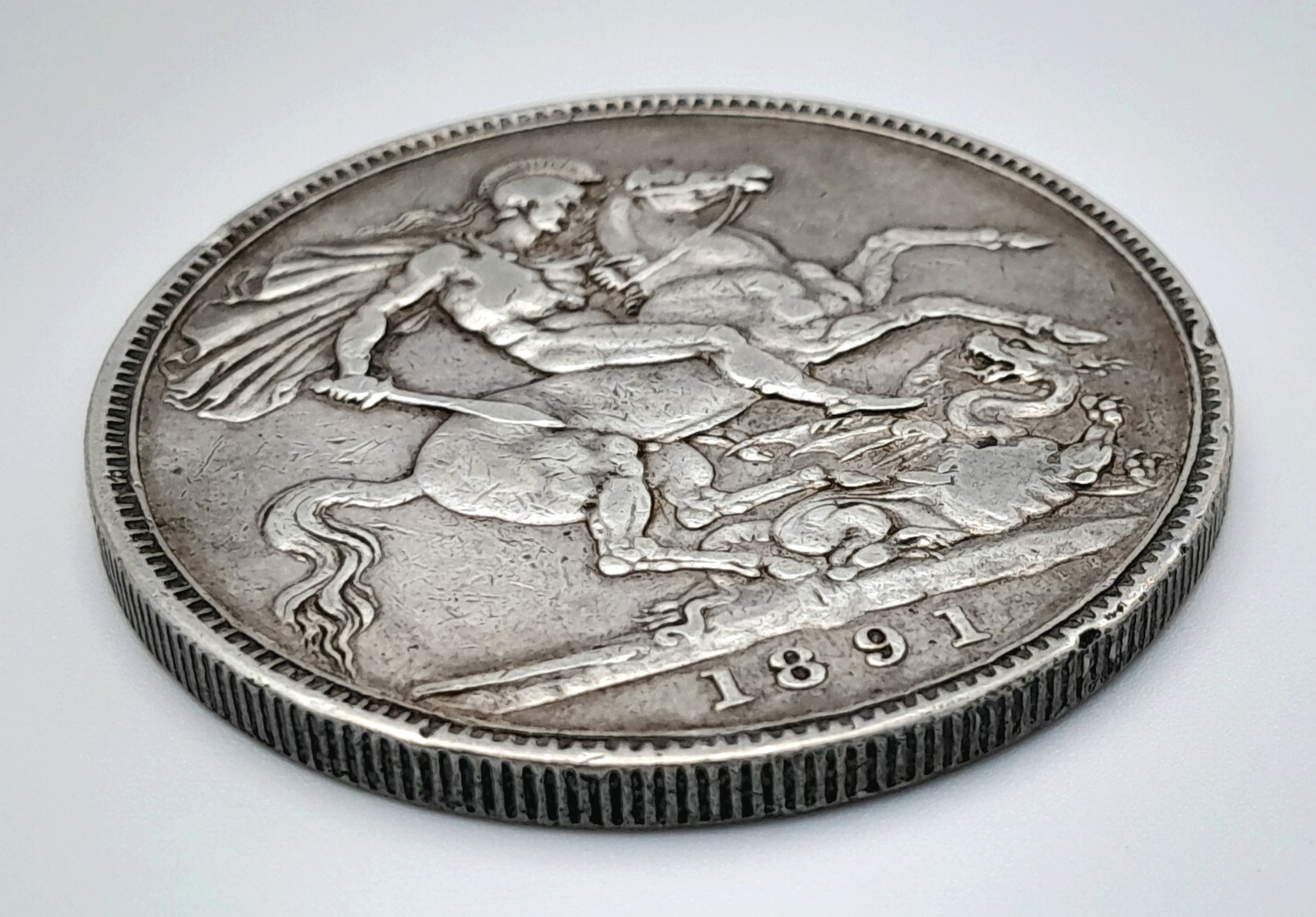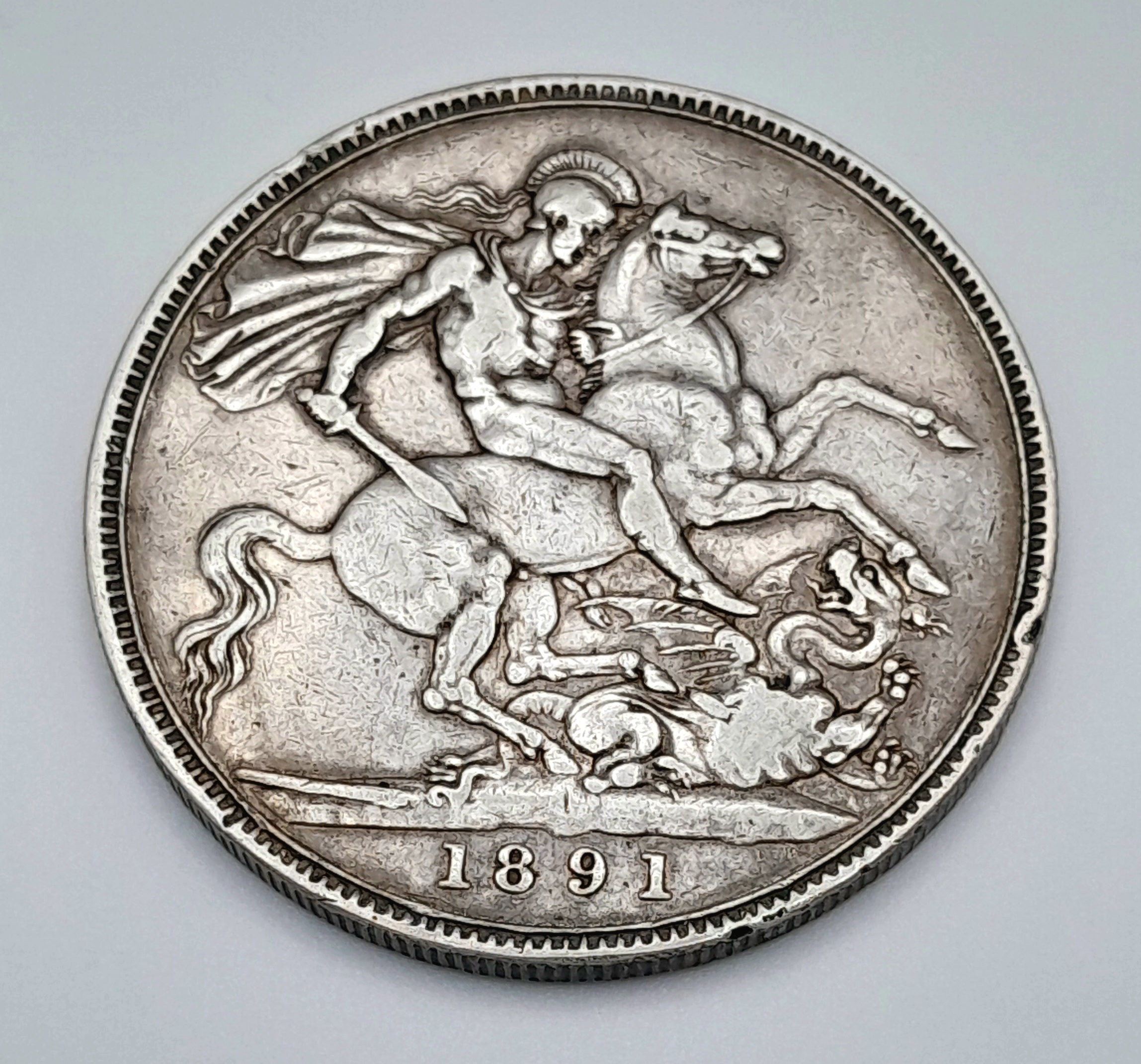An 1891 Queen Victoria Silver Crown Coin. Good definition.
