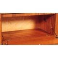 British Modern Design - A mid 20th century circa 1960's / 1960 teak and walnut credenza sideboard. The sideboard having a end cupboard doors opening to reveal cupboard interior flanking a central walnut section with drawer beneath. Raised on tapering supports. Measures approx. 80cm x 183cm x 43cm.