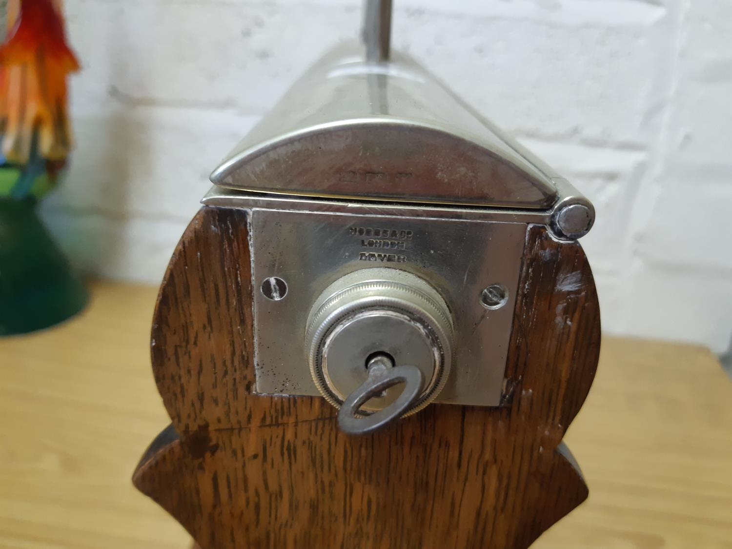 Comes with key but lock not working correctly. Oak in good condition with no signs of repairs