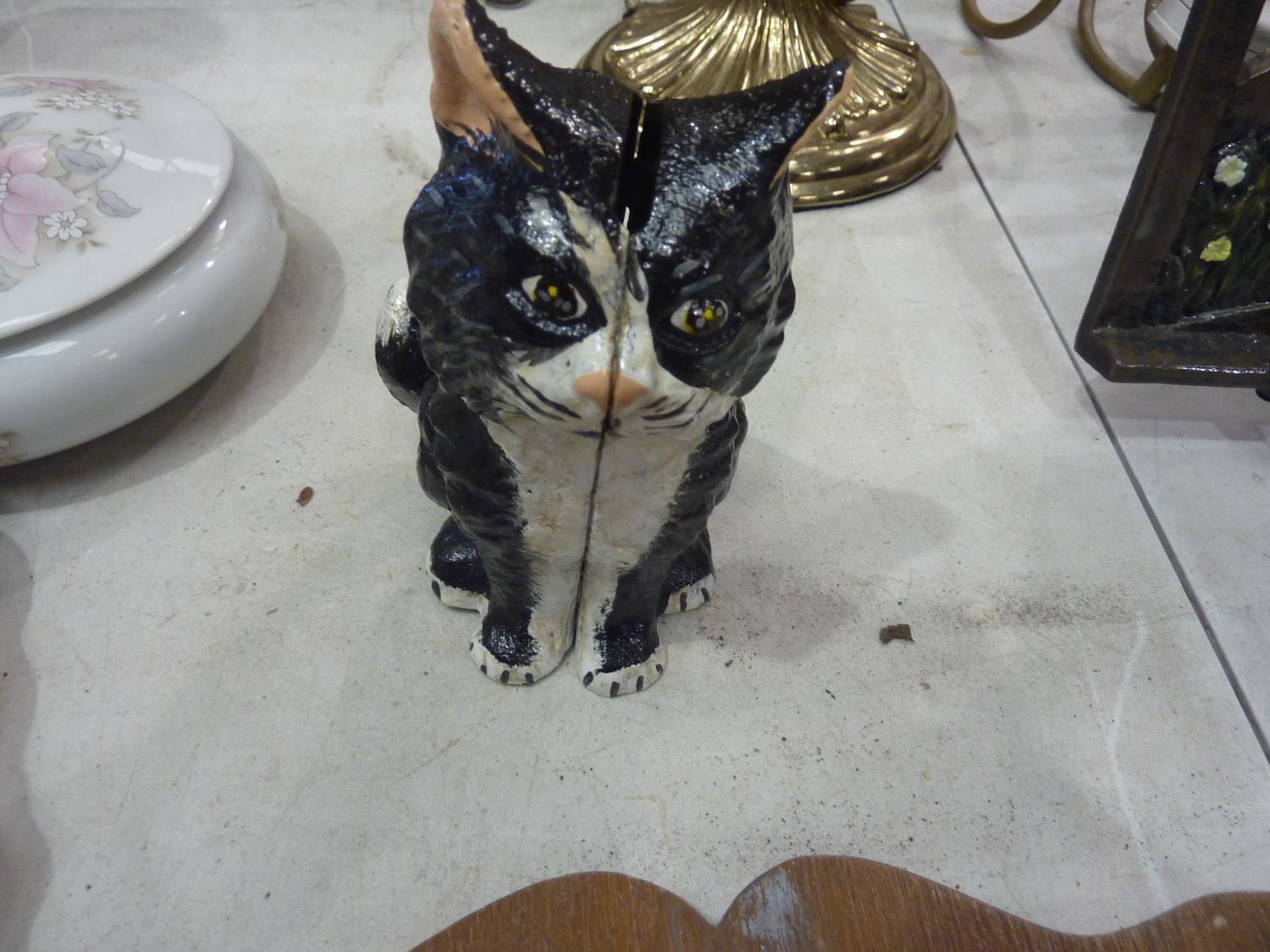 Cast iron sitting cat moneybox, H: 12 cm. UK P&P Group 1 (£16+VAT for the first lot and £2+VAT for subsequent lots)