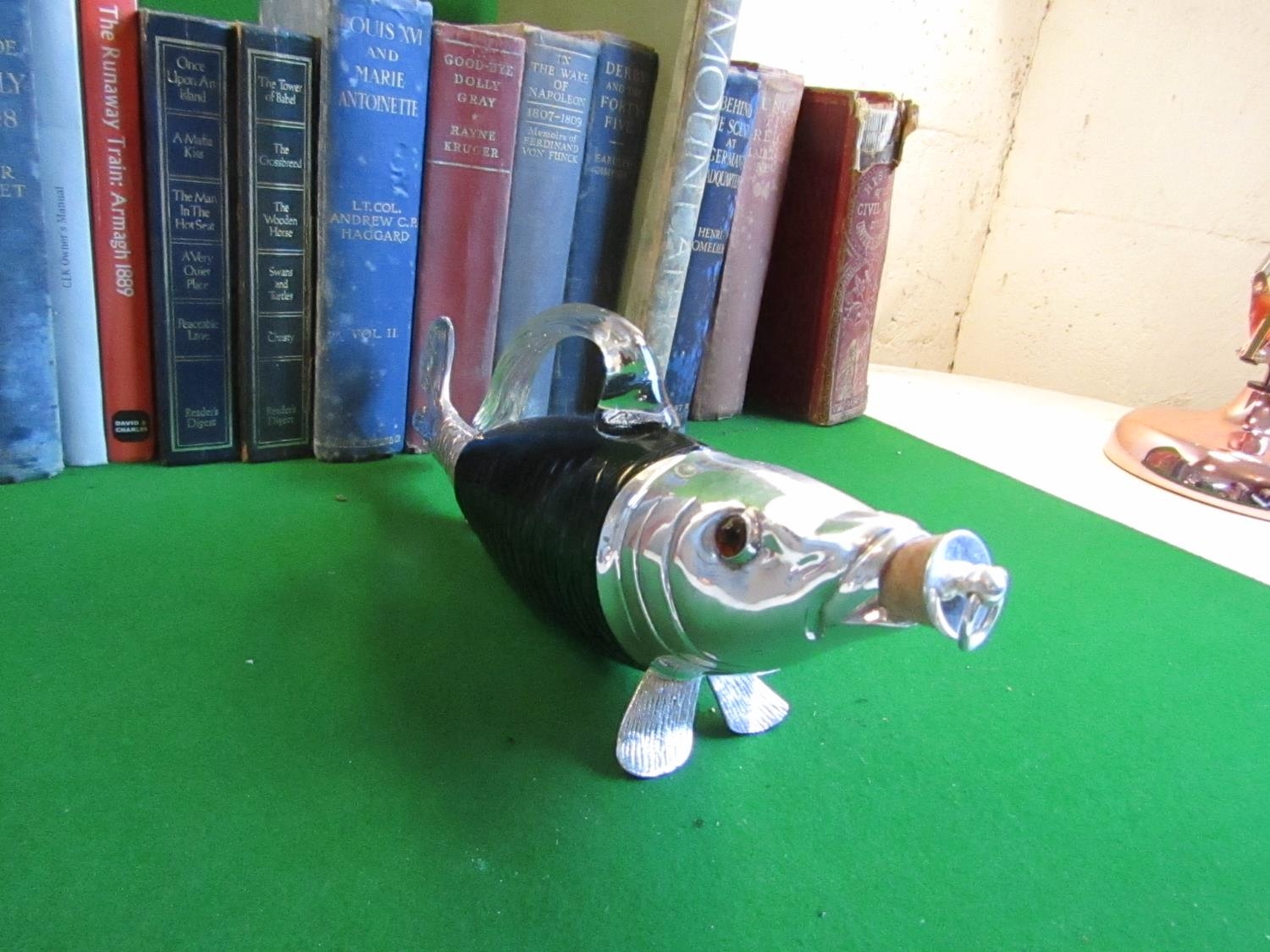 Fish Motif Claret Decanter Unusual Form Silver Plated Good Original Condition with Stopper