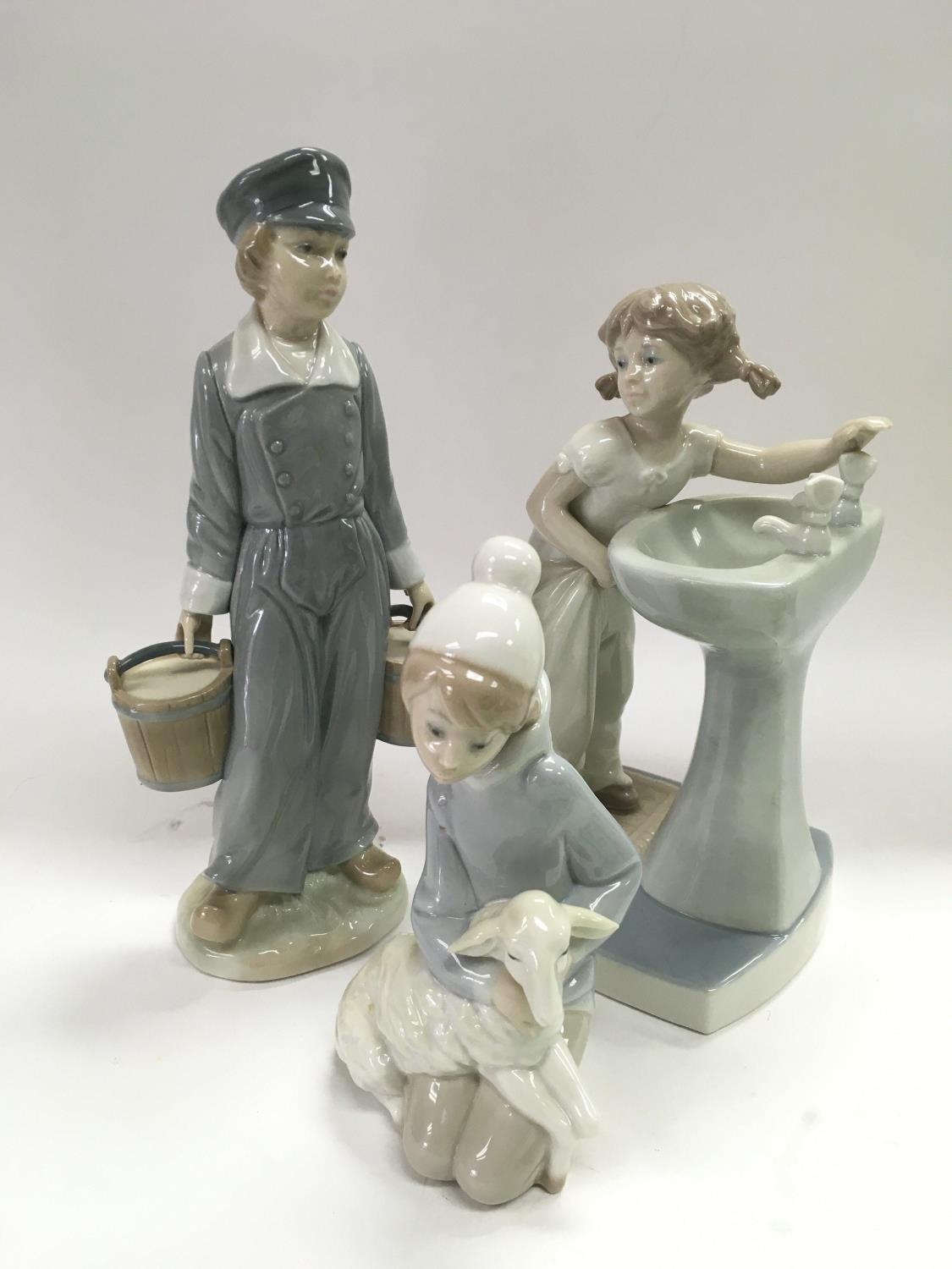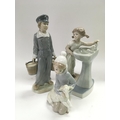 Three Lladro figures of boys and girls, tallest approx 22cm.