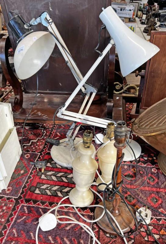 2 ANGLE POISE LAMPS, TWO TURNED HARDSTONE TABLE LAMPS AND ONE OTHER -5-