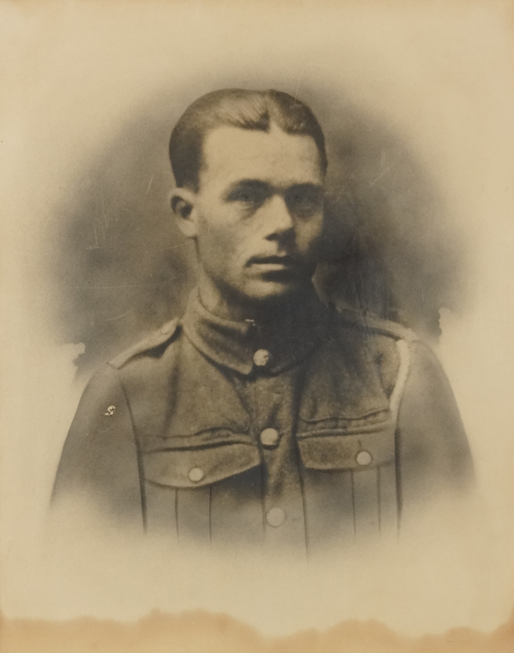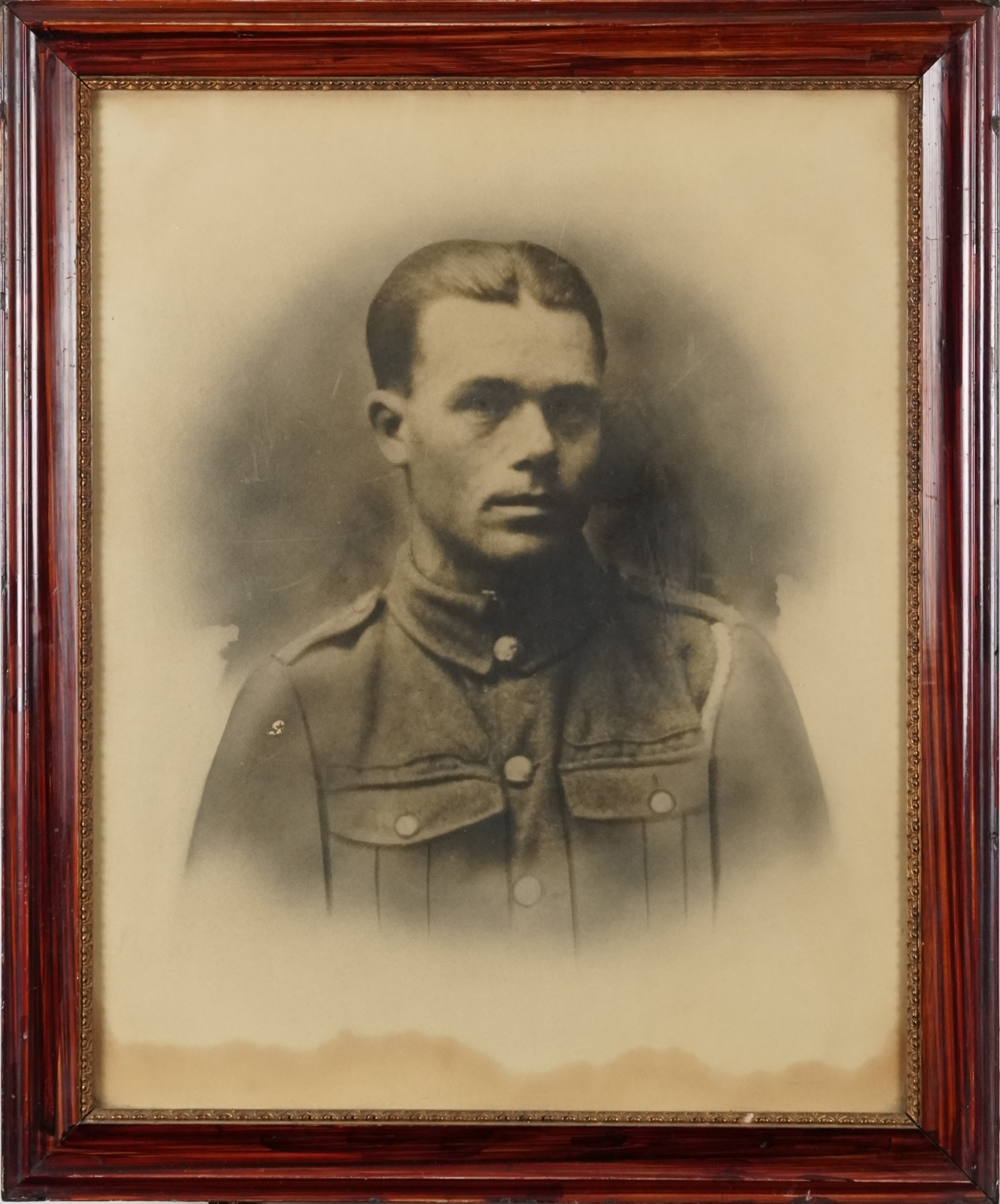 Head and shoulders photographic print of a soldier, framed and glazed, 50cm x 40cm.