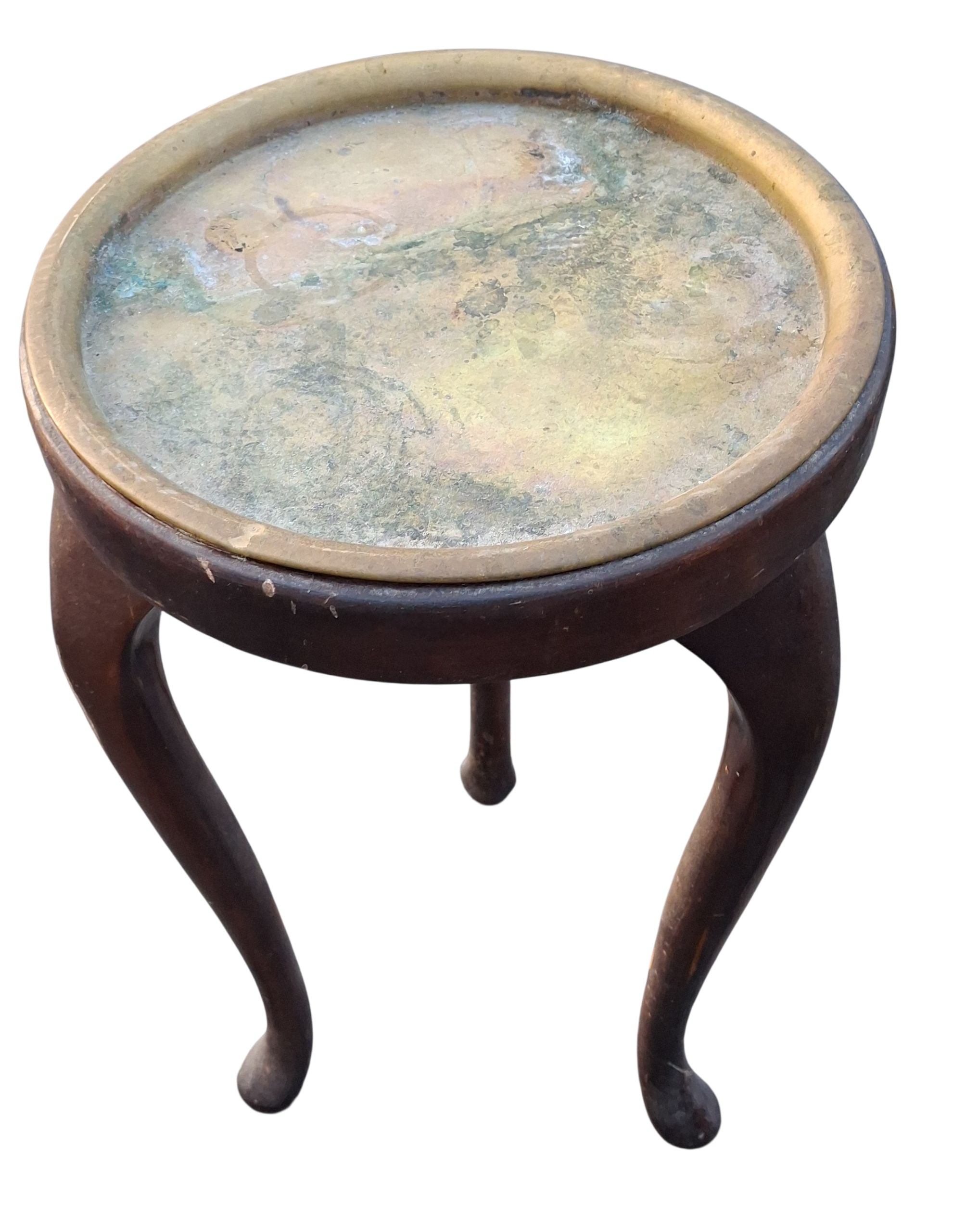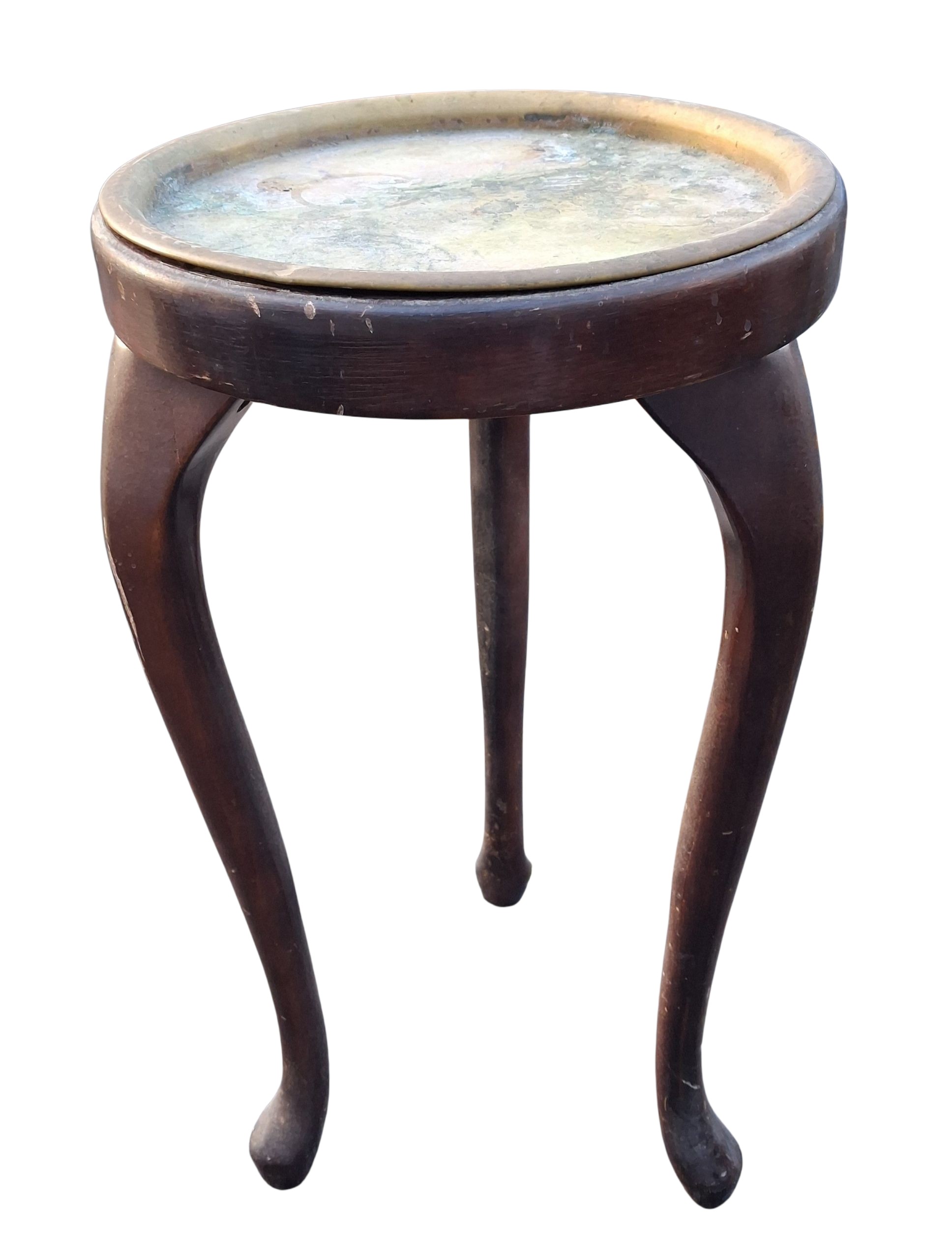 TALL PLANTSTAND ON QUEEN ANN LEG WITH BRASS LIFT OFF TRAY 21x12"