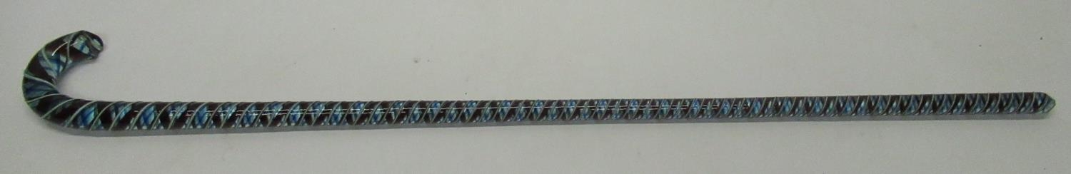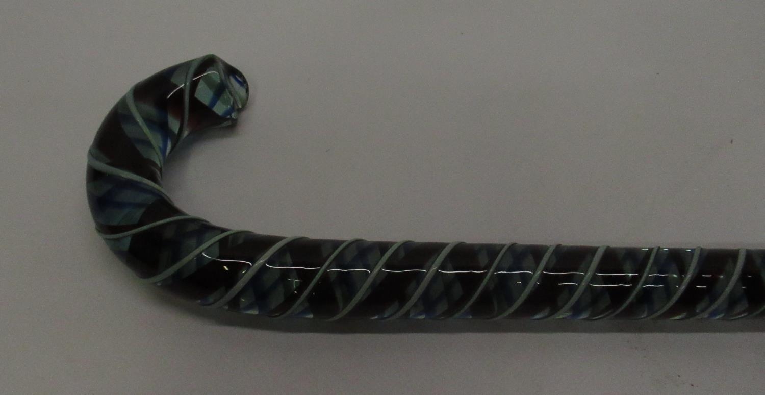 Victorian Nailsea clear glass walking cane, decorated with spiral bands of red, white and blue L90cm