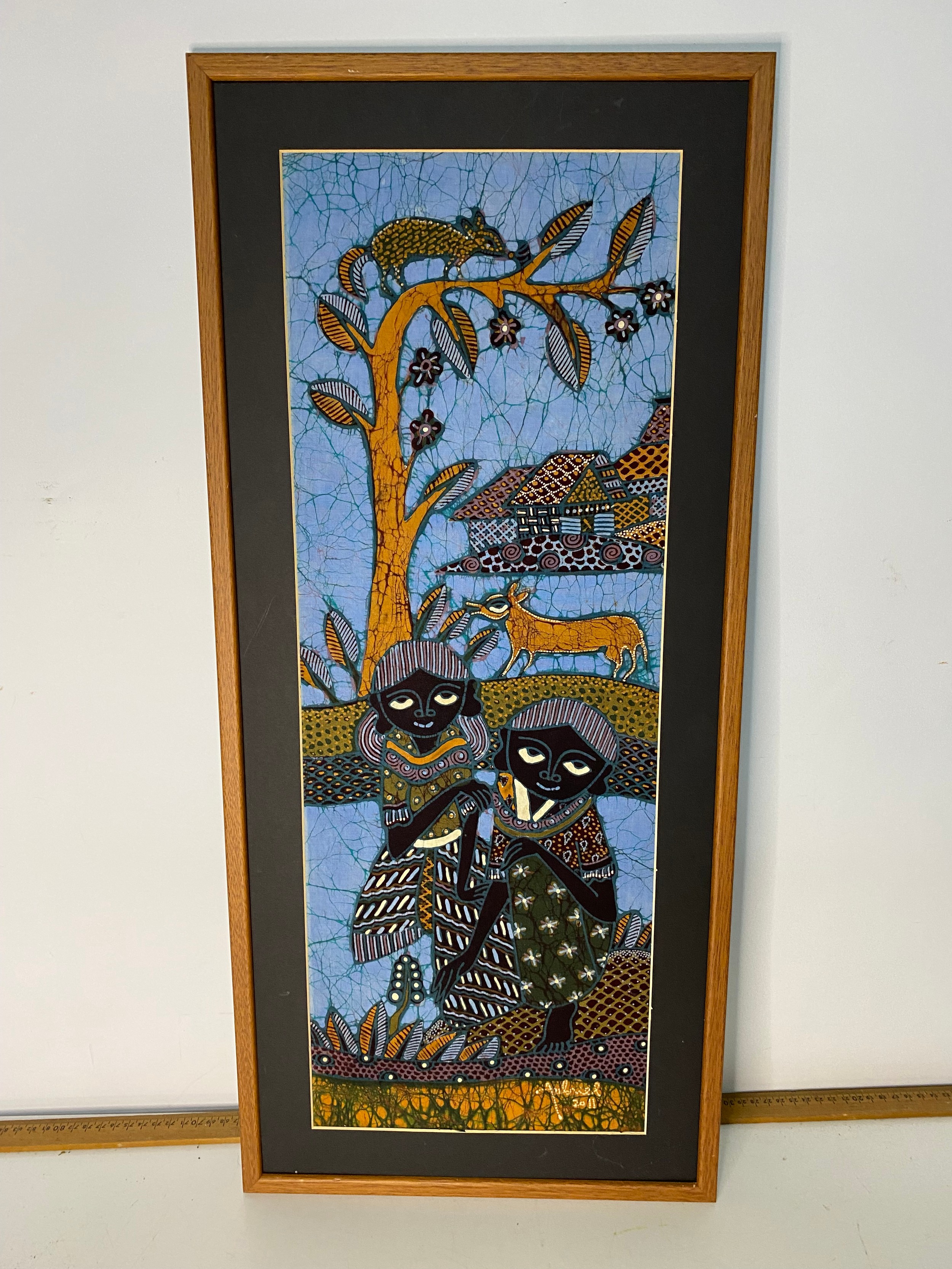 Batik art painting "Village People" by Jabriel measuring 72 x 33 cms