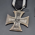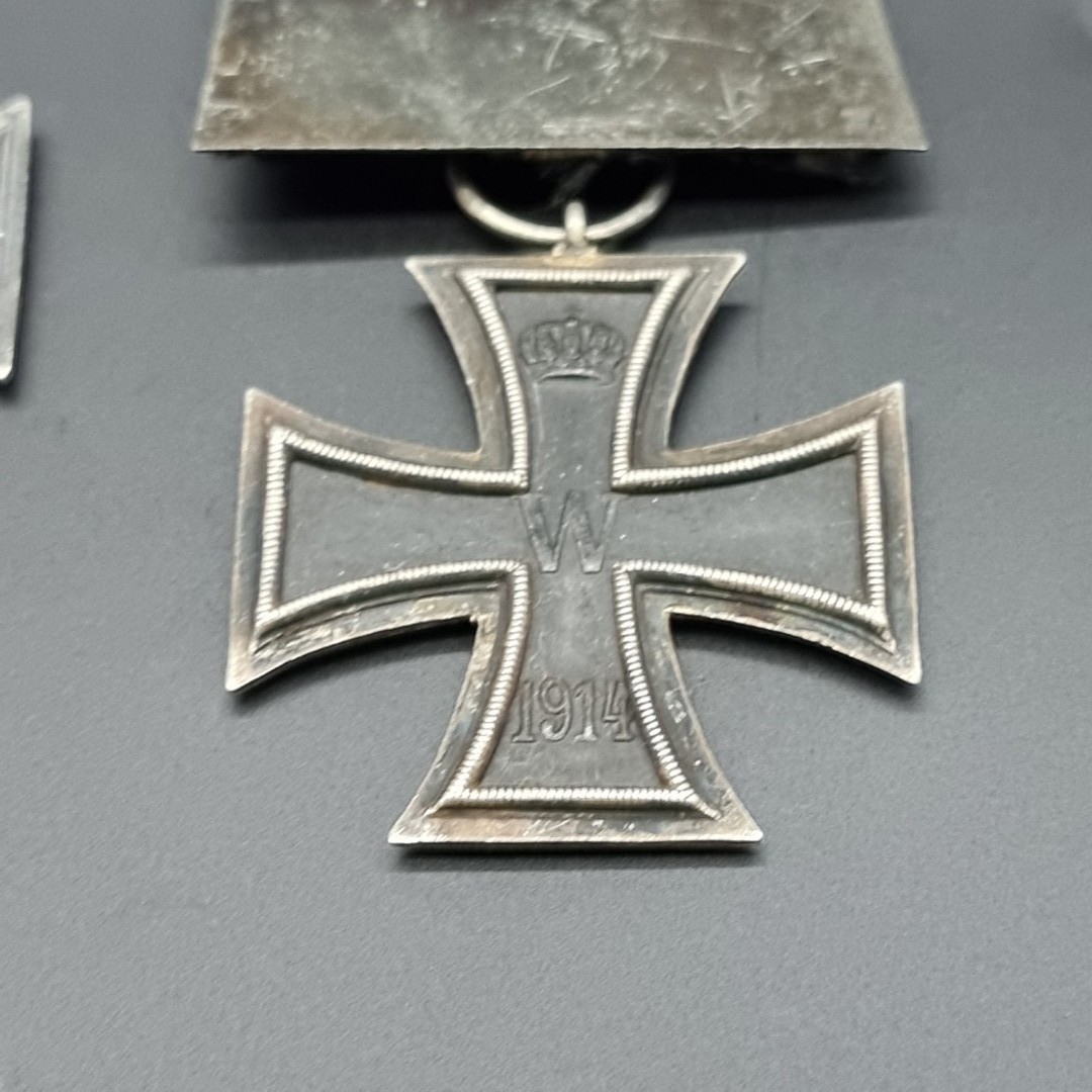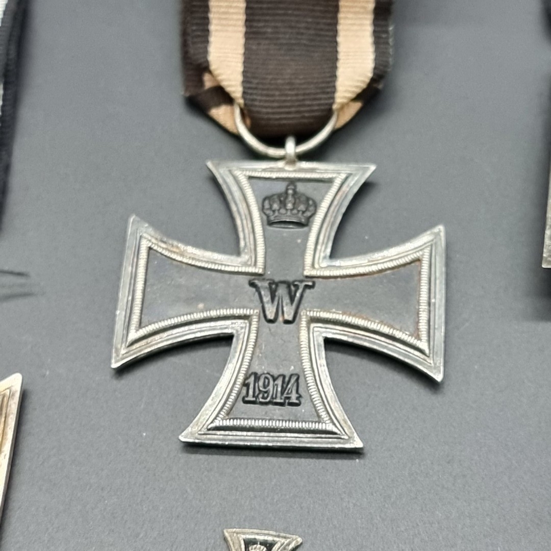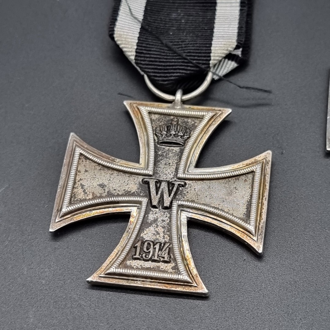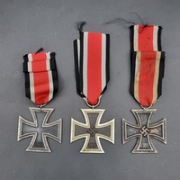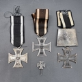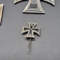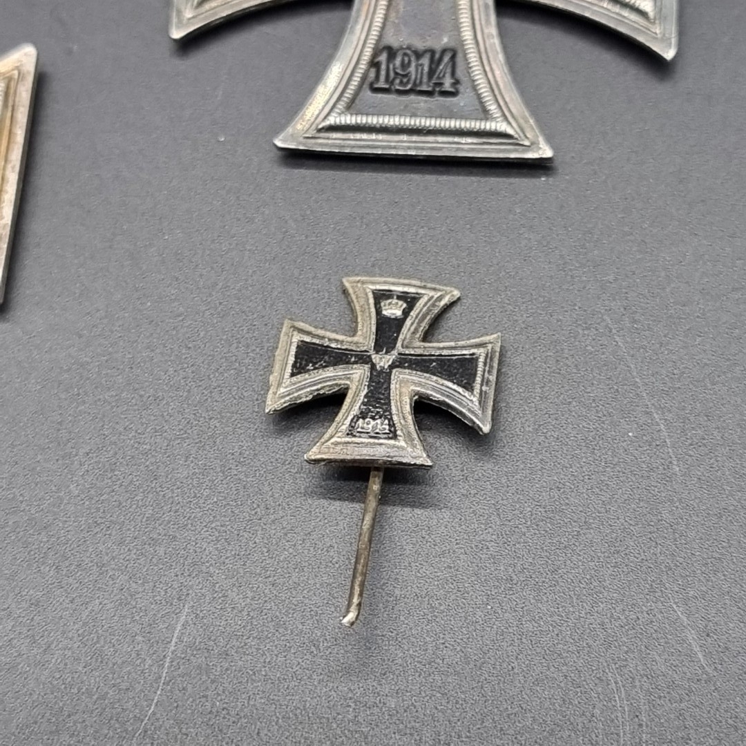Three WWI German Iron Crosses 2nd class; together with a small Iron Cross pin. (4)