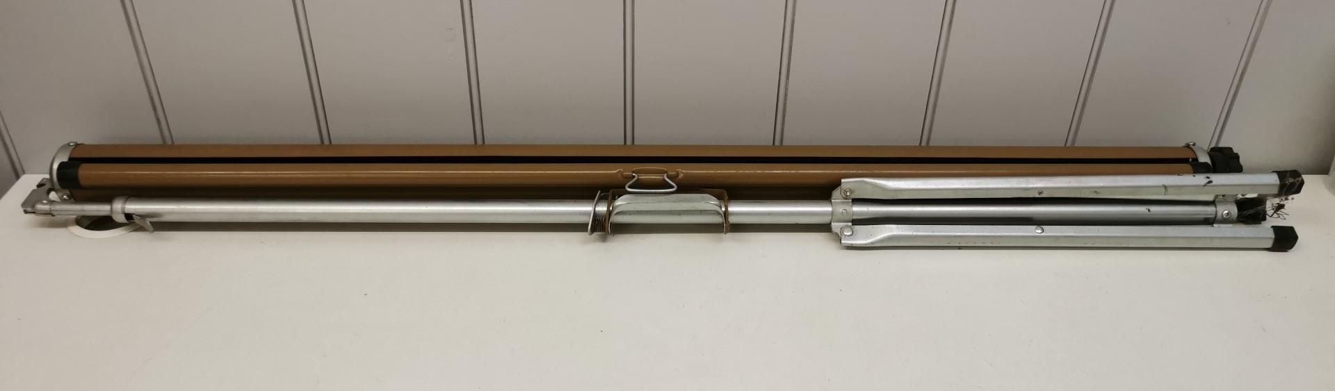 A vintage, portable projector screen. Height 118cm.