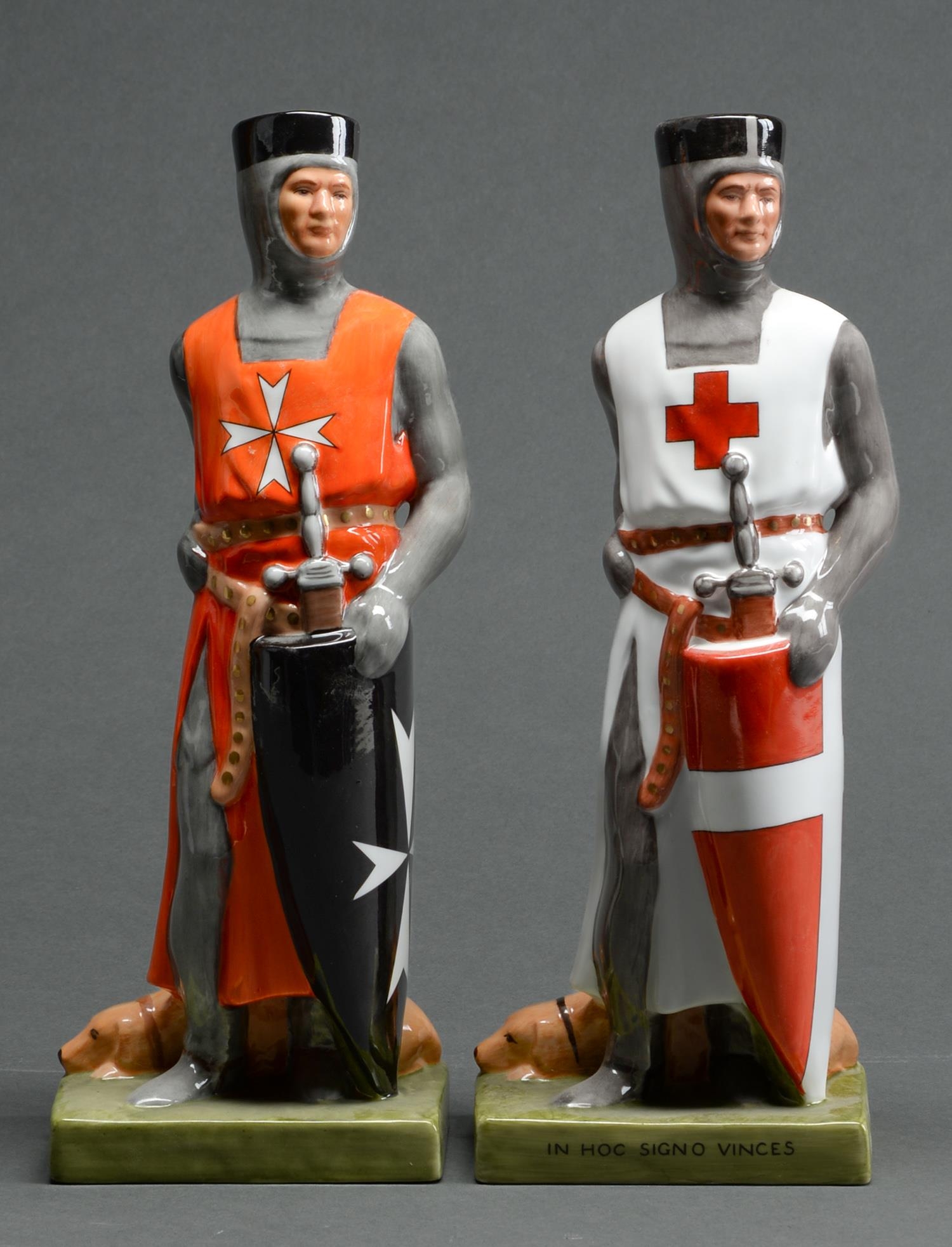 Two Staffordshire bone china statuettes of knights, late 20th c, 32cm h