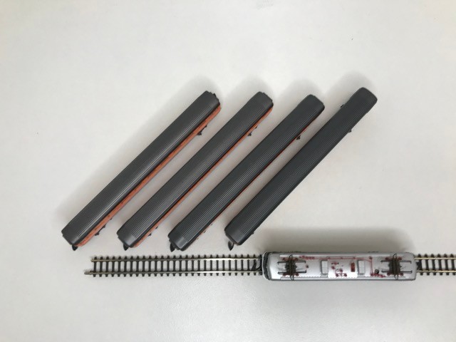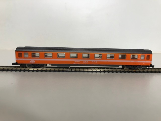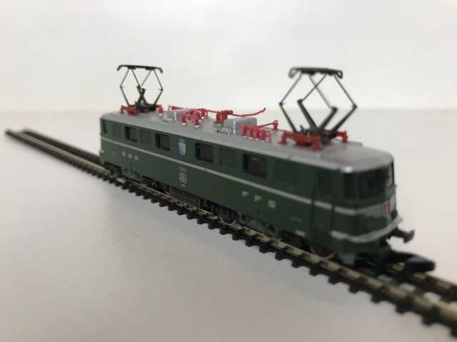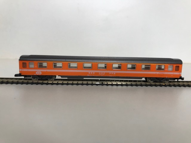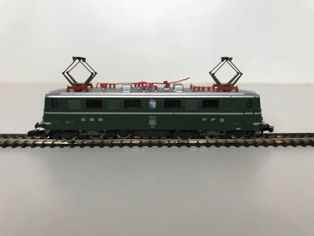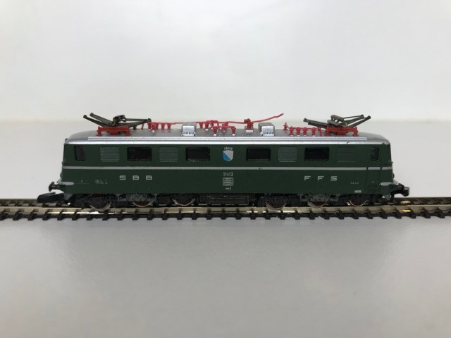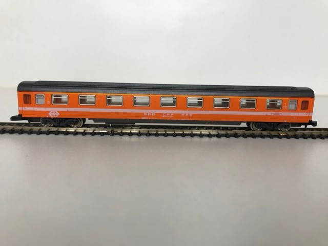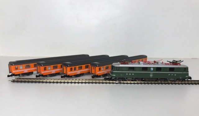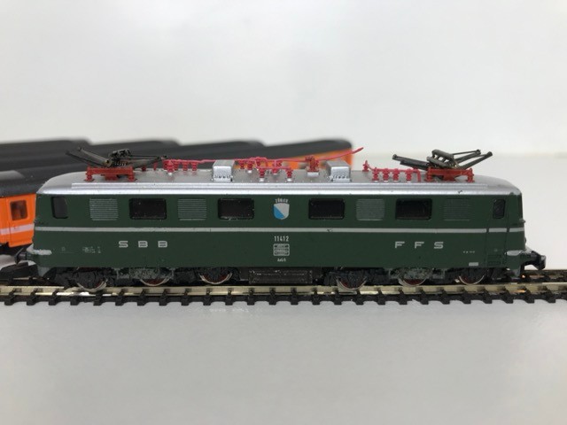 Z Gauge/Scale Marklin mini-club 8850 SBB CFF FFS Swiss Class Ae 6/6 #11412 Electric Locomotive and Rake of Four Orange/White/Grey livery SBB CFF FFS Coaches/Cars, Bi-directional Lights, Unboxed, Tested Runners - Loco Good, Coaches Very Good (5) 90g