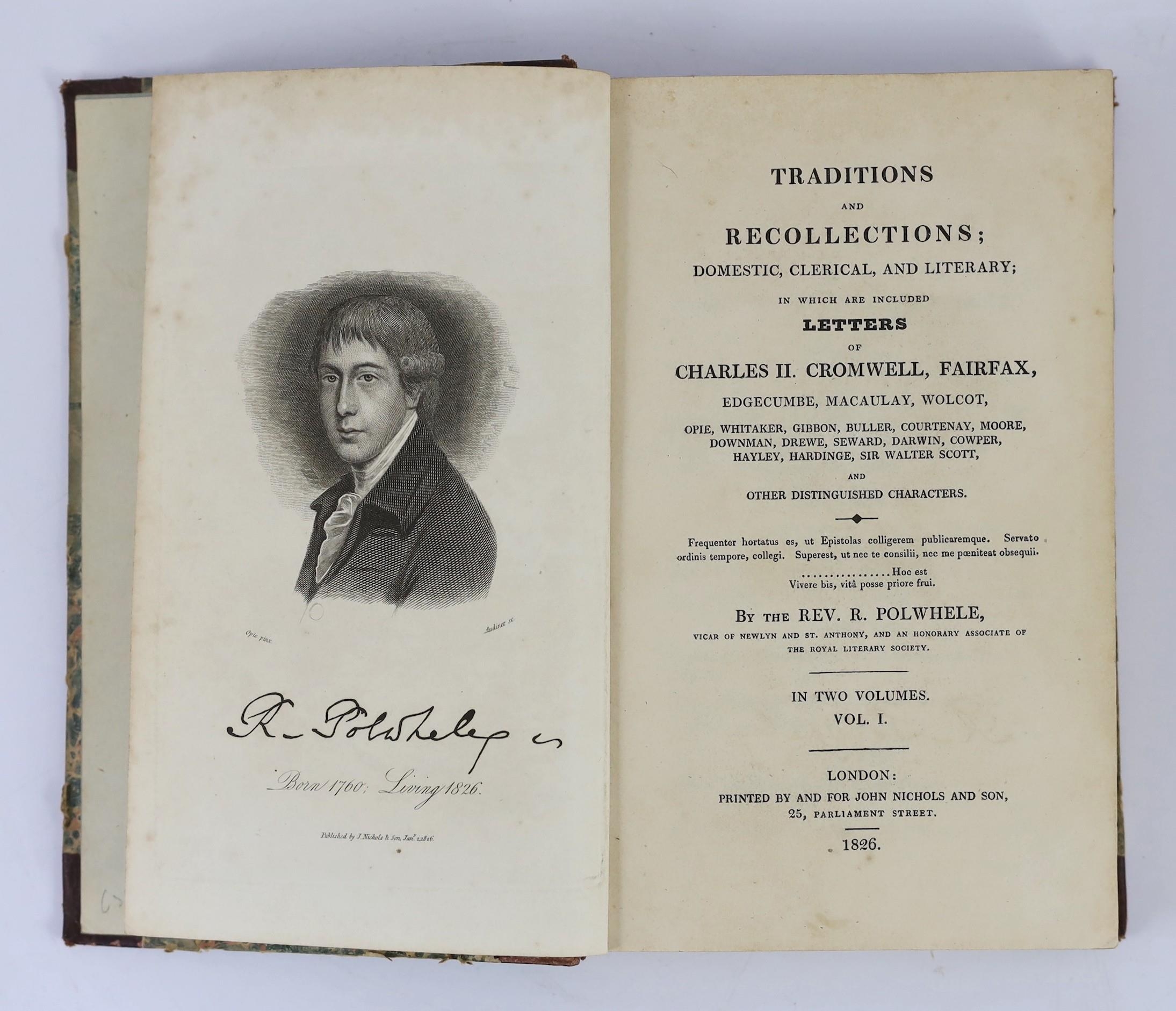 ° ° CORNWALL: Polwhele, Rev. R. - Traditions and Recollections; domestic, clerical, and literary ... 2 vols. portrait frontis & 5 folded plates; contemp. gilt maroon half morocco and marbled boards, 1826. (2)