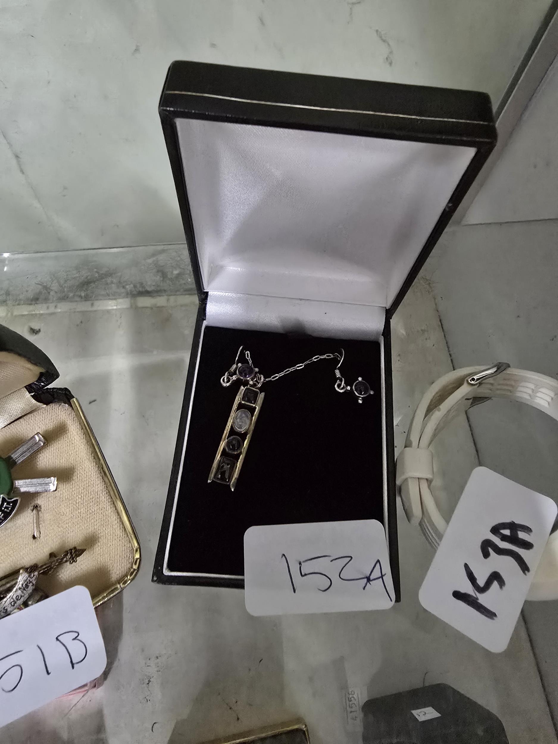 925 SILVER NECKLACE 7 EARRINGS MULTI GEMSTONE