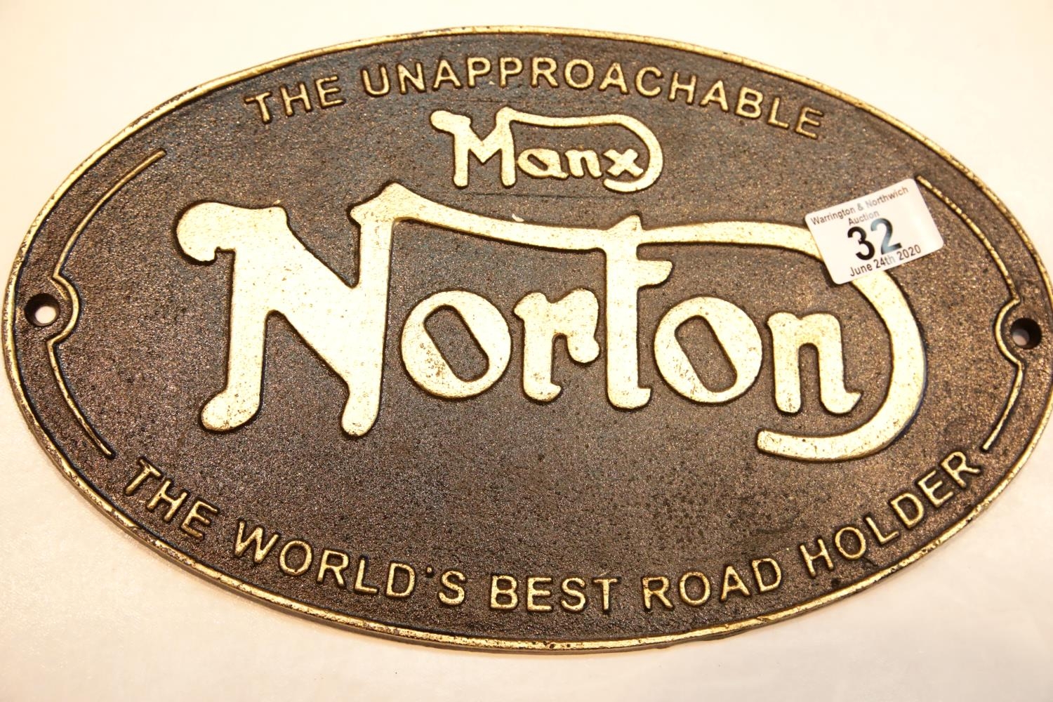 Cast iron Manx Norton sign, D: 24 cm. P&P Group 2 (£18+VAT for the first lot and £2+VAT for subsequent lots)