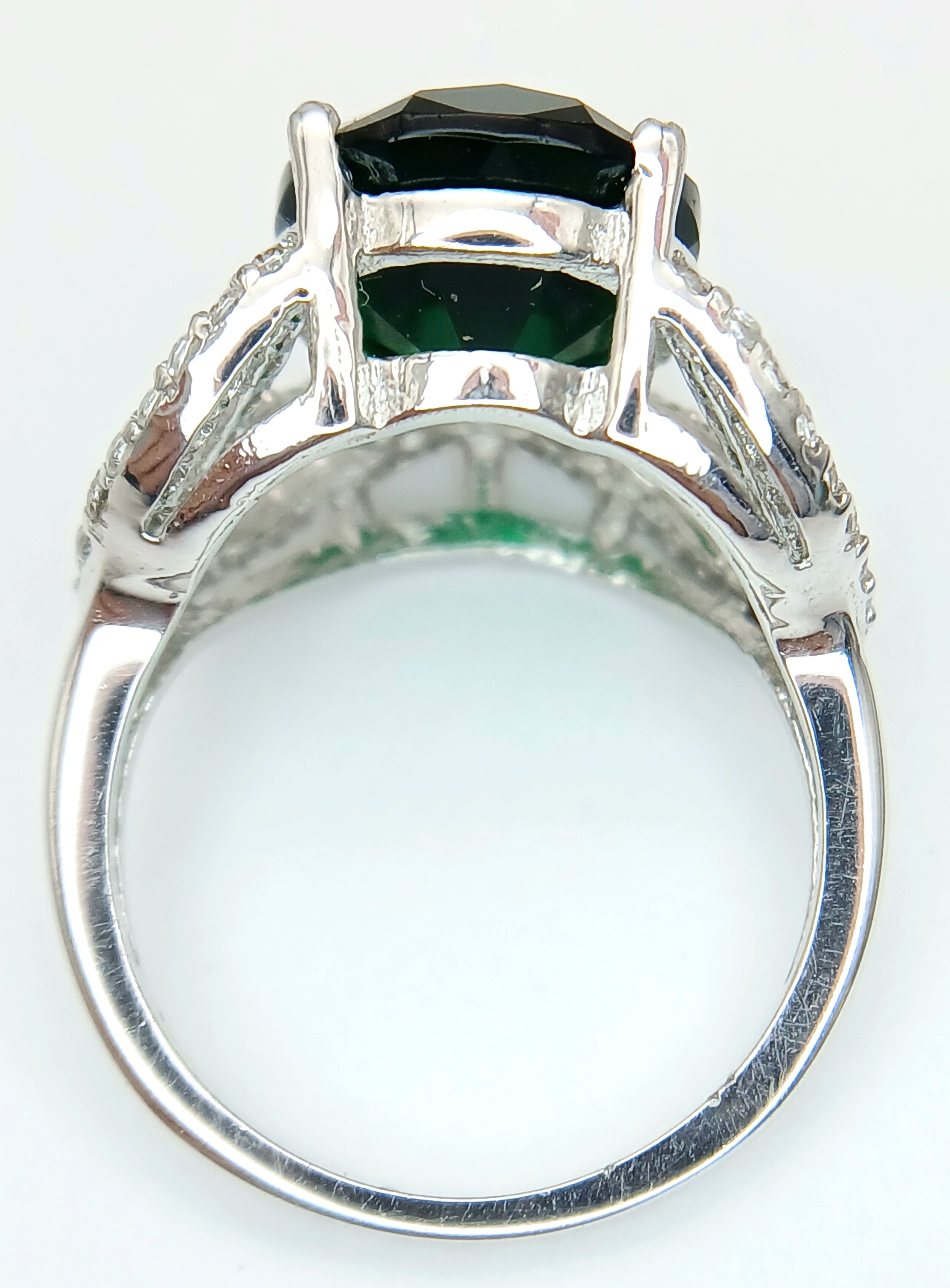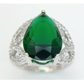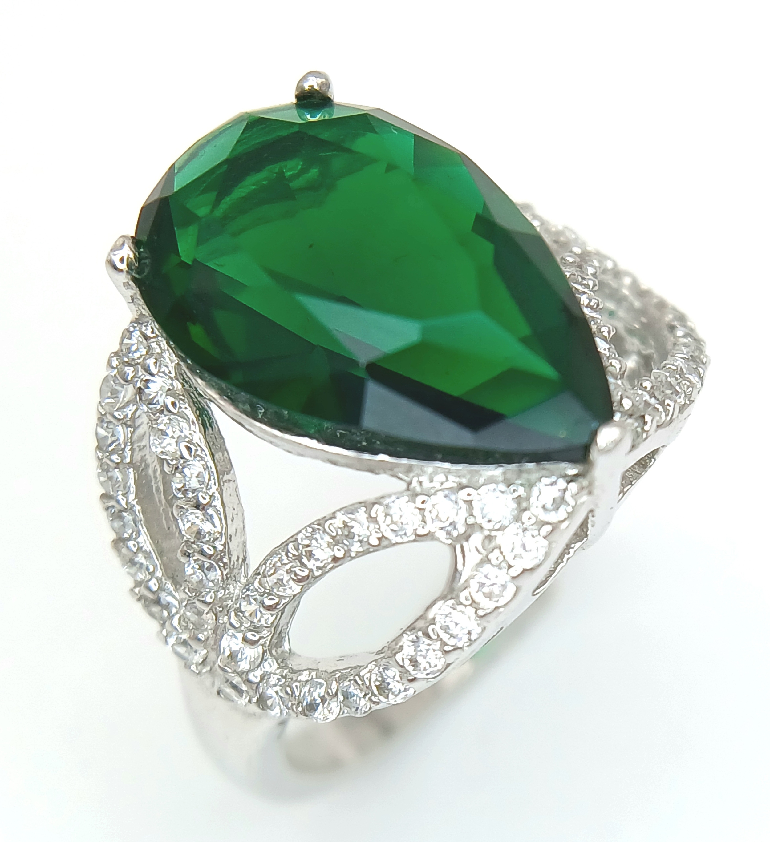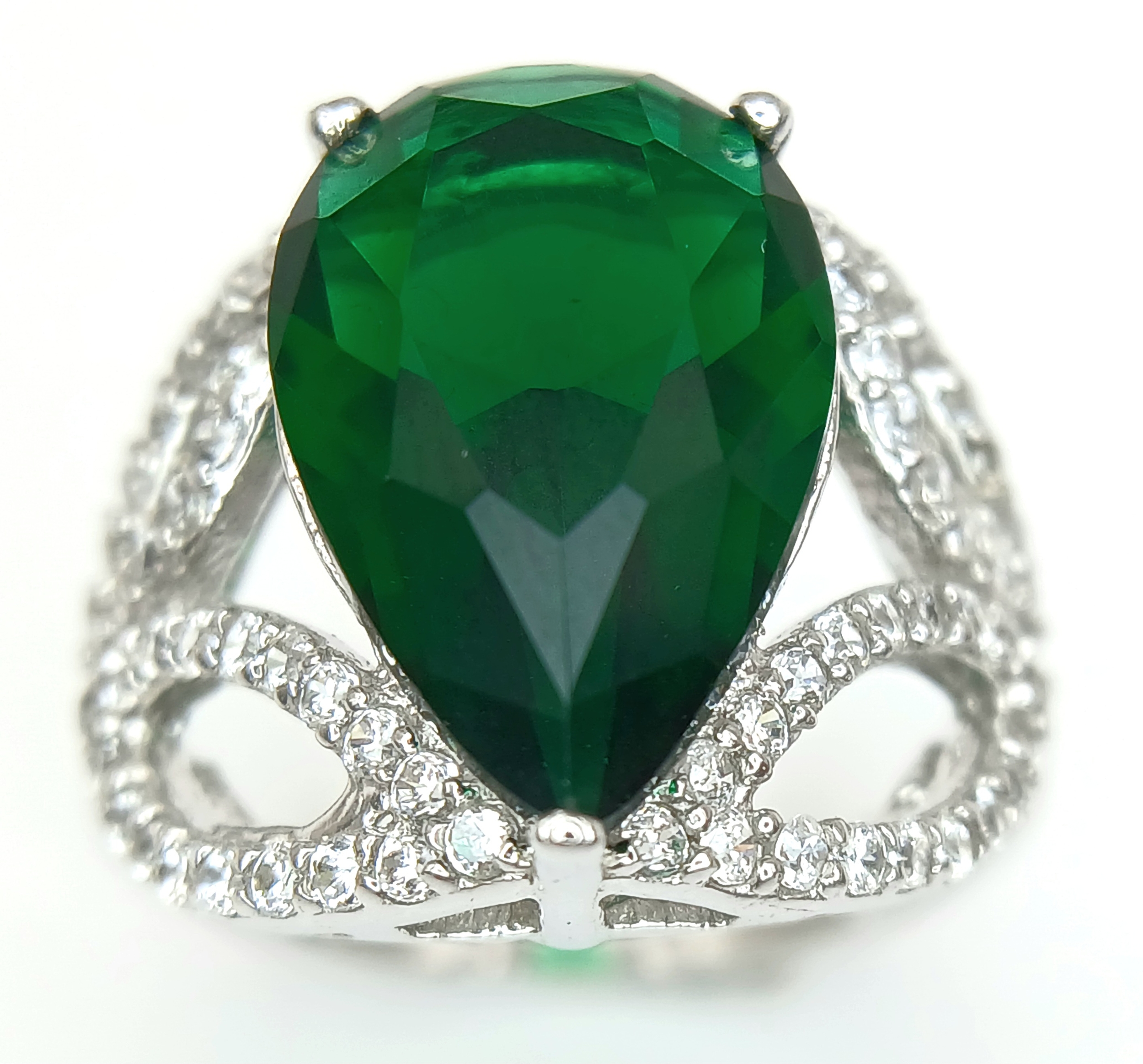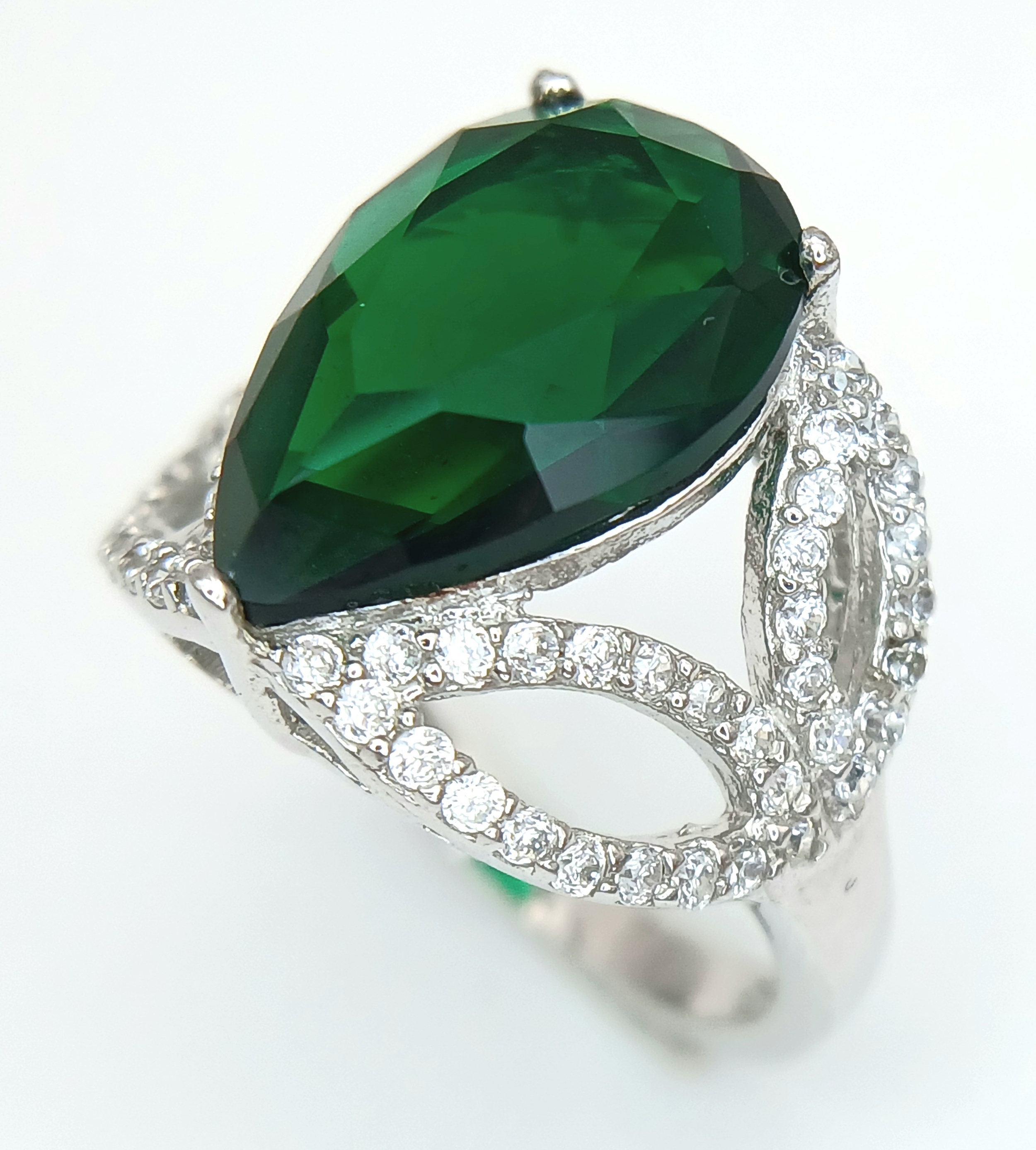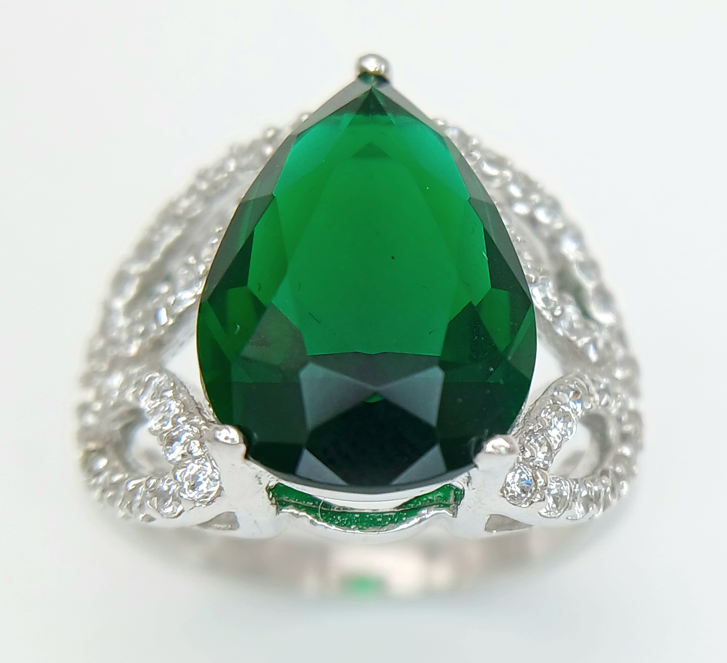 A STERLING SILVER GREEN STONE SET PEAR SHAPED RING 4.5G SIZE L. Ref: A/S NN 7003