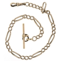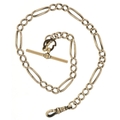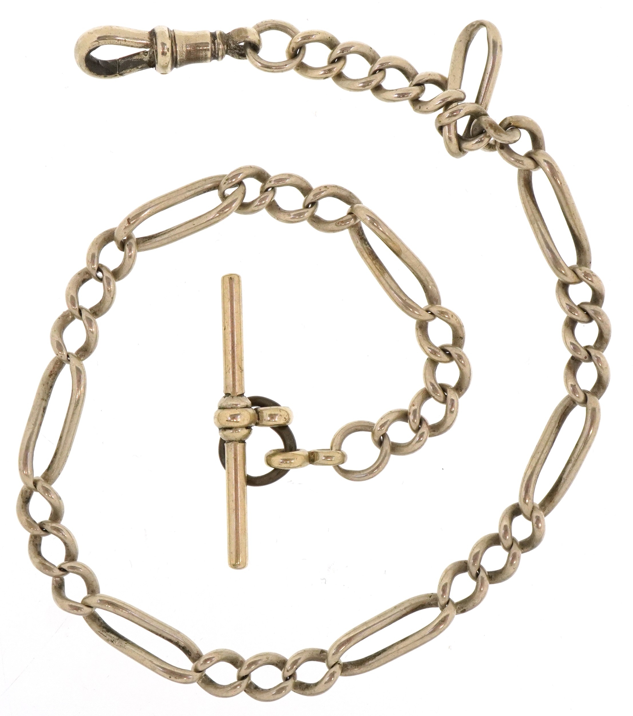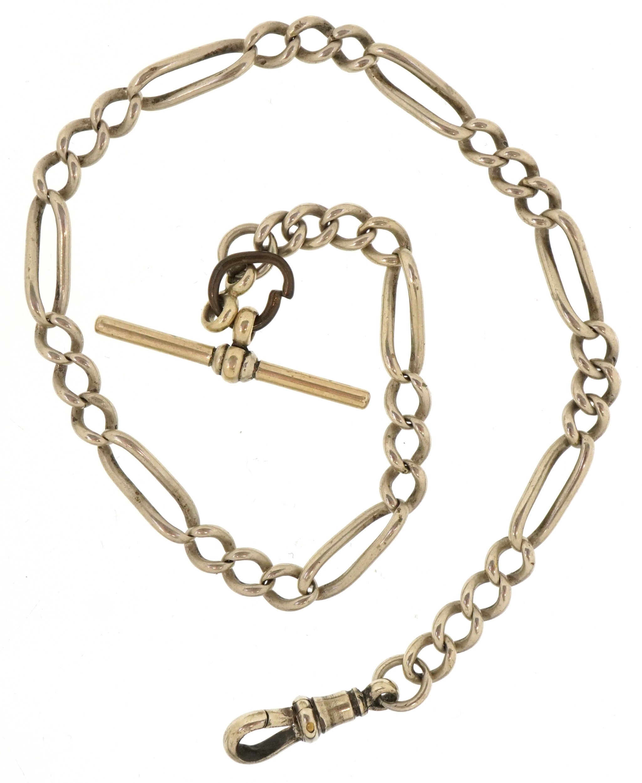 A white metal Figaro link watch chain with T bar and dog clip clasp, 35cm in length, 21.8g.
