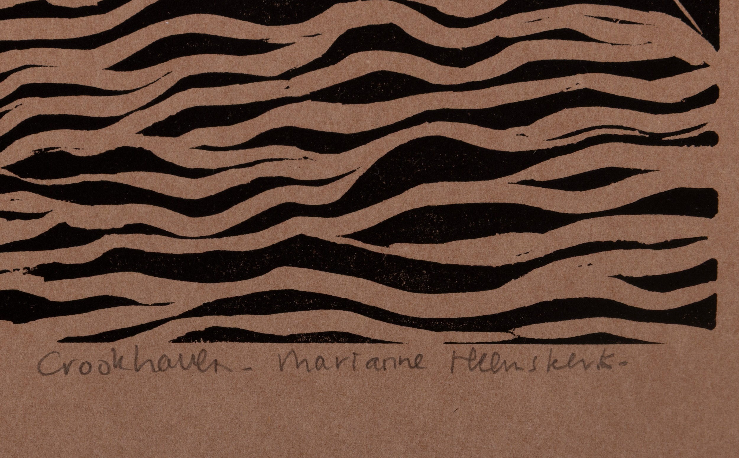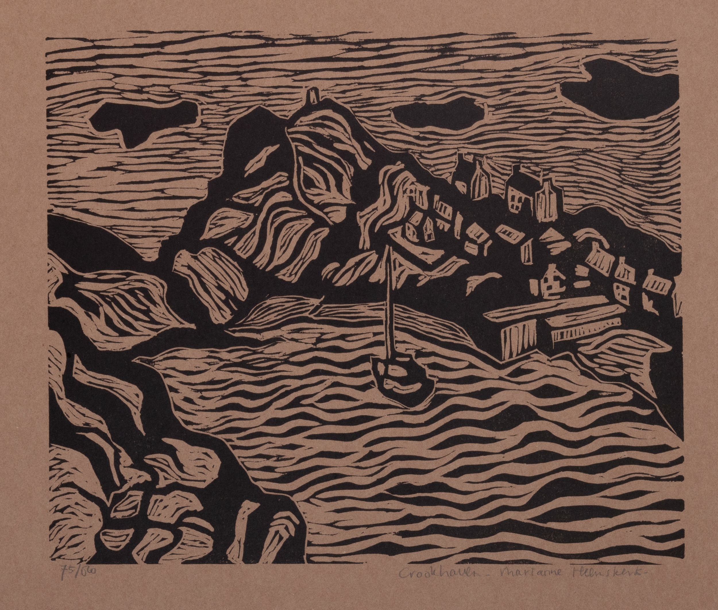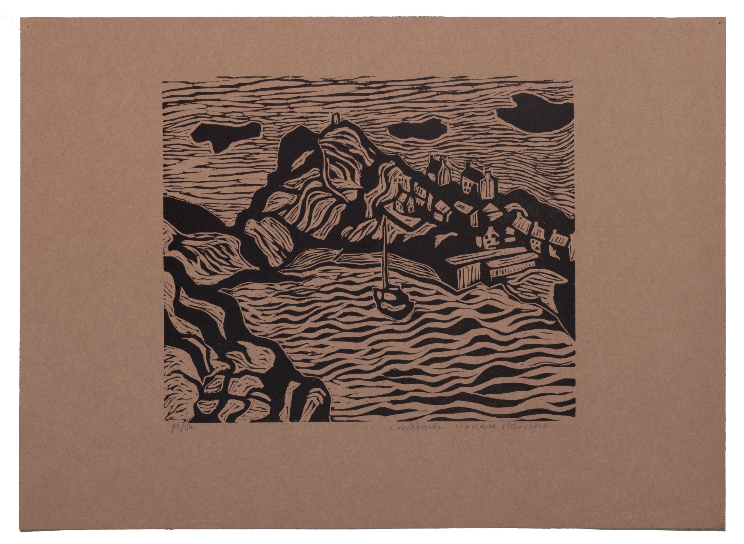 Marianne Heemskerk (20th Century) View of Crookhaven Woodblock print, 25 x 30.5cm Signed, inscribed and numbered 75/500 Unframed Heemskerk was born originally in Holland and came to Dublin in the 60s. She is a founding member of the Project Arts Centre and the Dutch group 'De Ploegh'. Her work can be found in the National Self Portrait Collection at the University of Limerick.