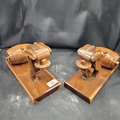 A Pair of Mid-Century Stylized Ecuadorian Wood Folk Art Man Pulling Barrel Bookends