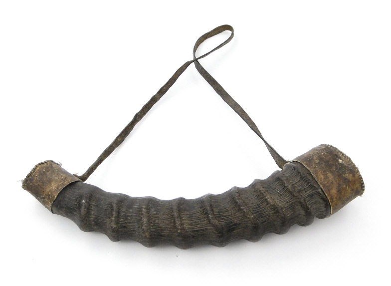 Antelope horn powder flask, 24cm in length