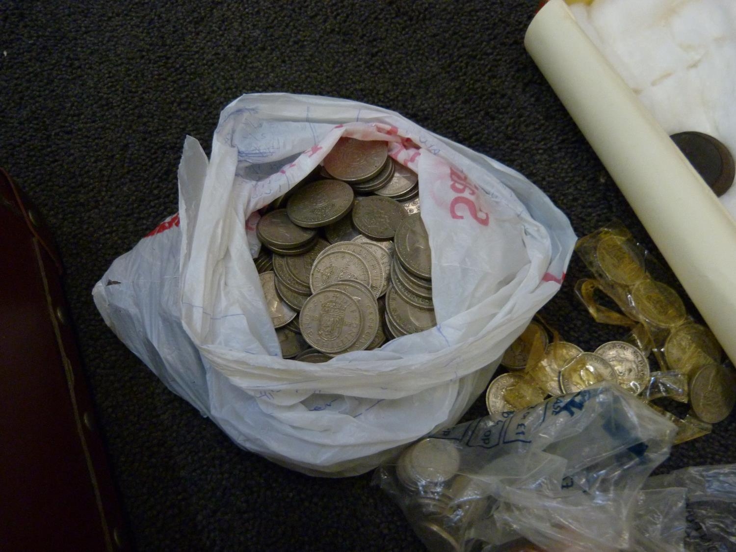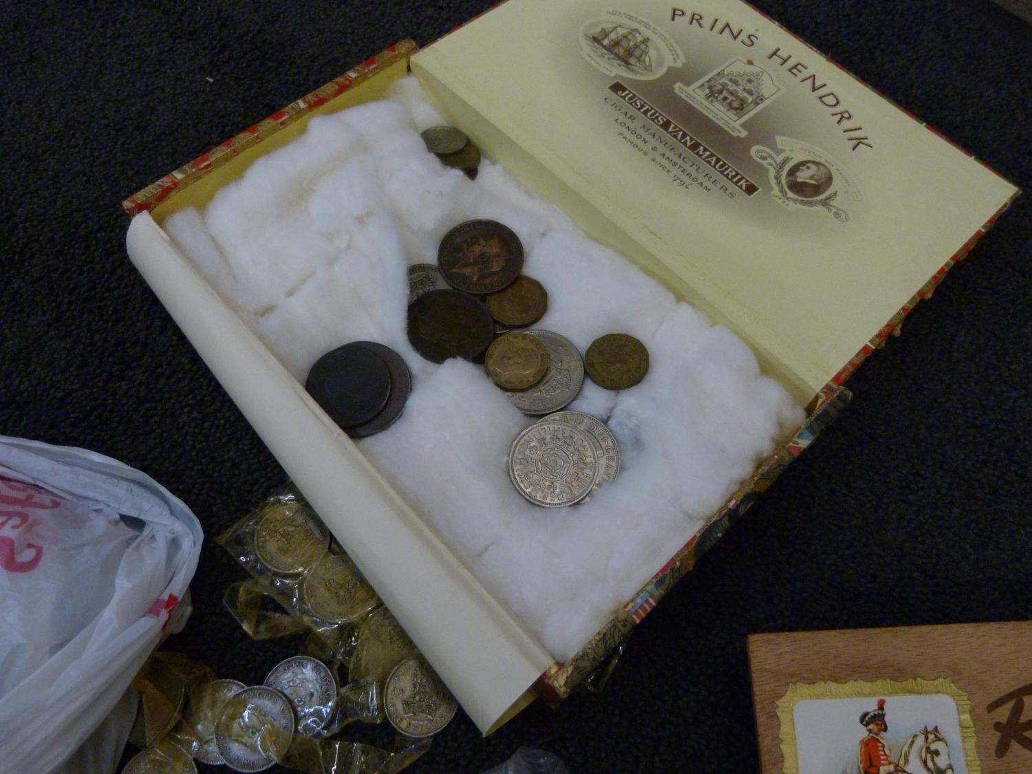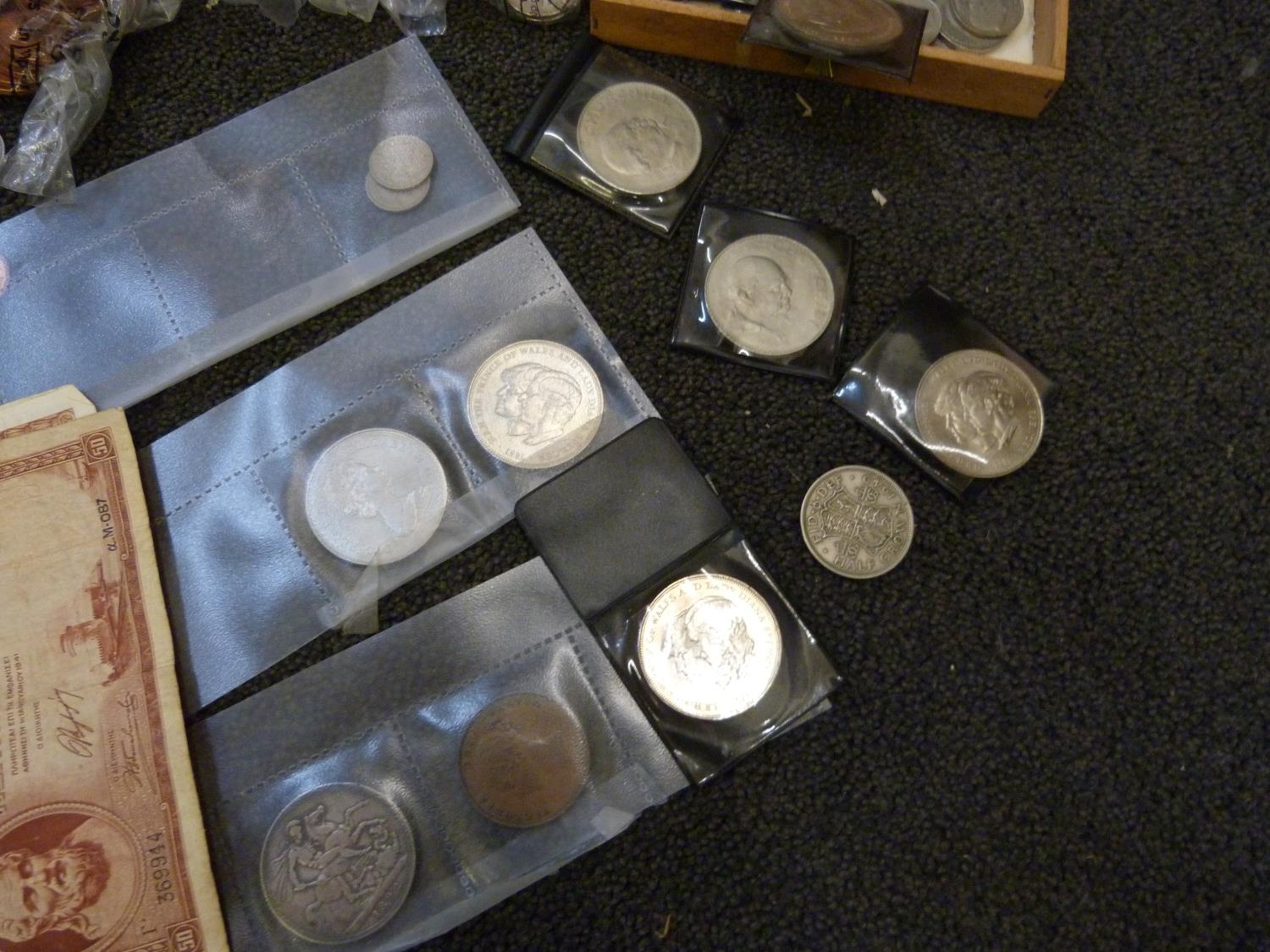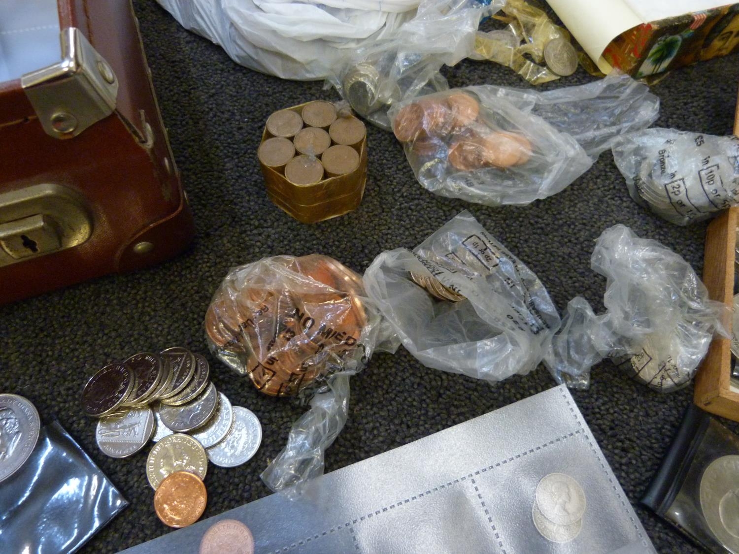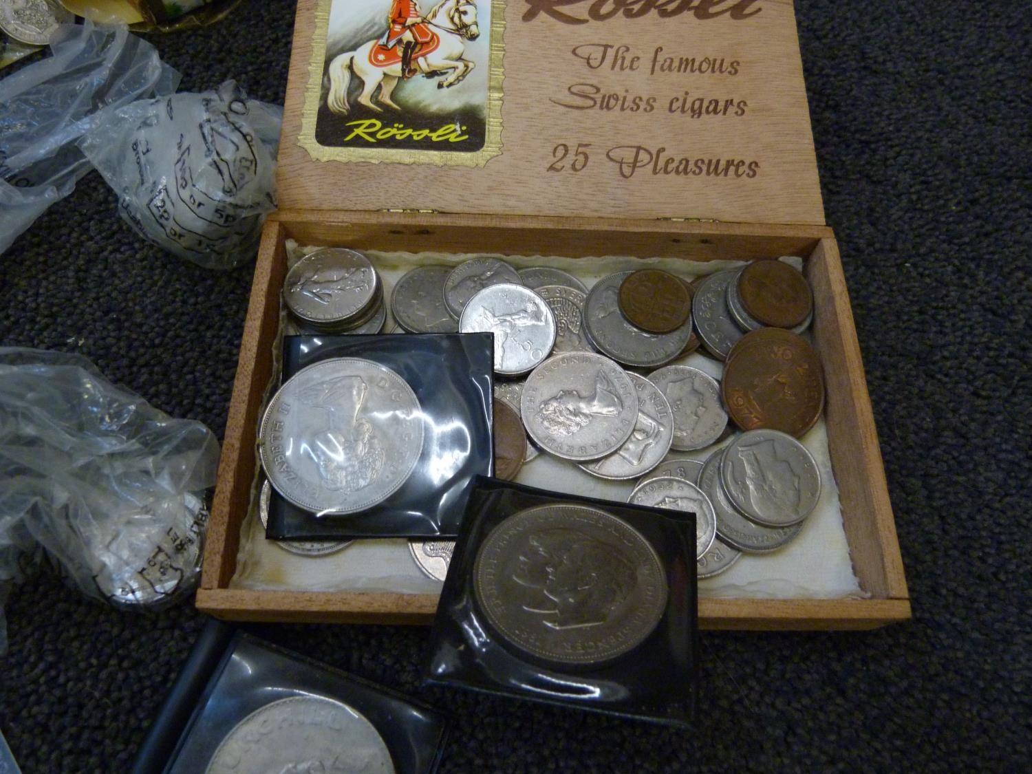 A collection of coins, mainly British including commemorative and a 1997 UK Brilliant Uncirculated Coin Collection, two $1 coins, both 1925 and some bank notes