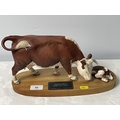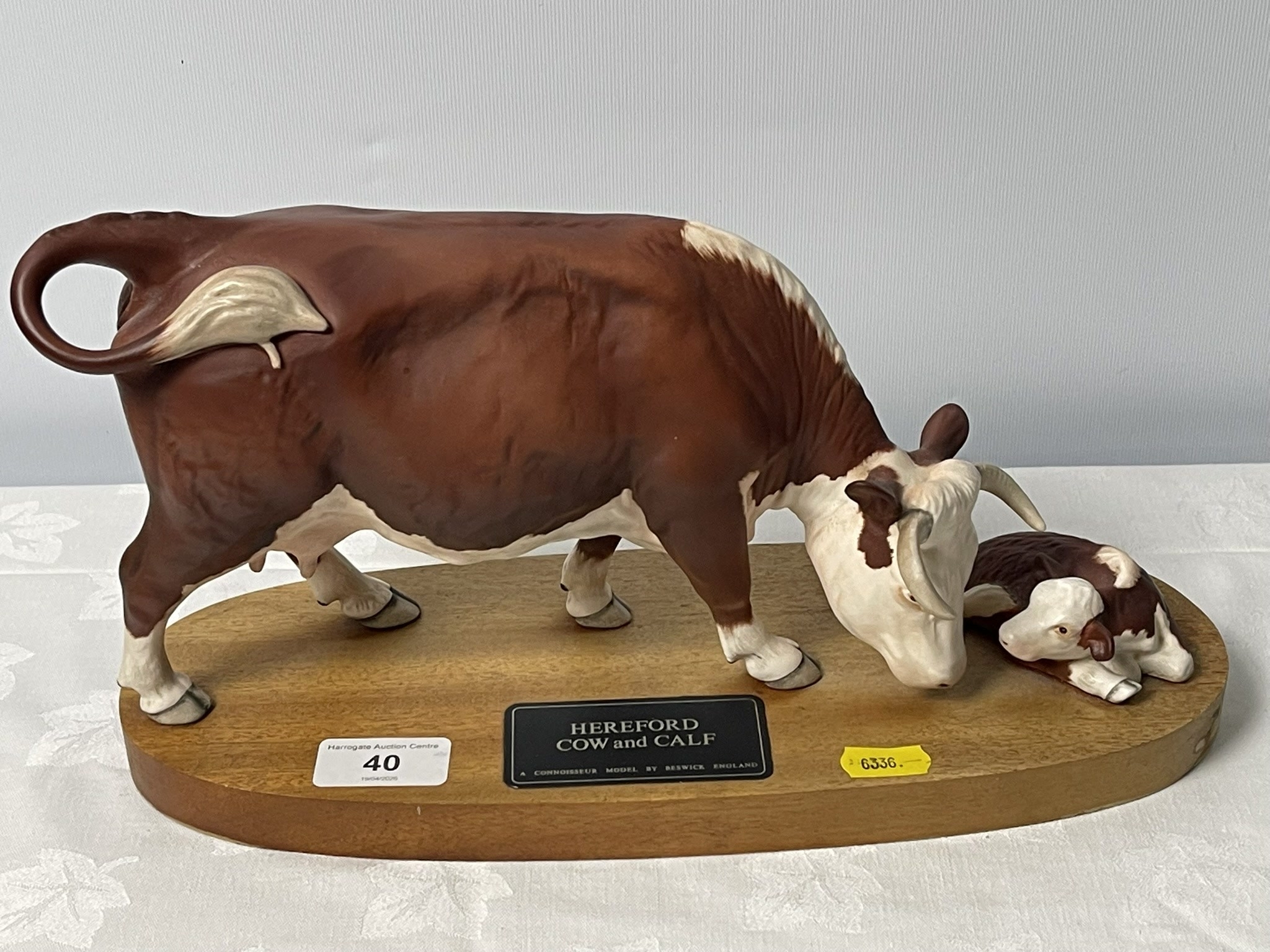 BESWICK "HEREFORD COW AND CALF" ON WOODEN BASE