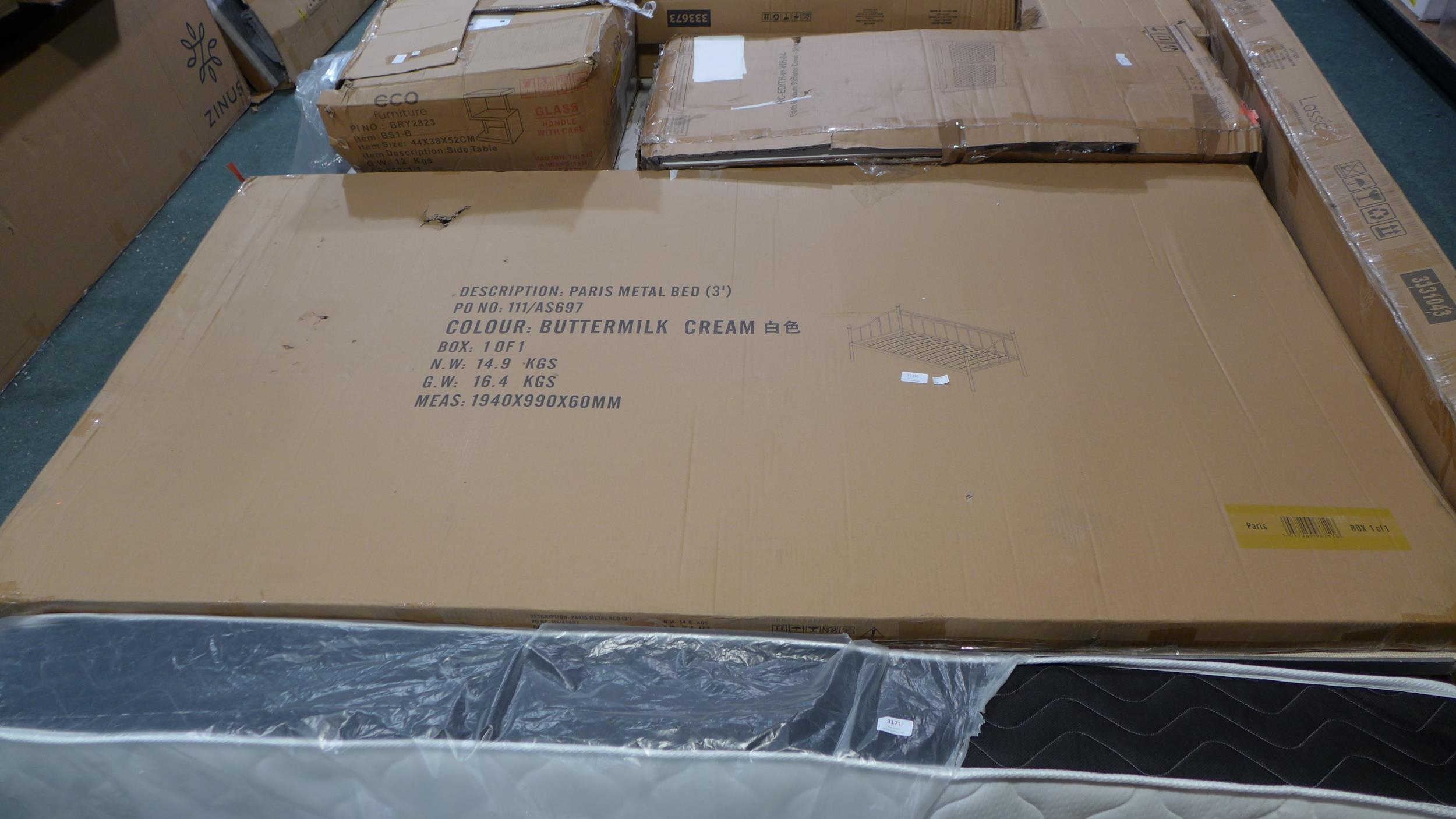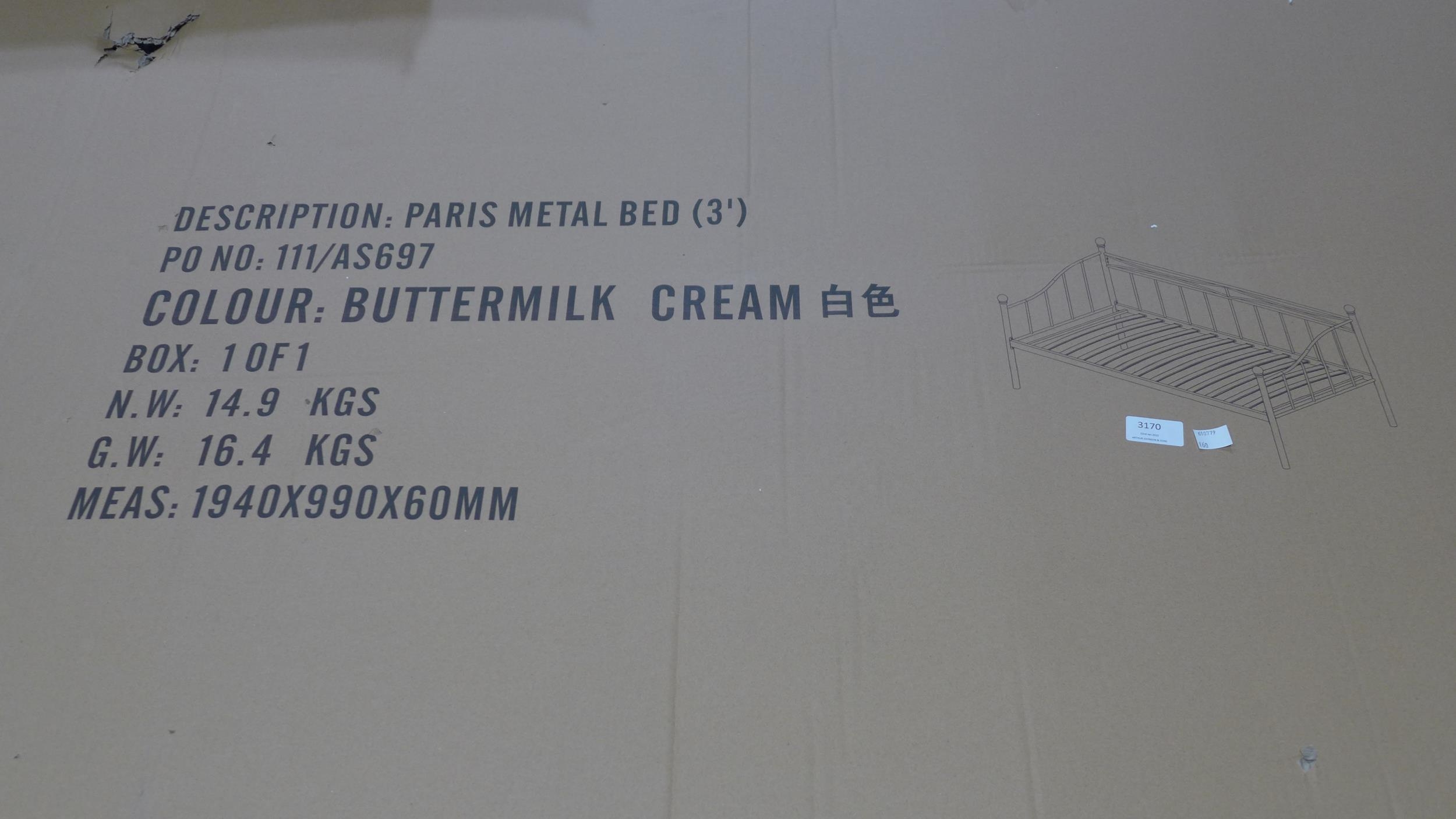 Single 3ft cream metal Paris day bed * This lot is subject t...