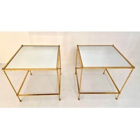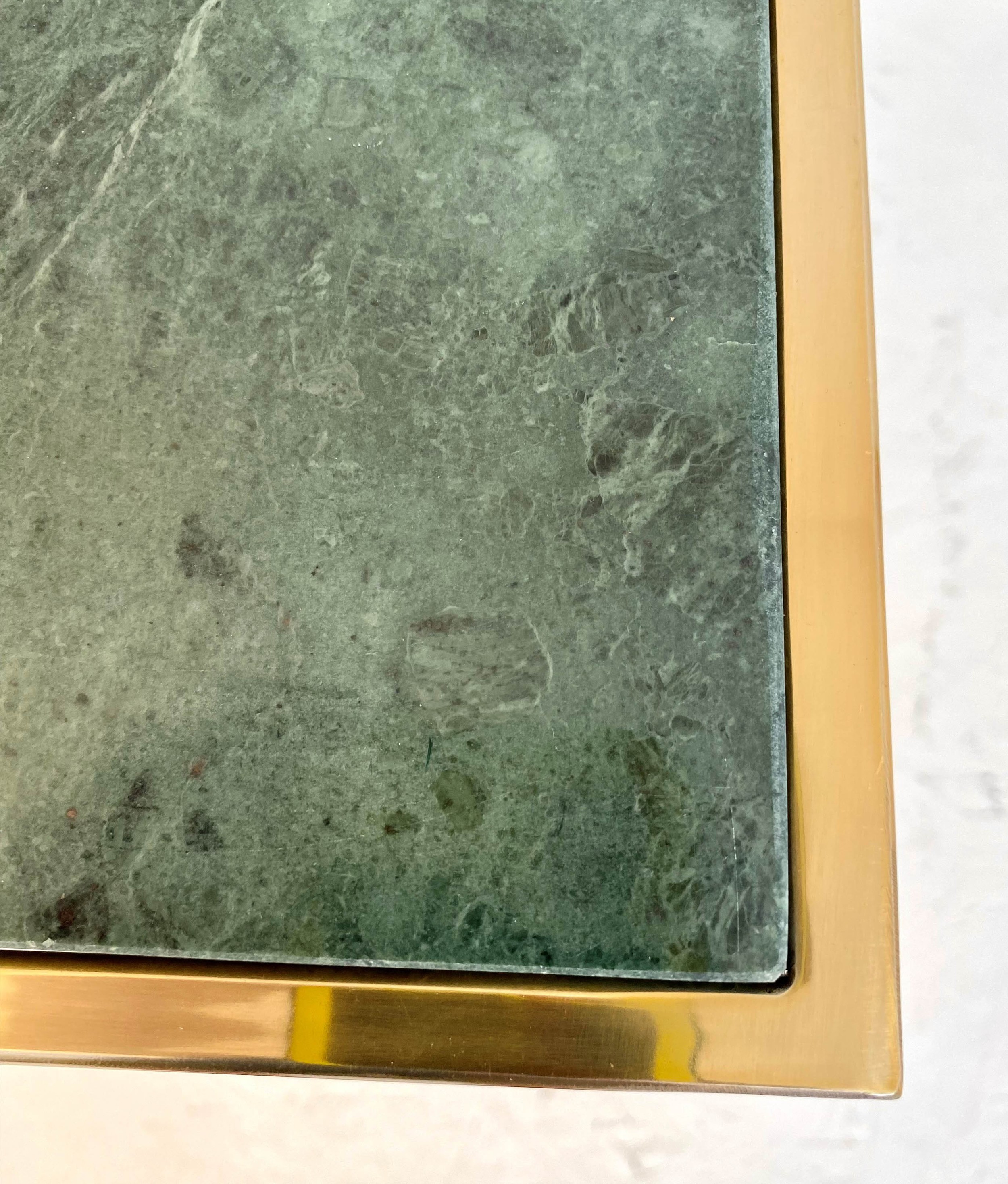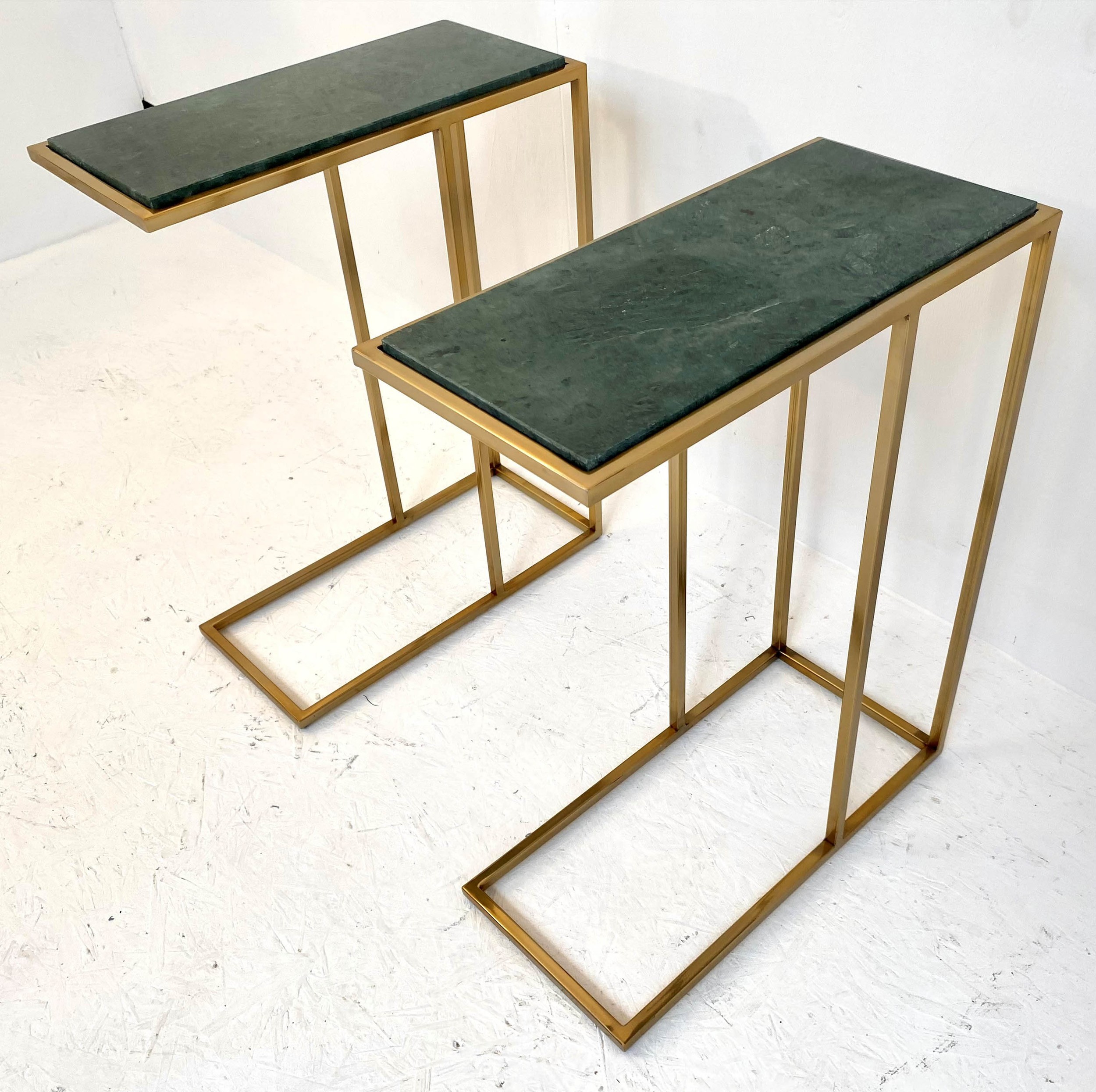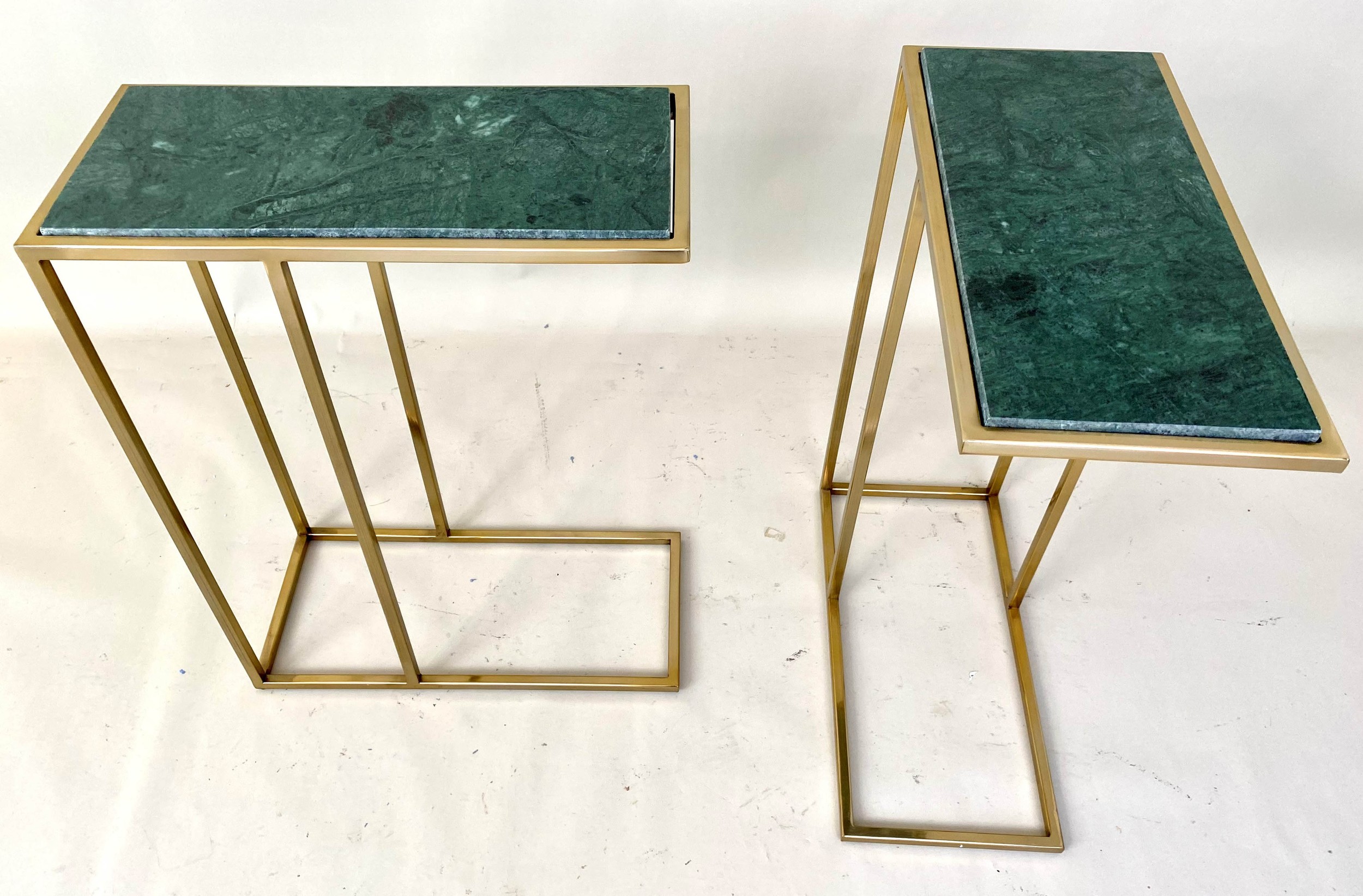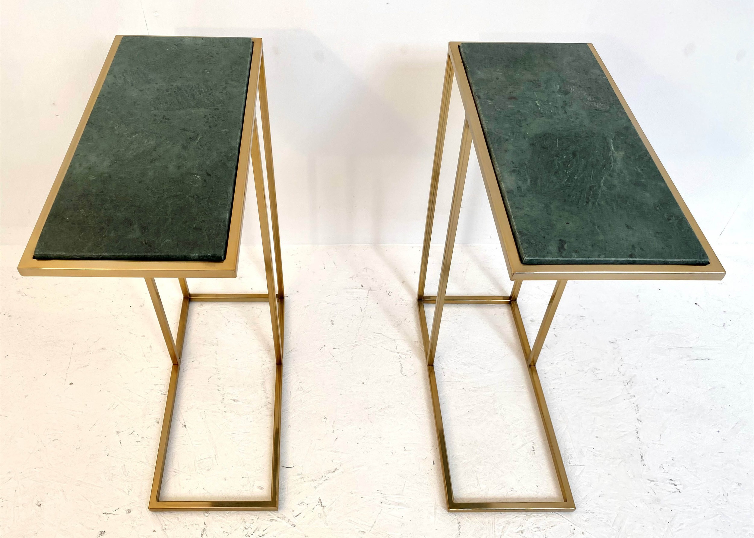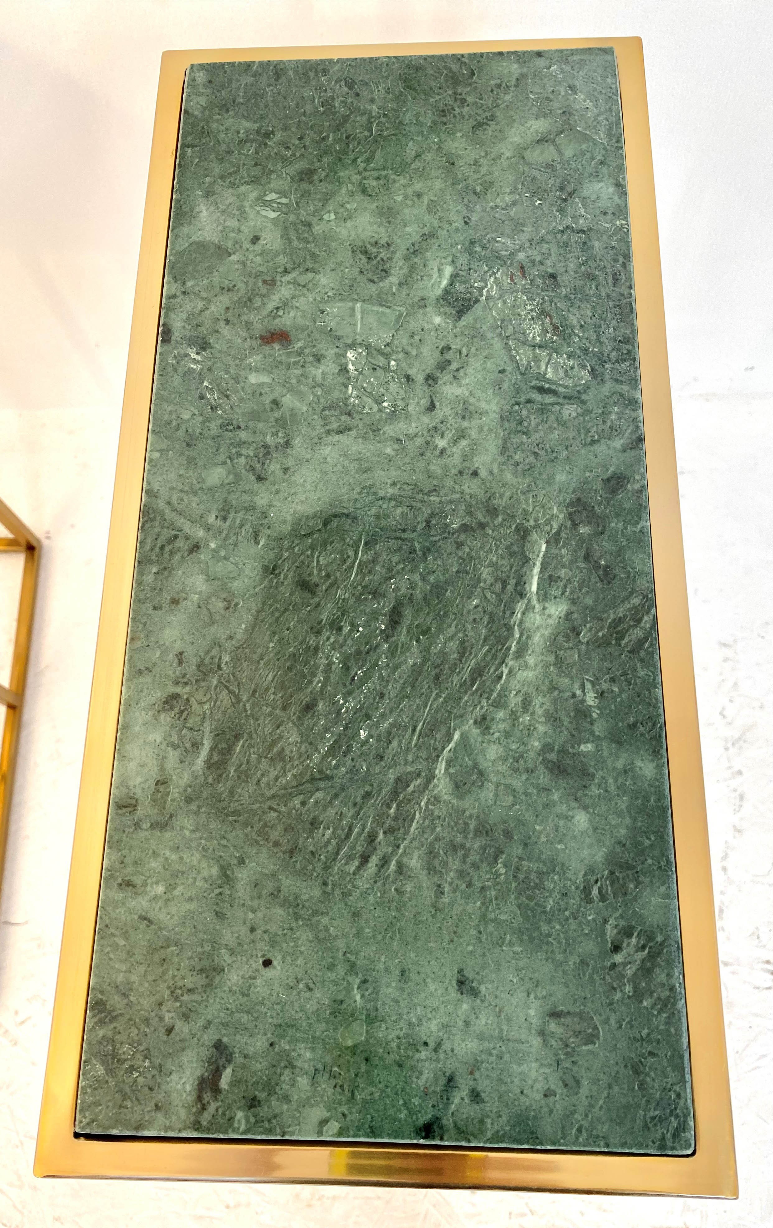 MARTINI TABLES, a pair, gilt metal, green marble tops, 60cm x 46cm x 22cm. (2)