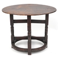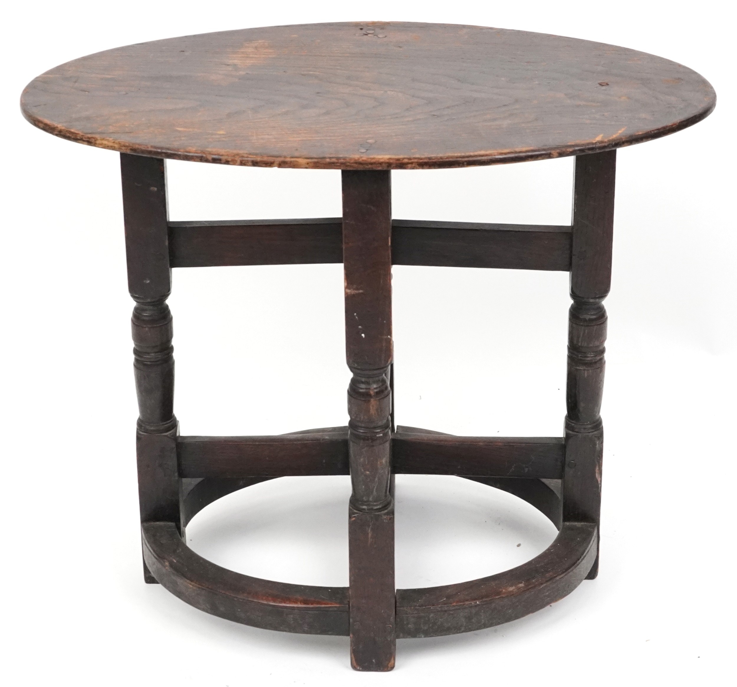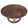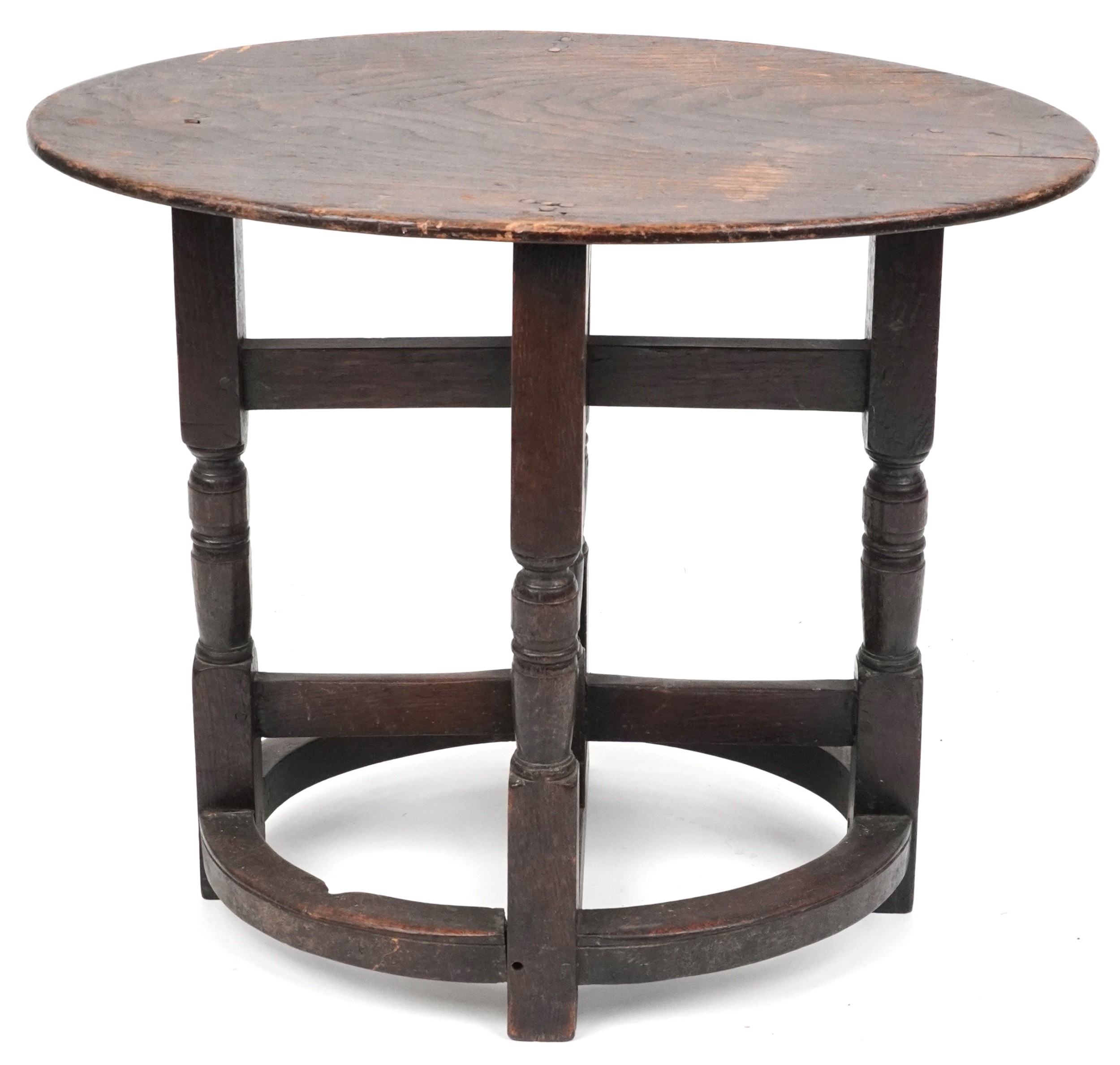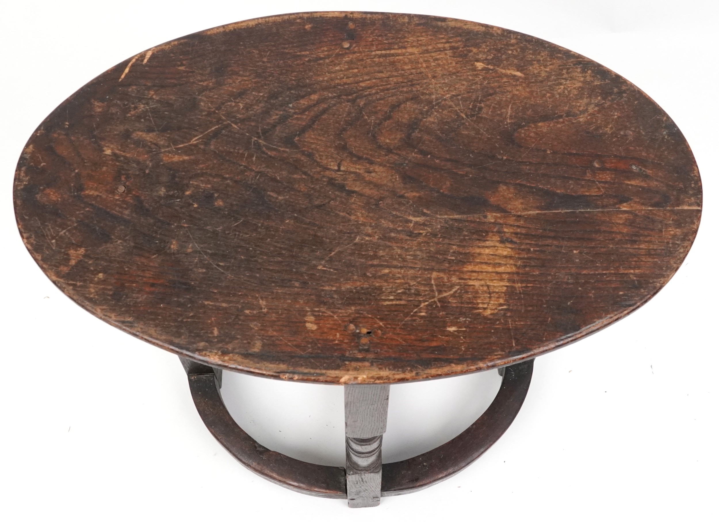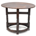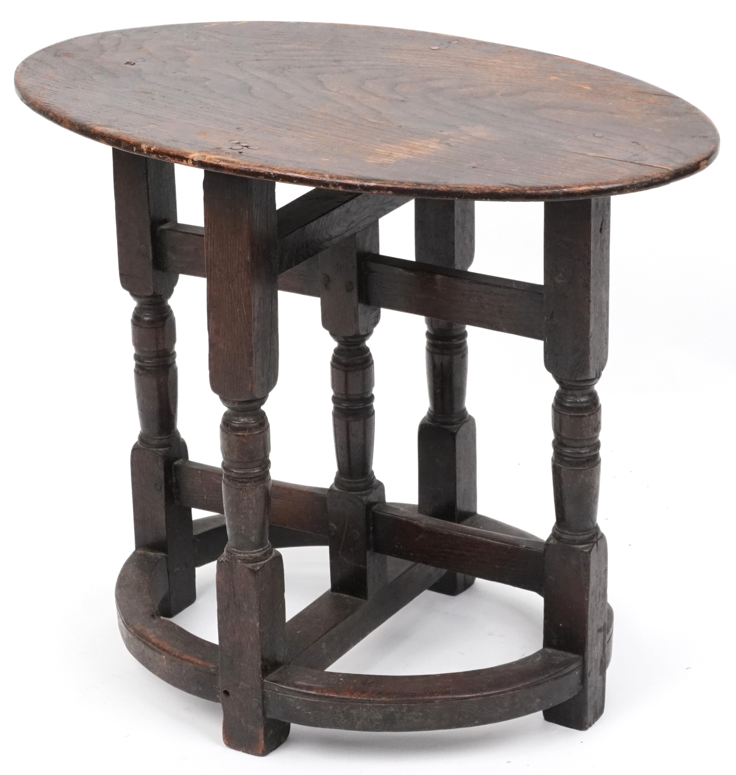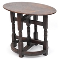 A late Victorian oak oval occasional table raised on turned and block supports, 59cm H x 72cm W x 46cm D.