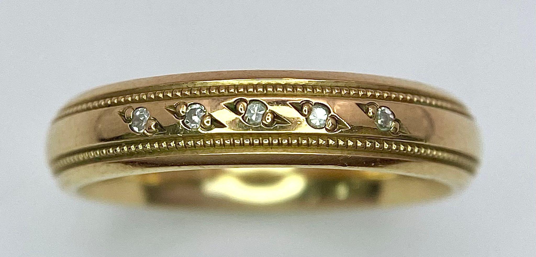 A Vintage 9K Yellow Gold Five Stone Diamond Ring. Size L. 3.75g weight. Full UK hallmarks.