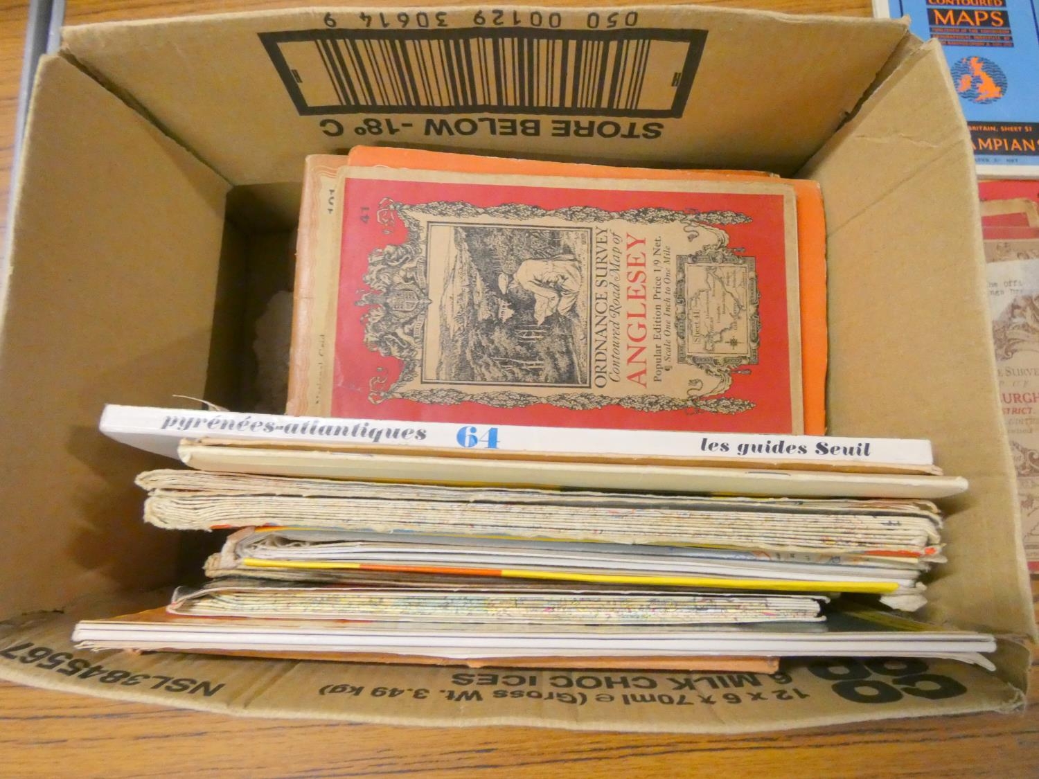 Box of vintage folding maps.