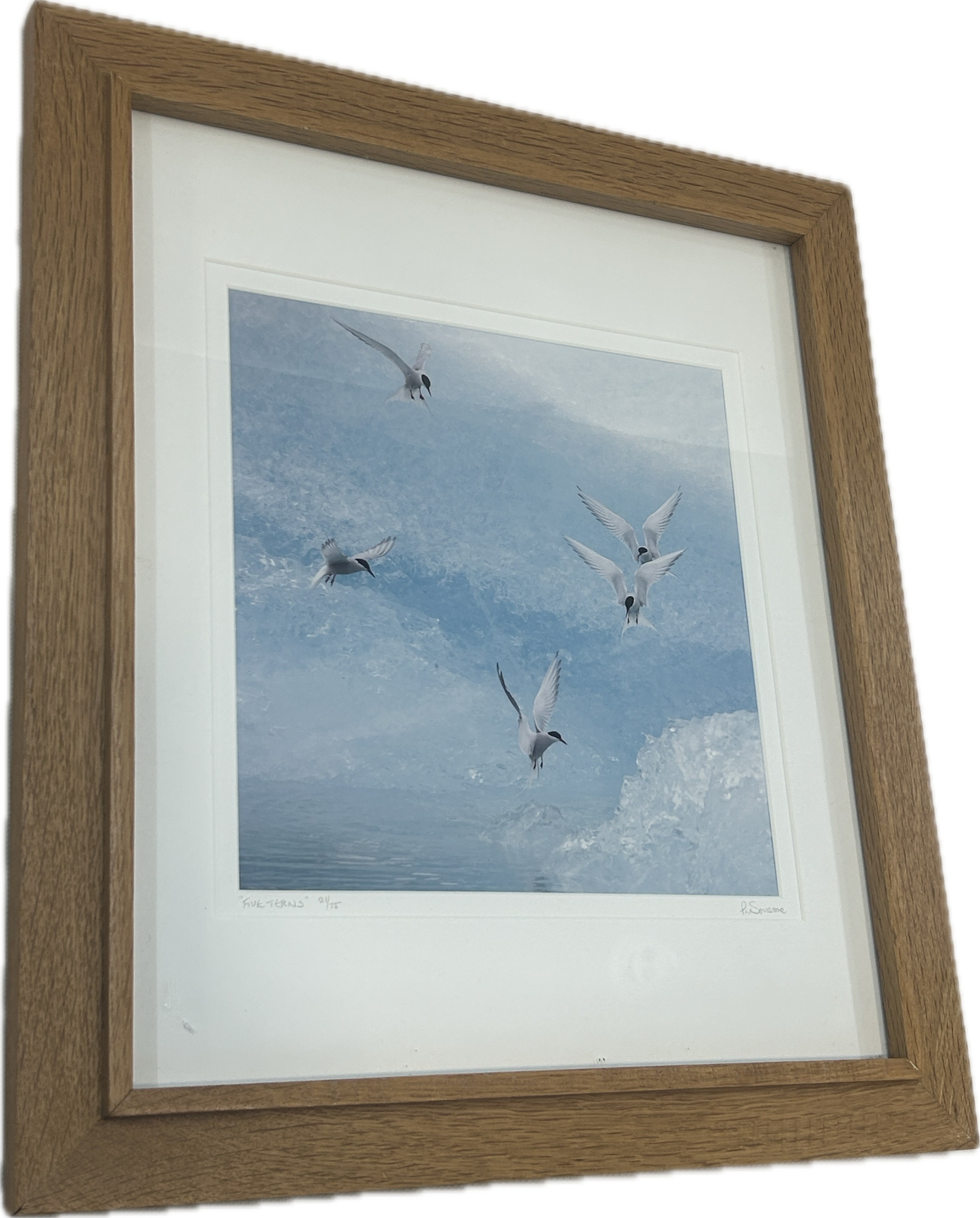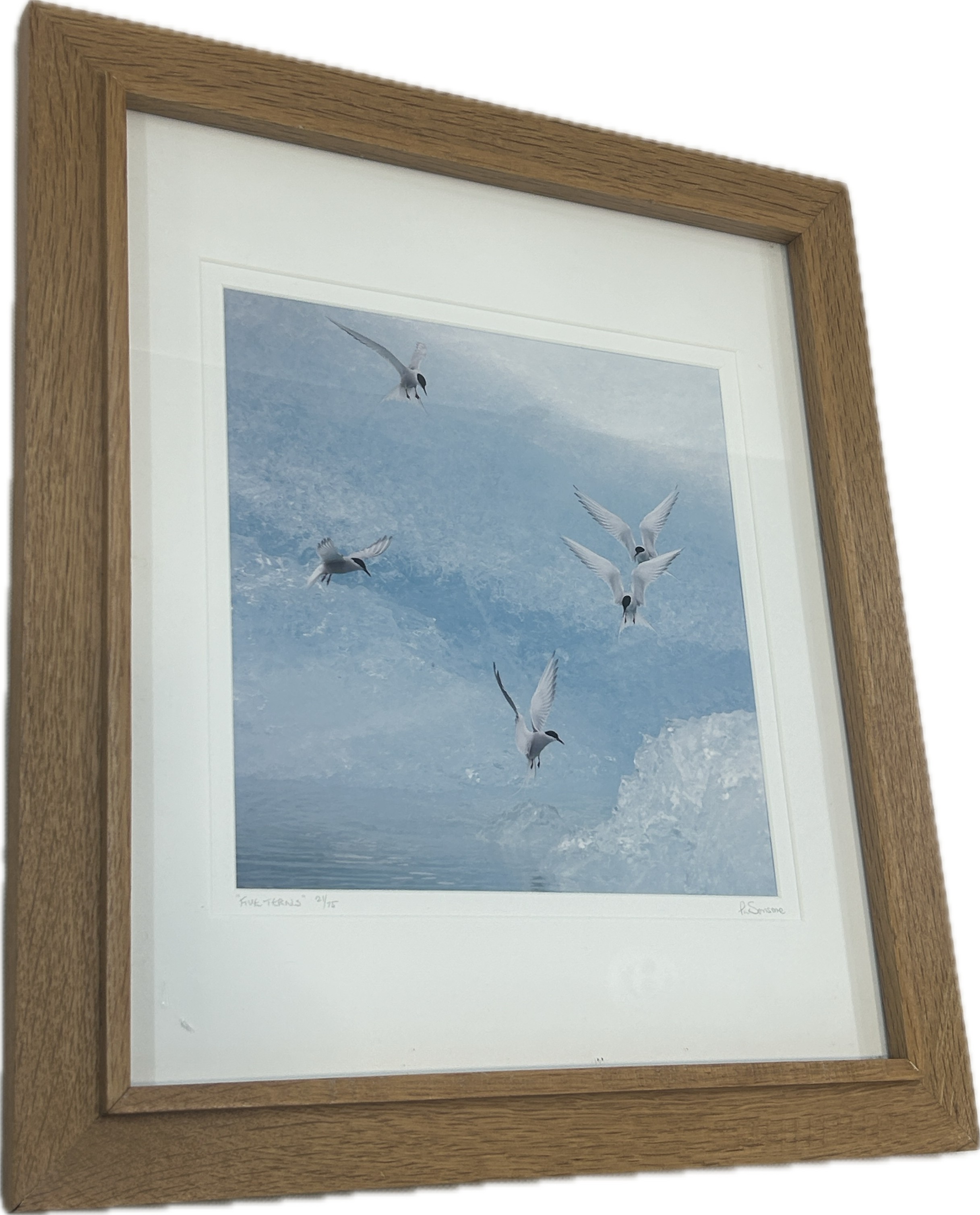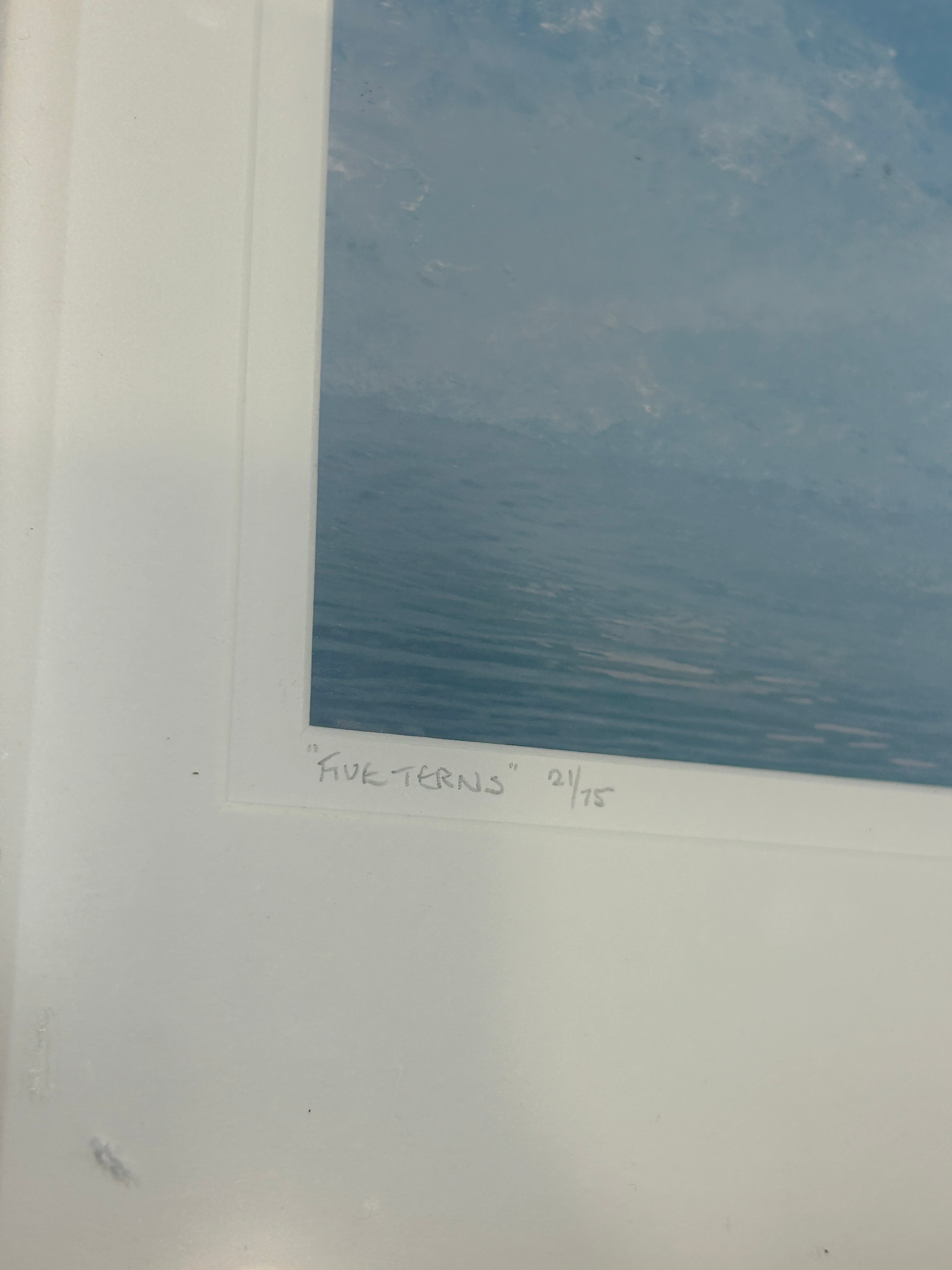 Signed limited edition print ' Five Terns' by P.Sansome 21/75 measures approximately 19 inches long x 17 wide