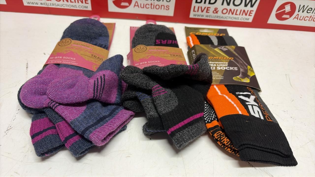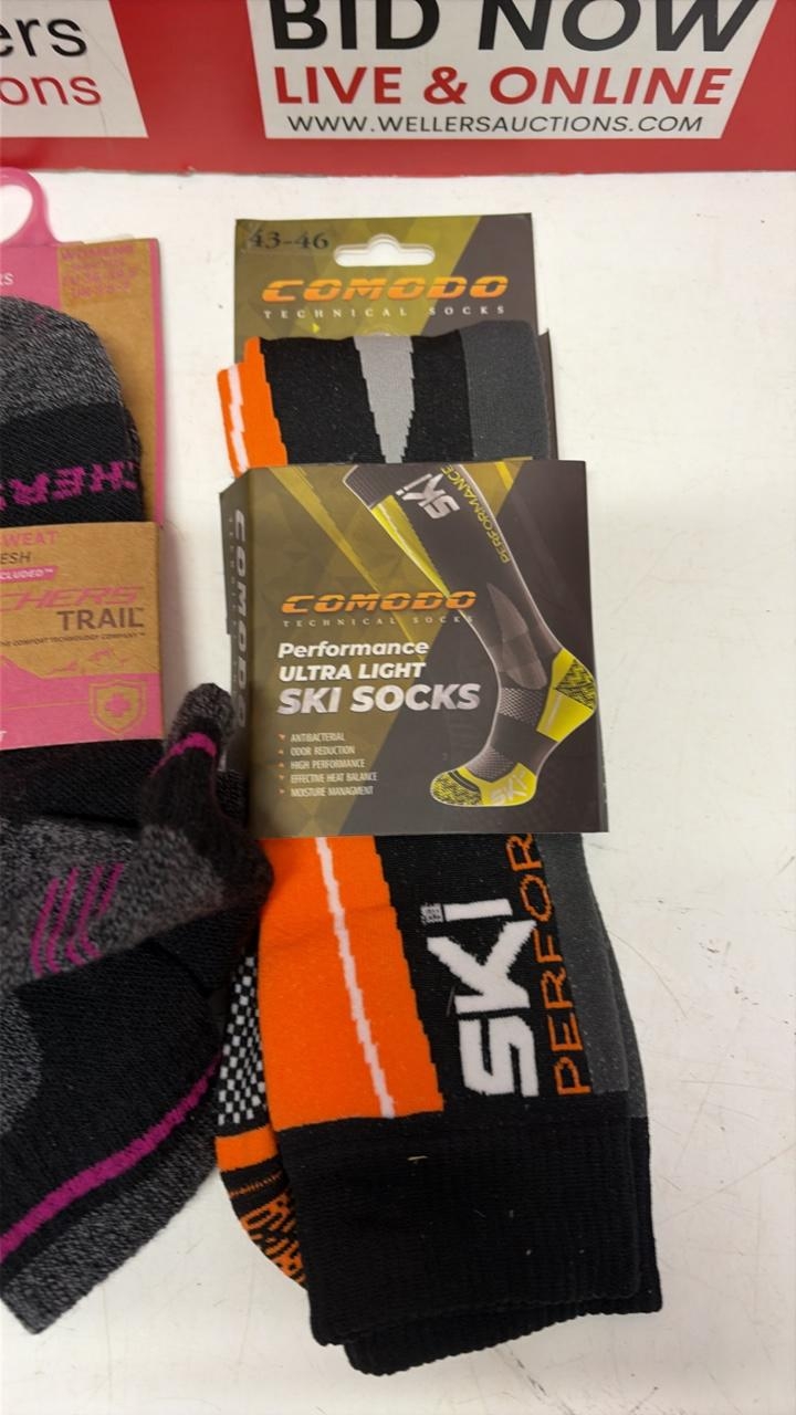 X3 NEW PACKS OF SOCKS INC. SKECHERS TRAIL SOCKS AND COMODO SKI SOCKS